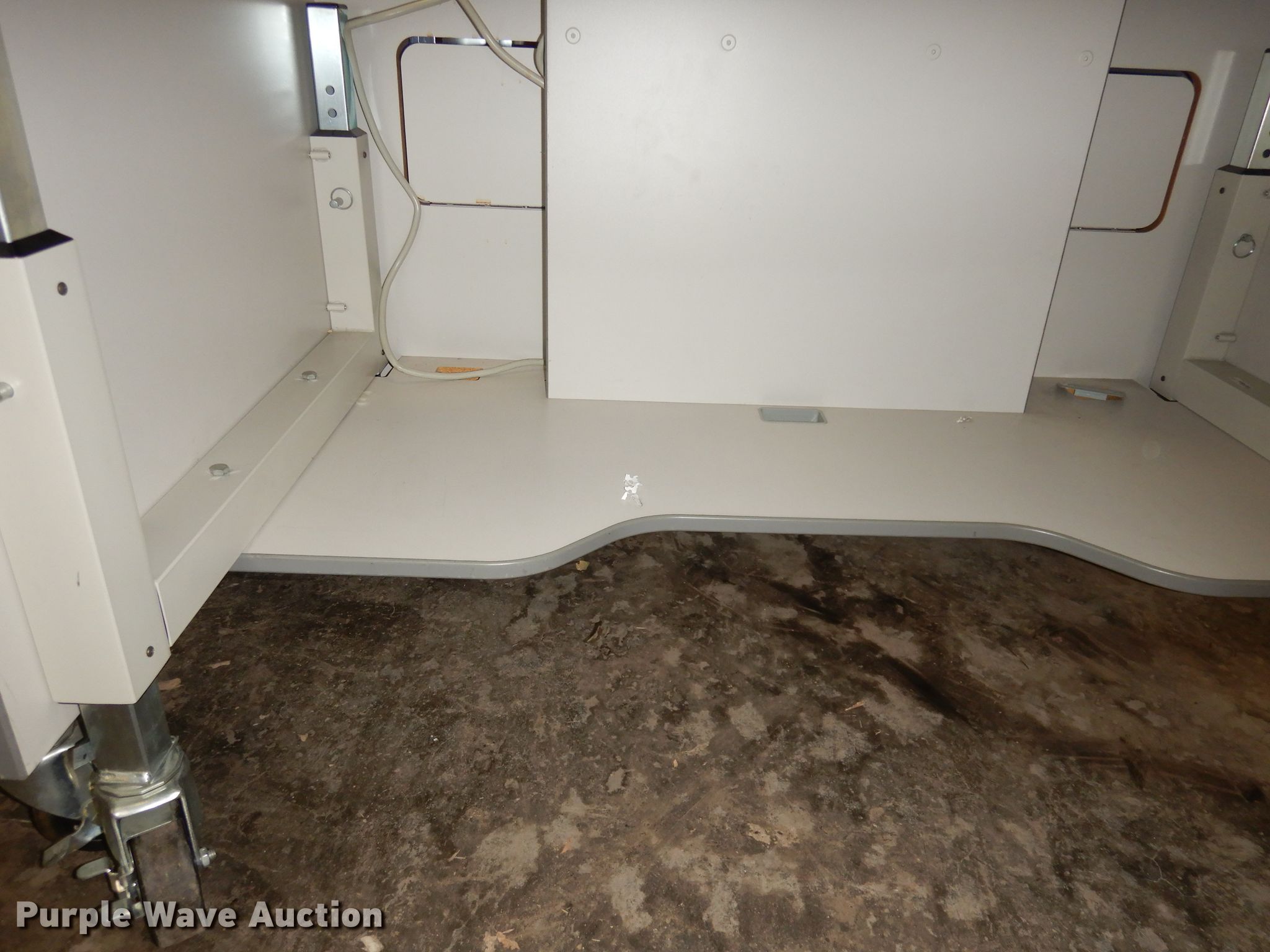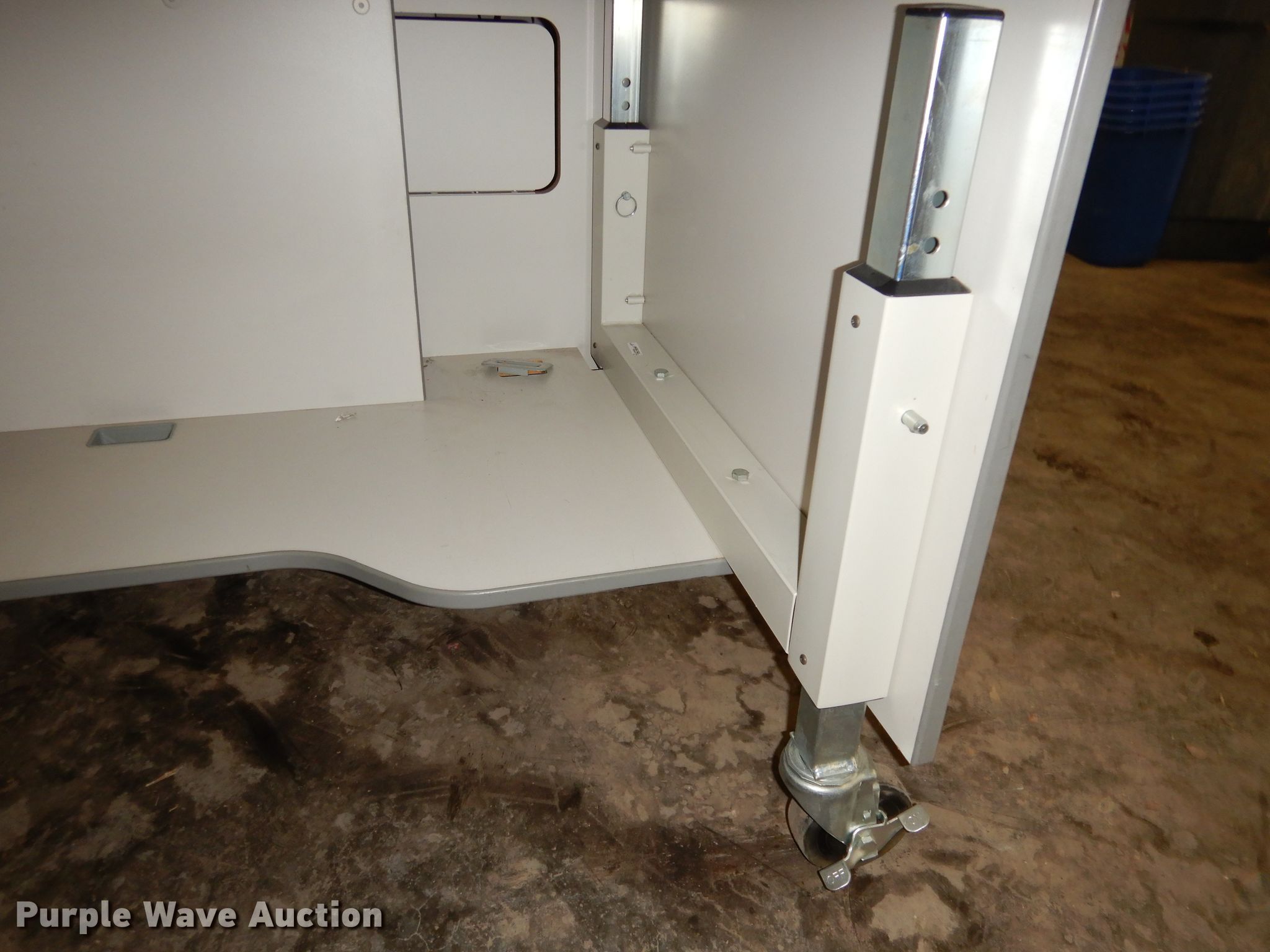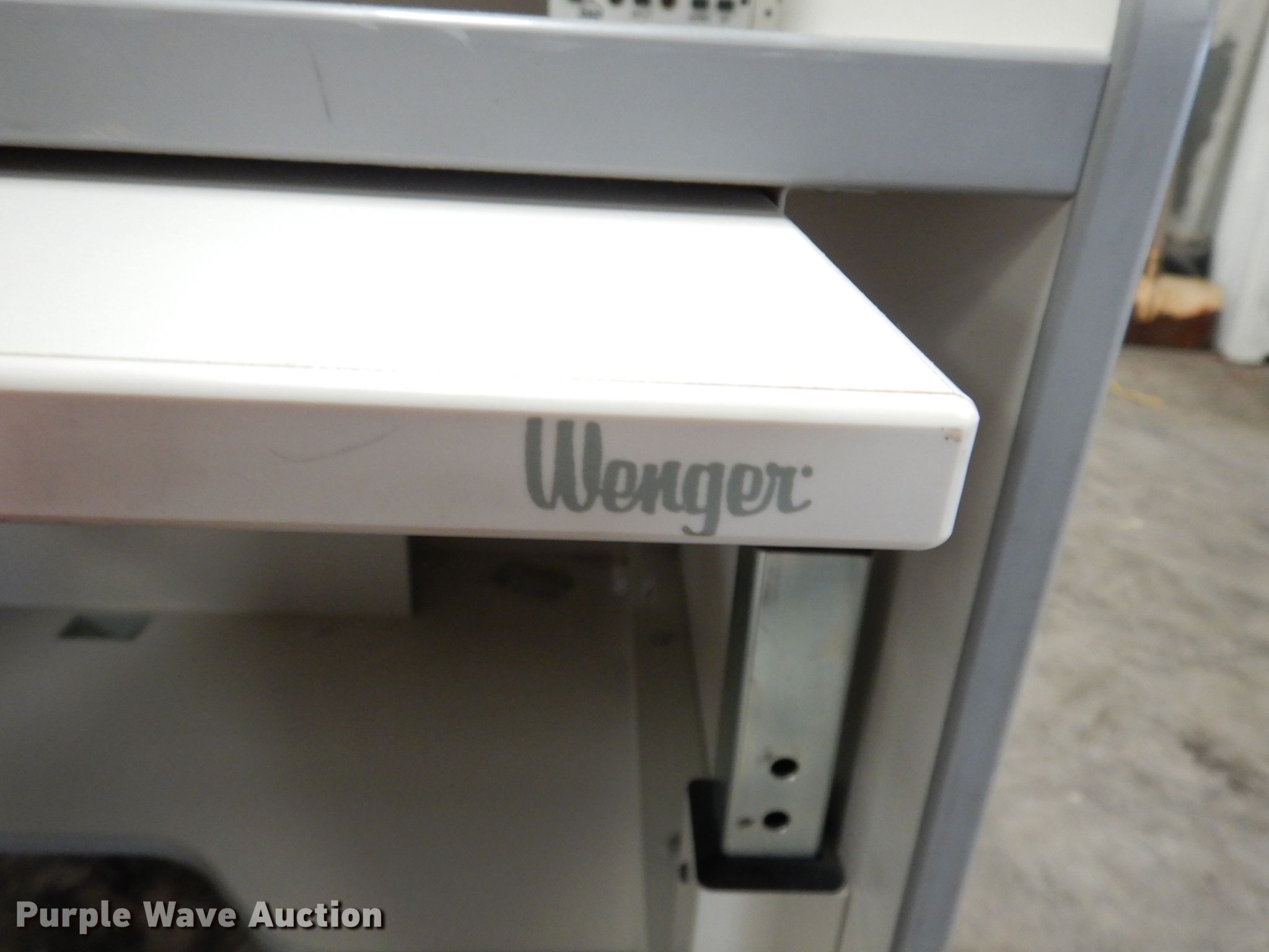 Purple Wave is selling a used Furniture in Kansas. This item is a (3) Wenger computer tables with the following: 49.5"W x 32.25"D x 40.25"H, Headset connections, Pull-out shelves, Adjustable height, Power supply