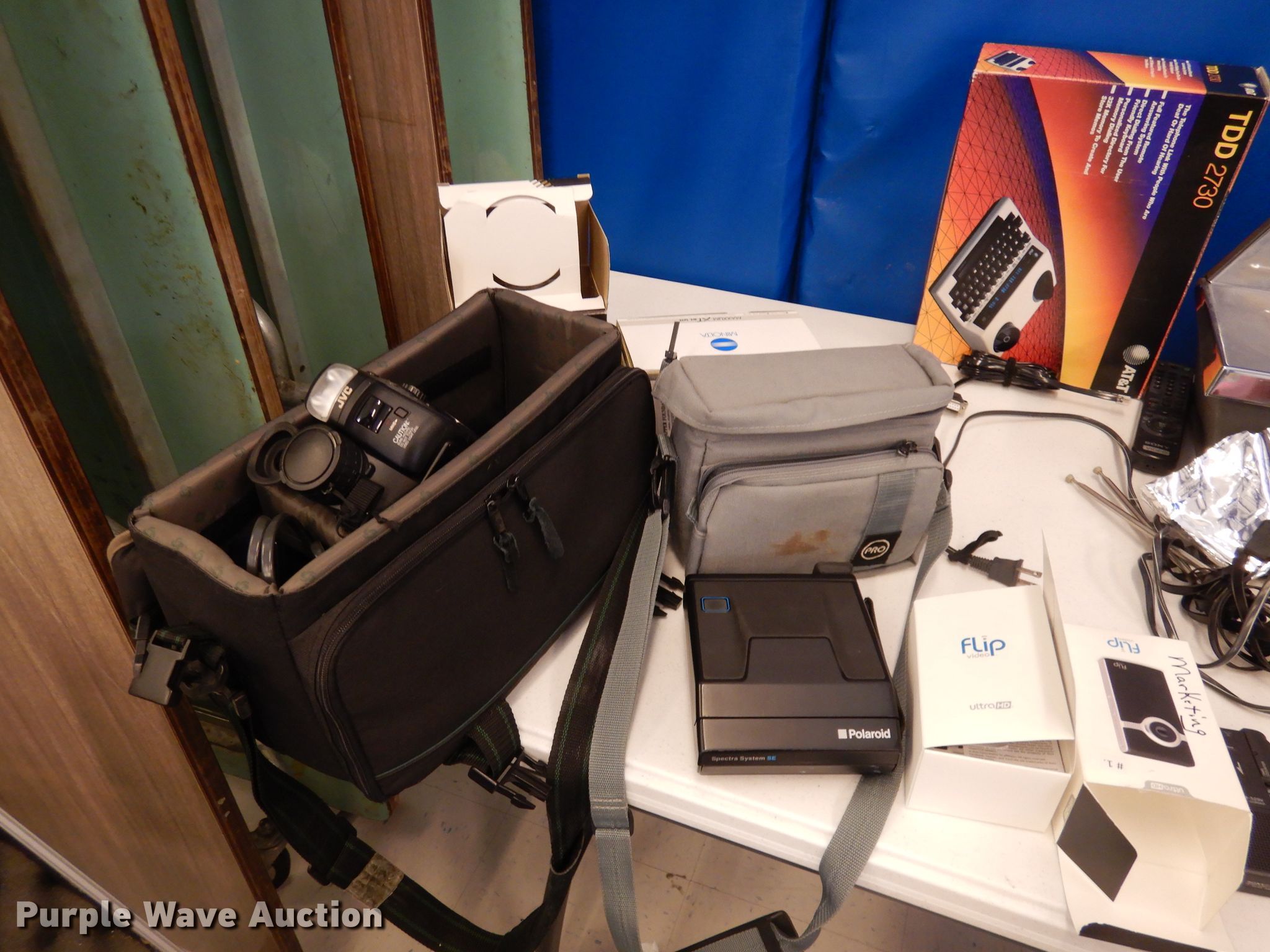 Purple Wave is selling a used Electronics in Kansas. This item is a Electronics with the following: Video cameras, VHS camcorders, Cameras, Lenses, Tripods and more