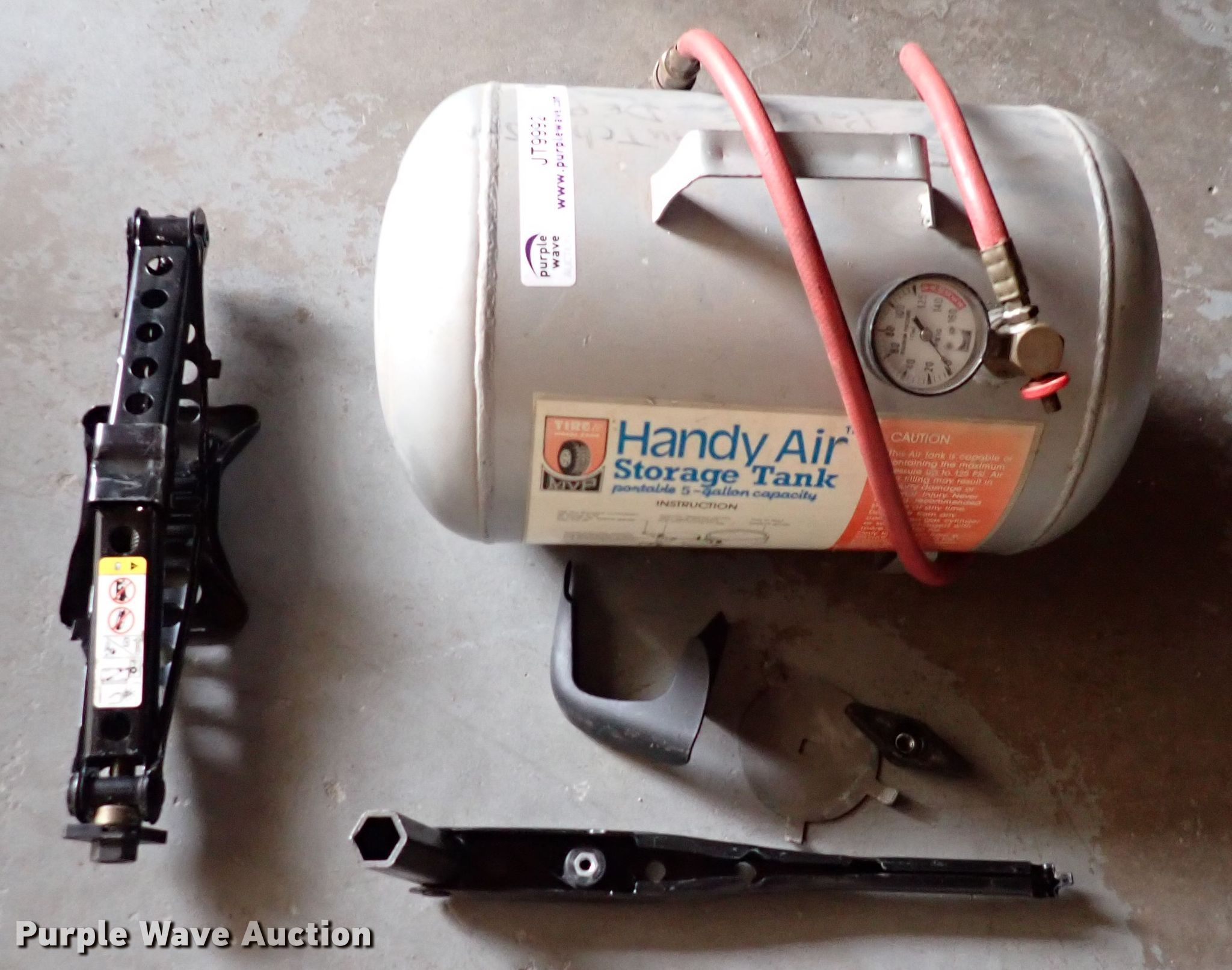 Purple Wave is selling a used Tools in Kansas. This item is a Tools with the following: Air tank, Tire jack