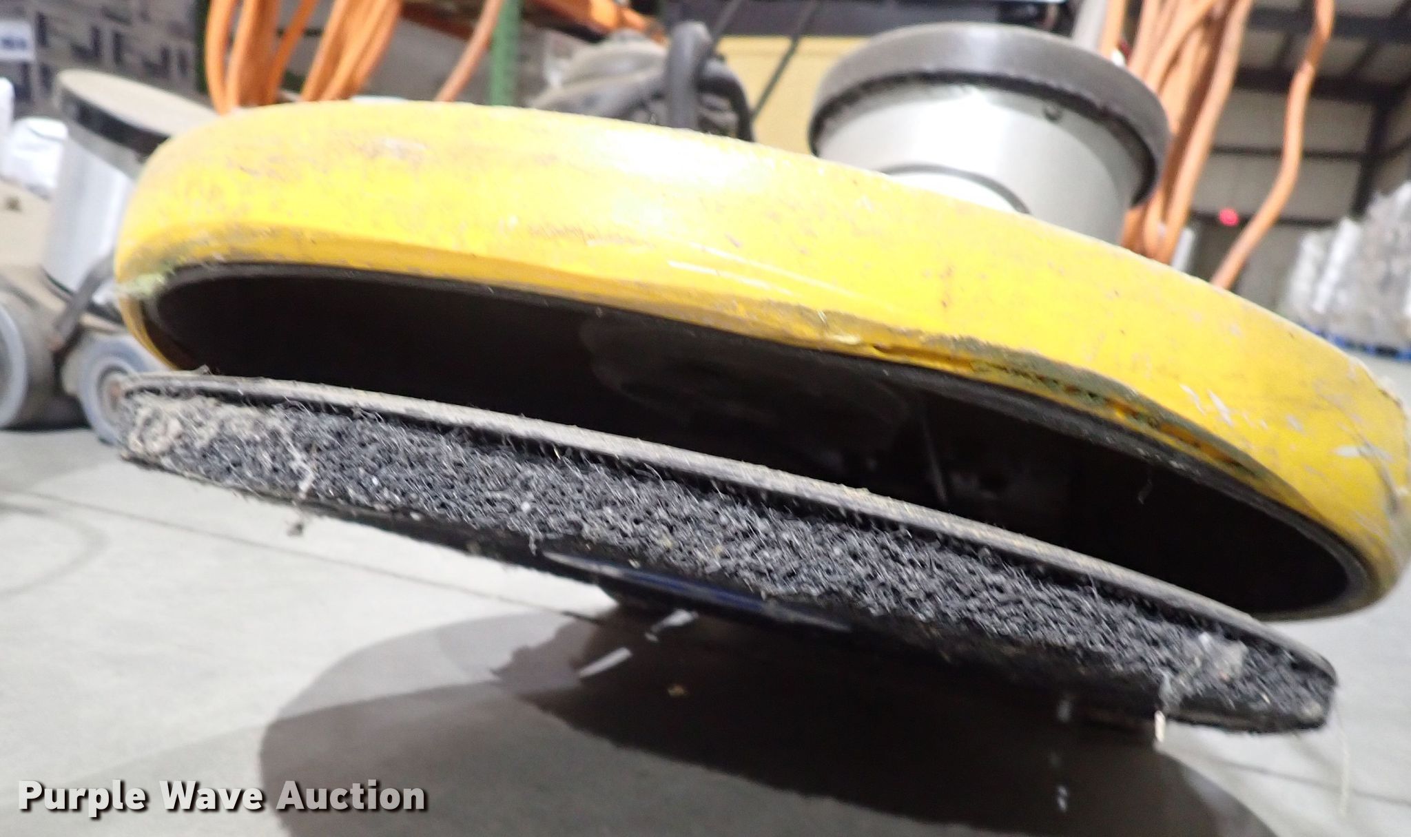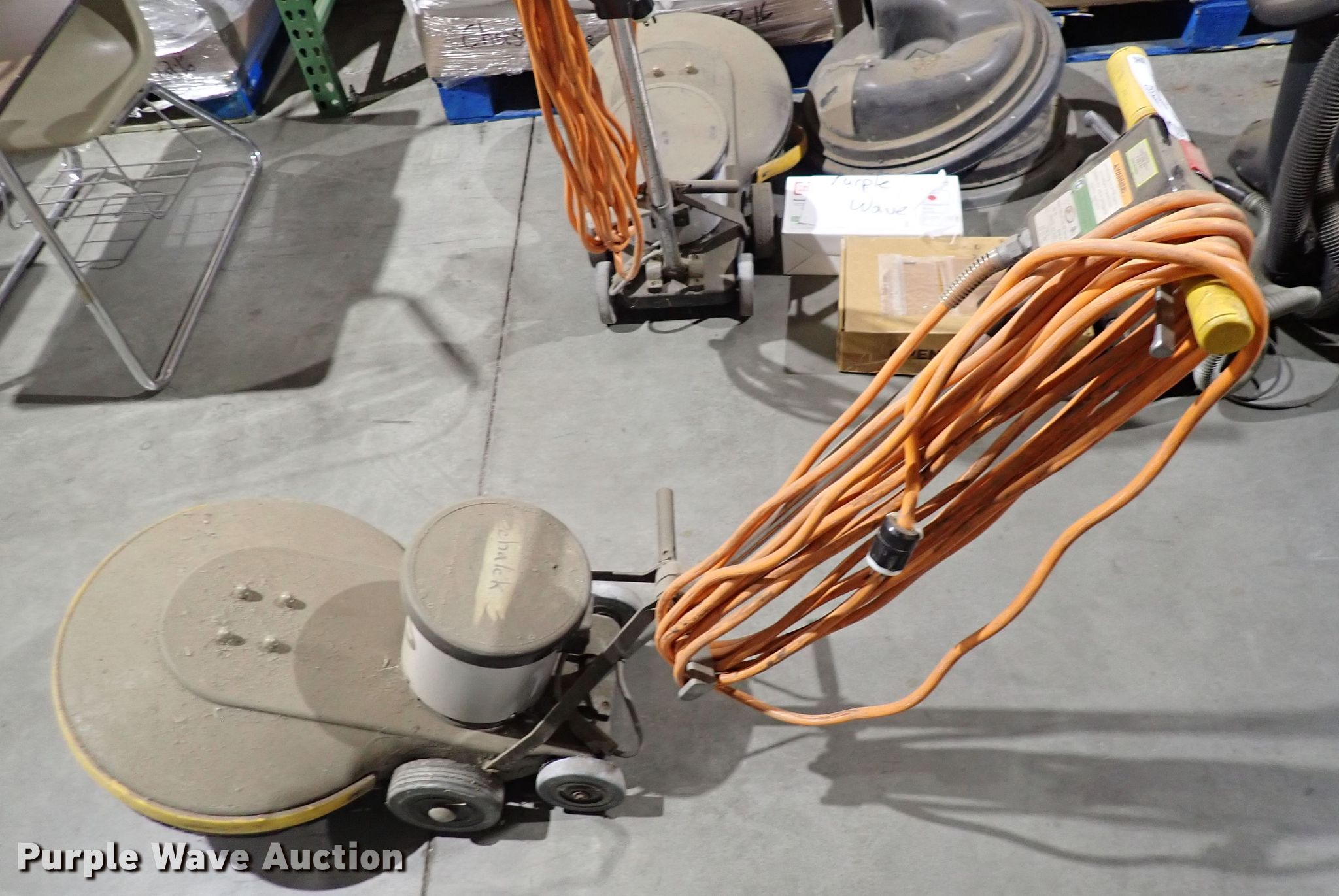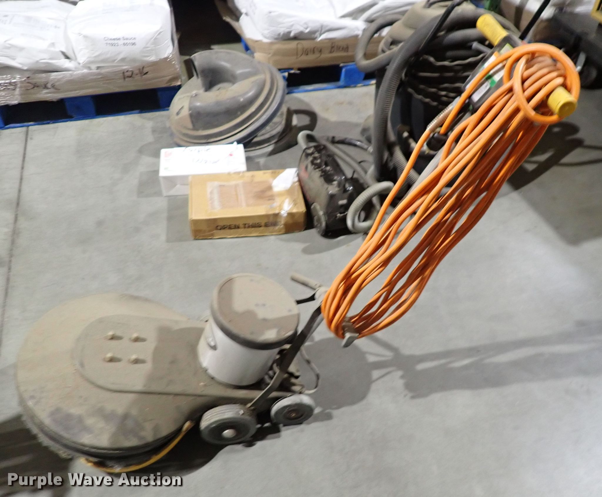 Purple Wave is selling a used All Other Household Items in Kansas. This item is a Floor care equipment with the following: (2) floor buffers, (2) vacuums, Trash can lids