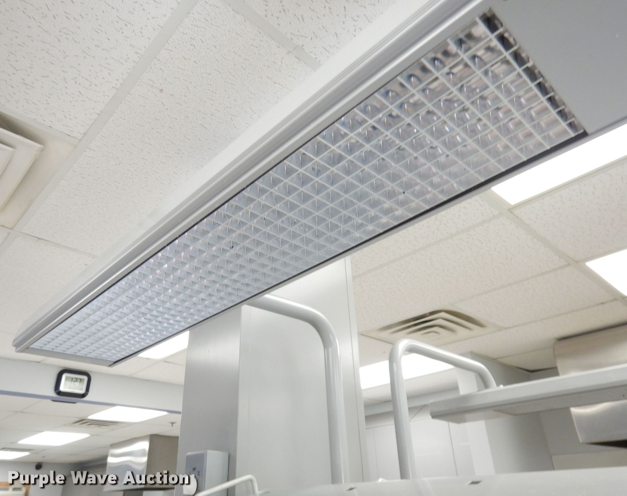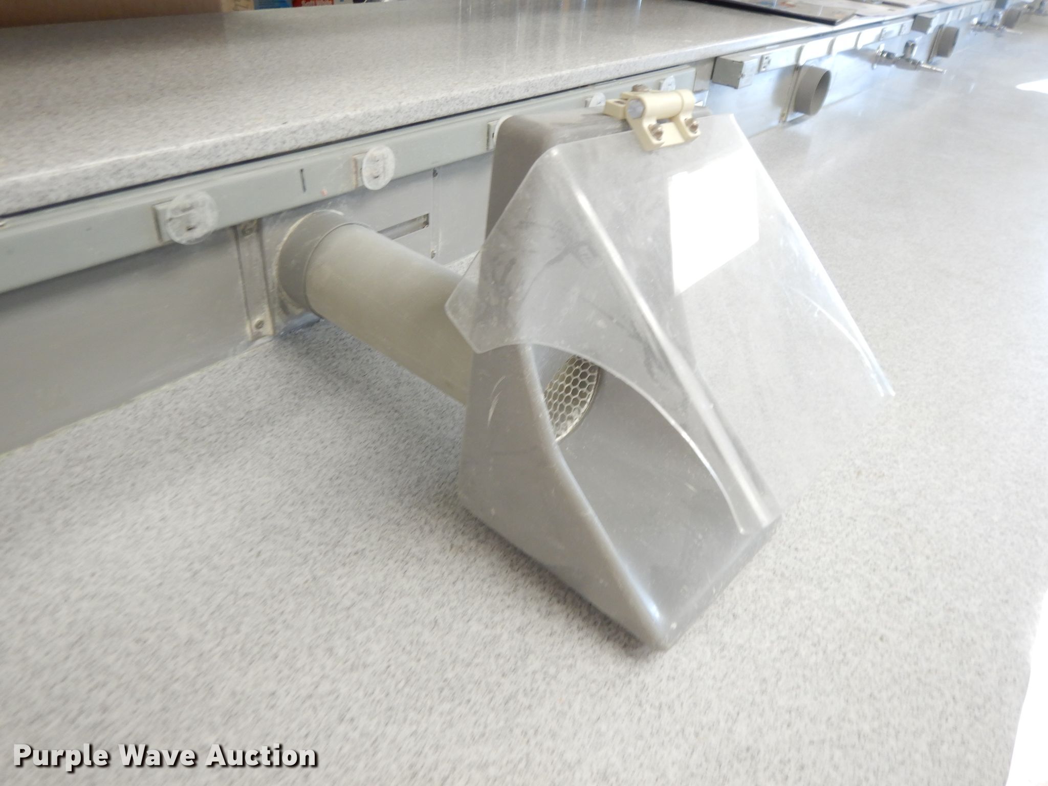 Dental work station. 14'7"L x 56"W x 75"H, Eight work stations, Double sided, Air outlets, Electrical outlets, Lights, (2) chairs, 6'H power pole, Shelving, Wood arm rests, Vacuum outlets. All aspects of disassembly and removal are the sole responsibility of the purchaser. Topeka, KS 66616
