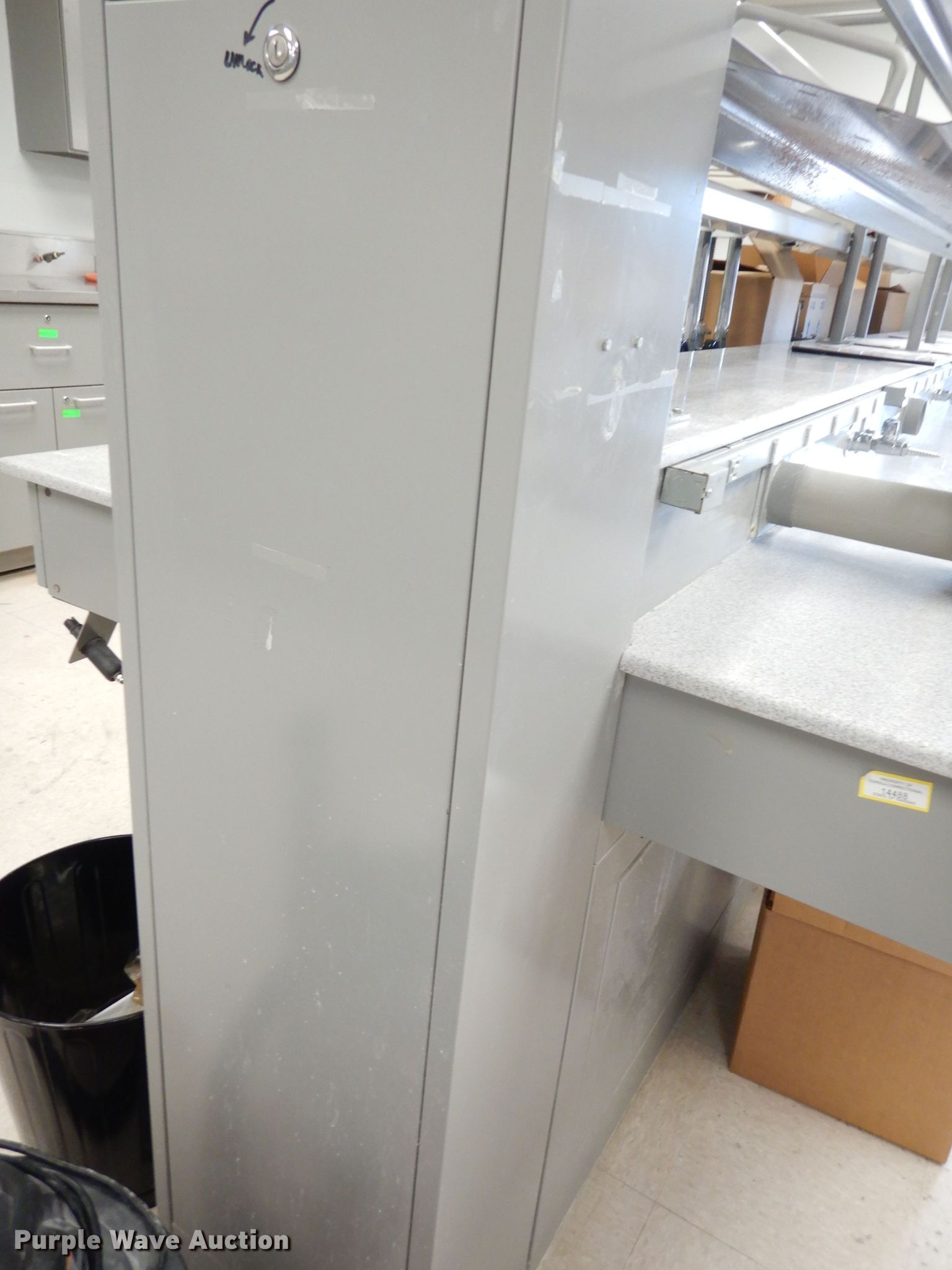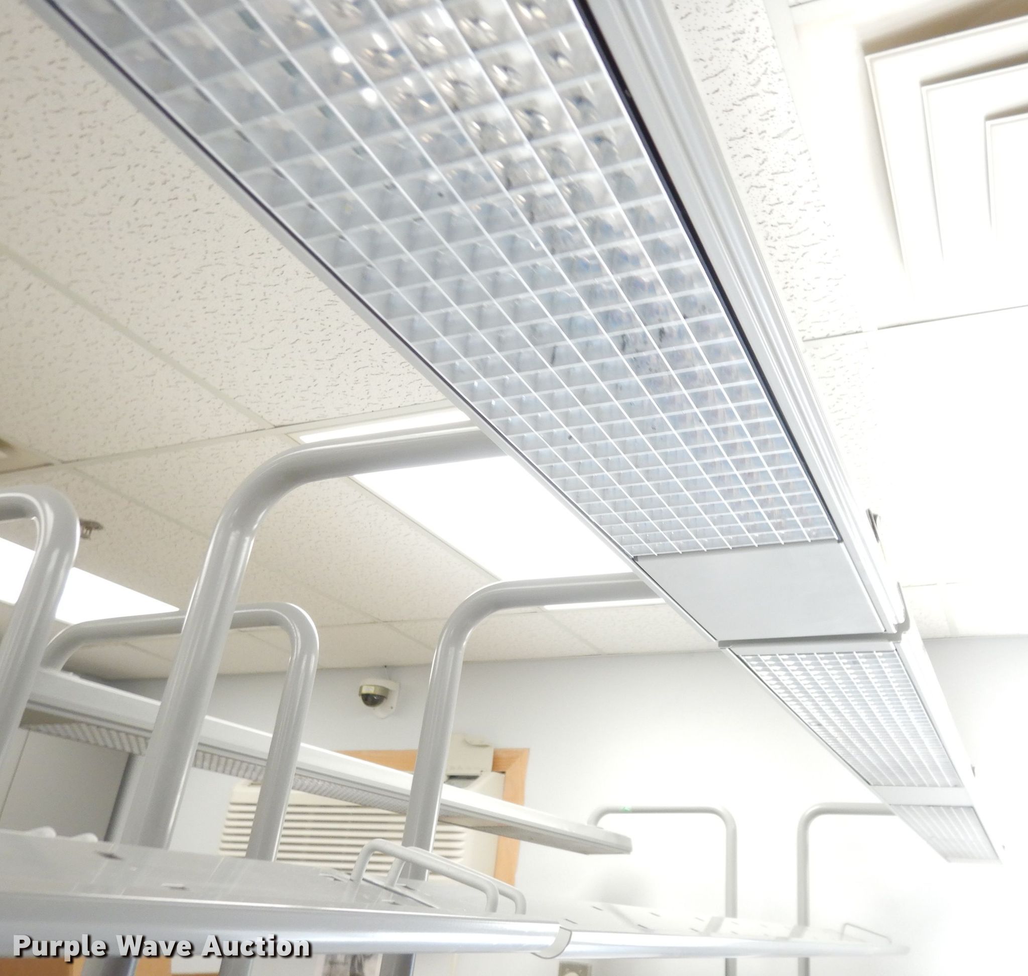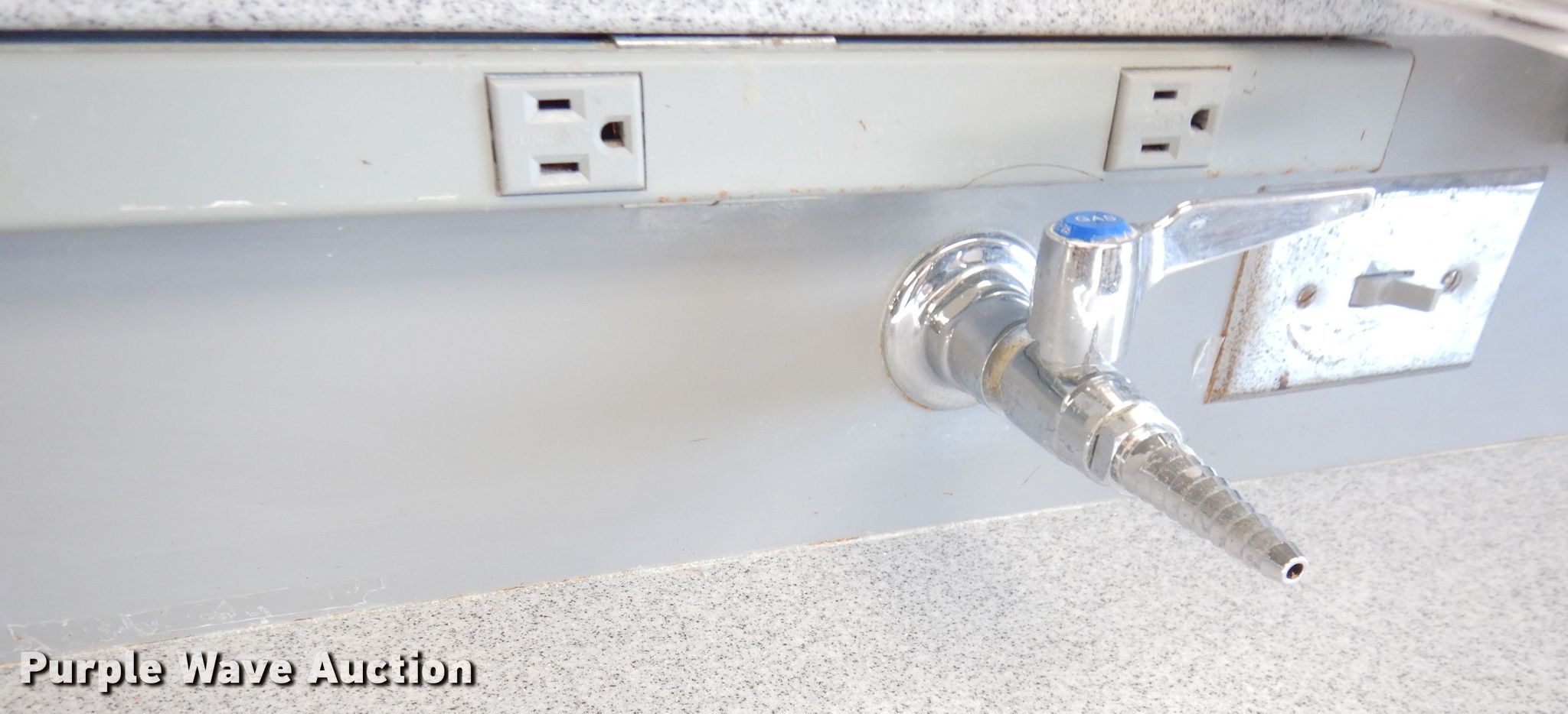 Purple Wave is selling a used Medical Equip. in Kansas. This item is a Dental work station with the following: 14'7"L x 56"W x 75"H, Eight work stations, Double sided, Air outlets, Electrical outlets, Lights, (2) chairs, 6'H power pole, Shelving, Wood arm rests, Vacuum outlets