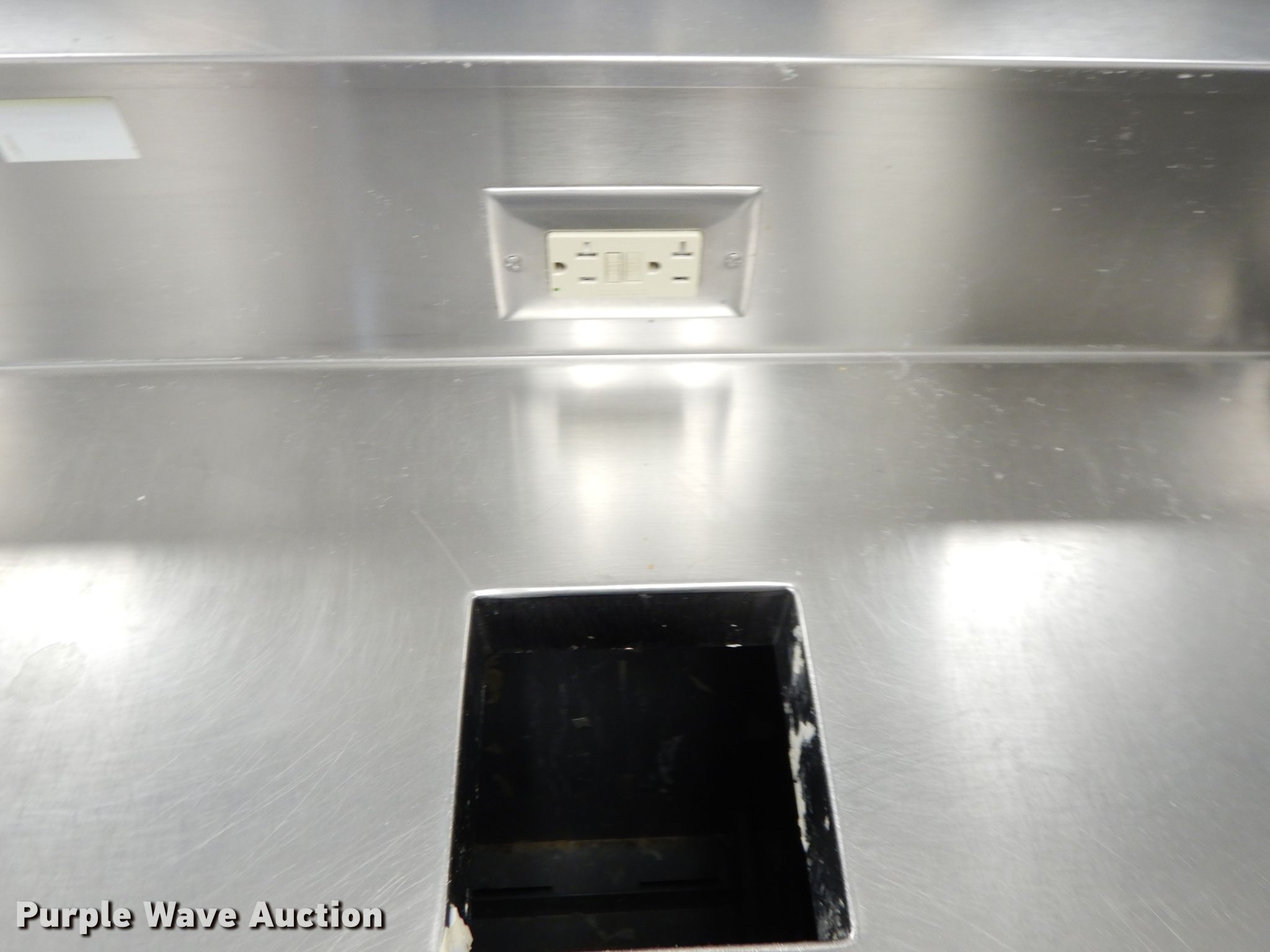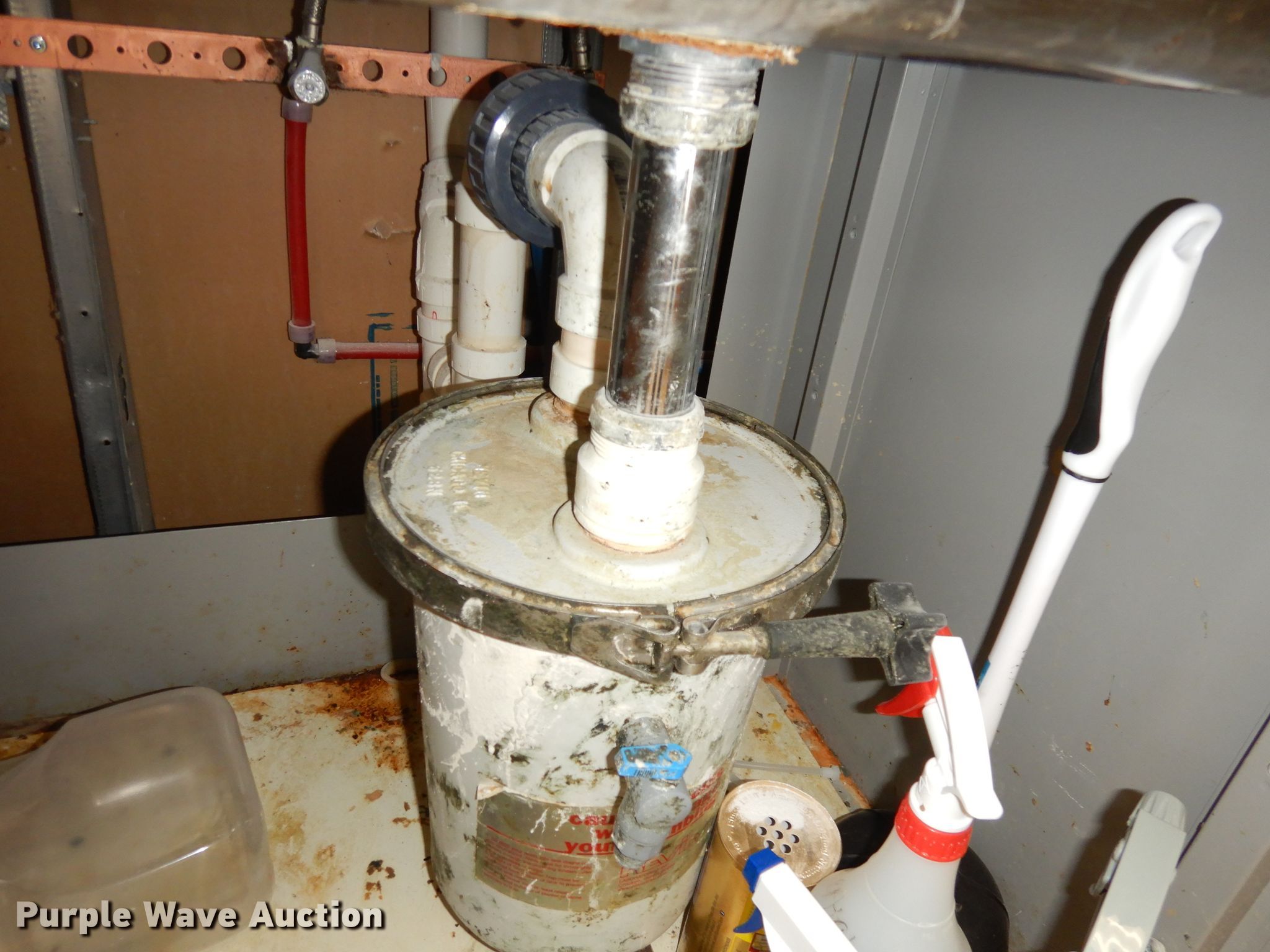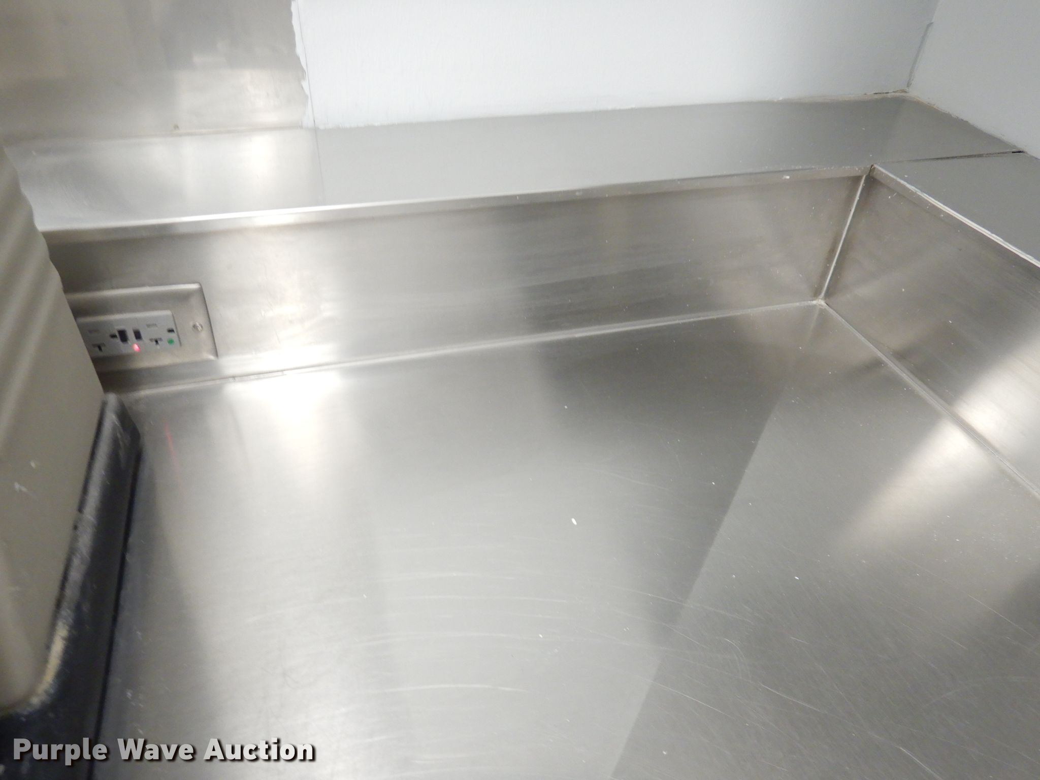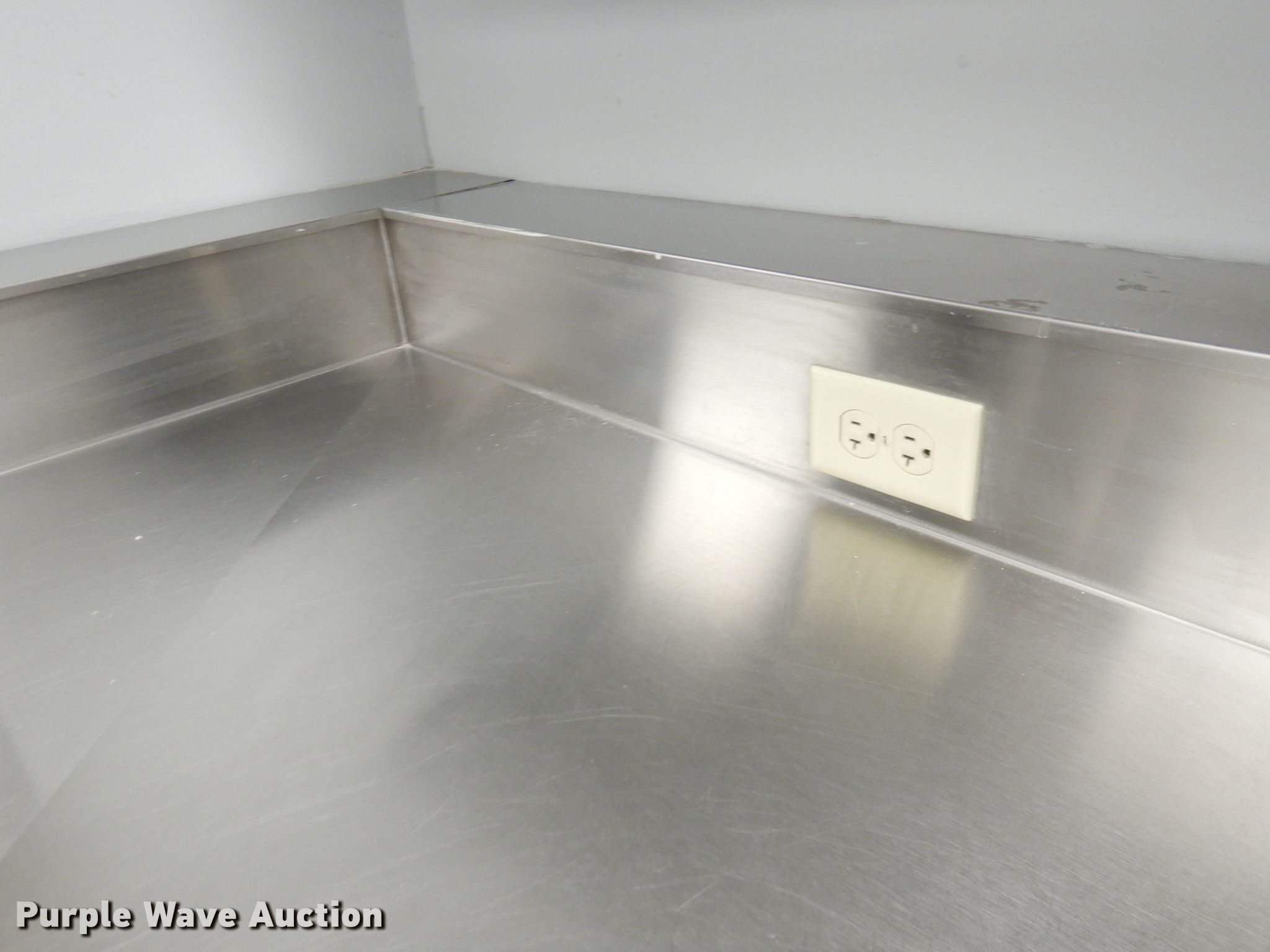 Purple Wave is selling a used Medical Equip. in Kansas. This item is a L-shaped dental work cabinet with the following: 15'9"L x 30"W x 43"H section, 6'L x 30"W x 43"H section, (2) sinks, Slide-out trash can, Electrical outlets