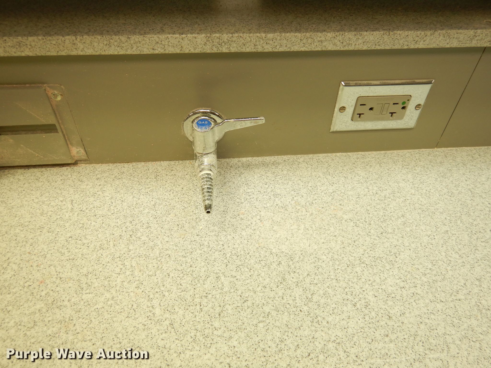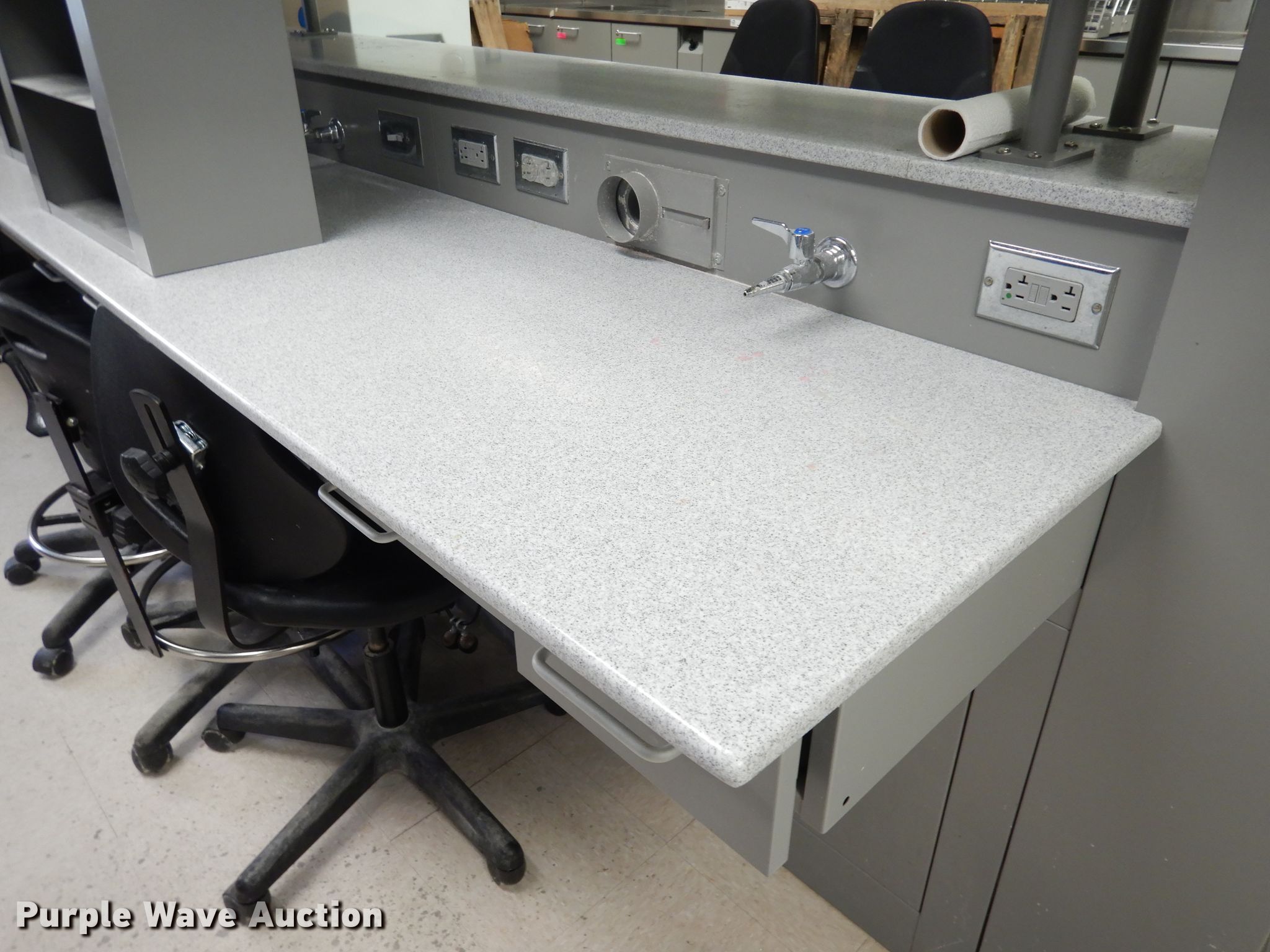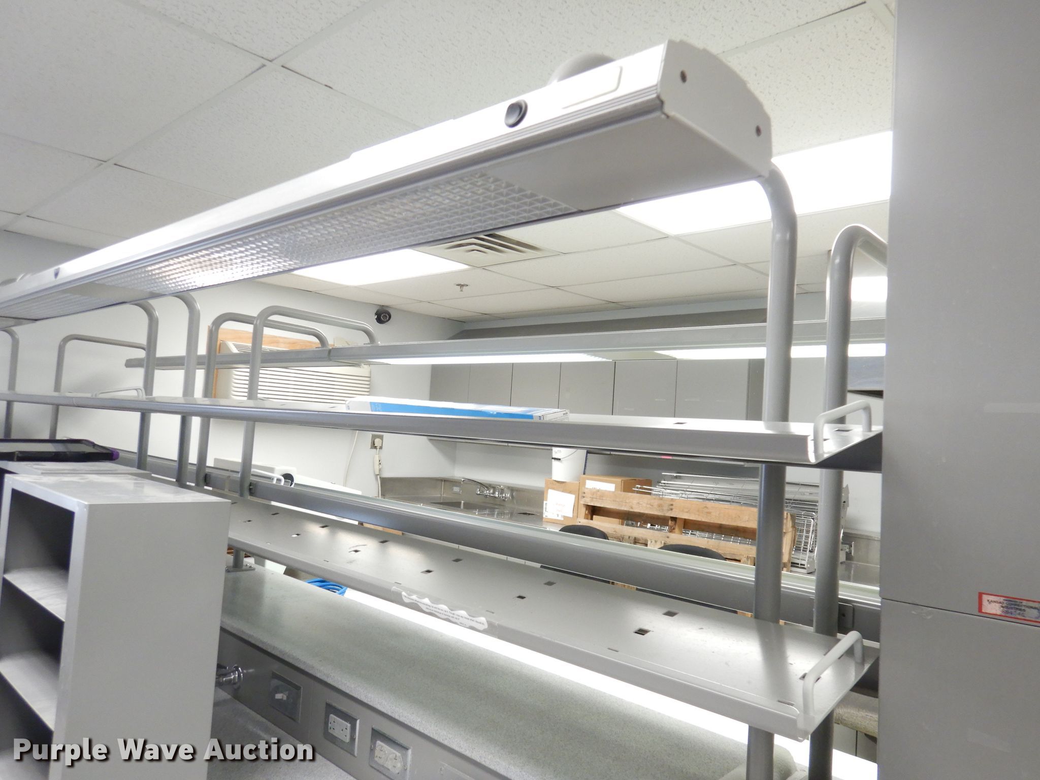 Dental work station. 14'7"L x 57"W x 6'H, Four work stations, Double sided, Air outlets, Vacuum outlets, Electrical outlets, Lights, (8) chairs, Blueprints, 8'H power pole. All aspects of disassembly and removal are the sole responsibility of the purchaser. Topeka, KS 66616