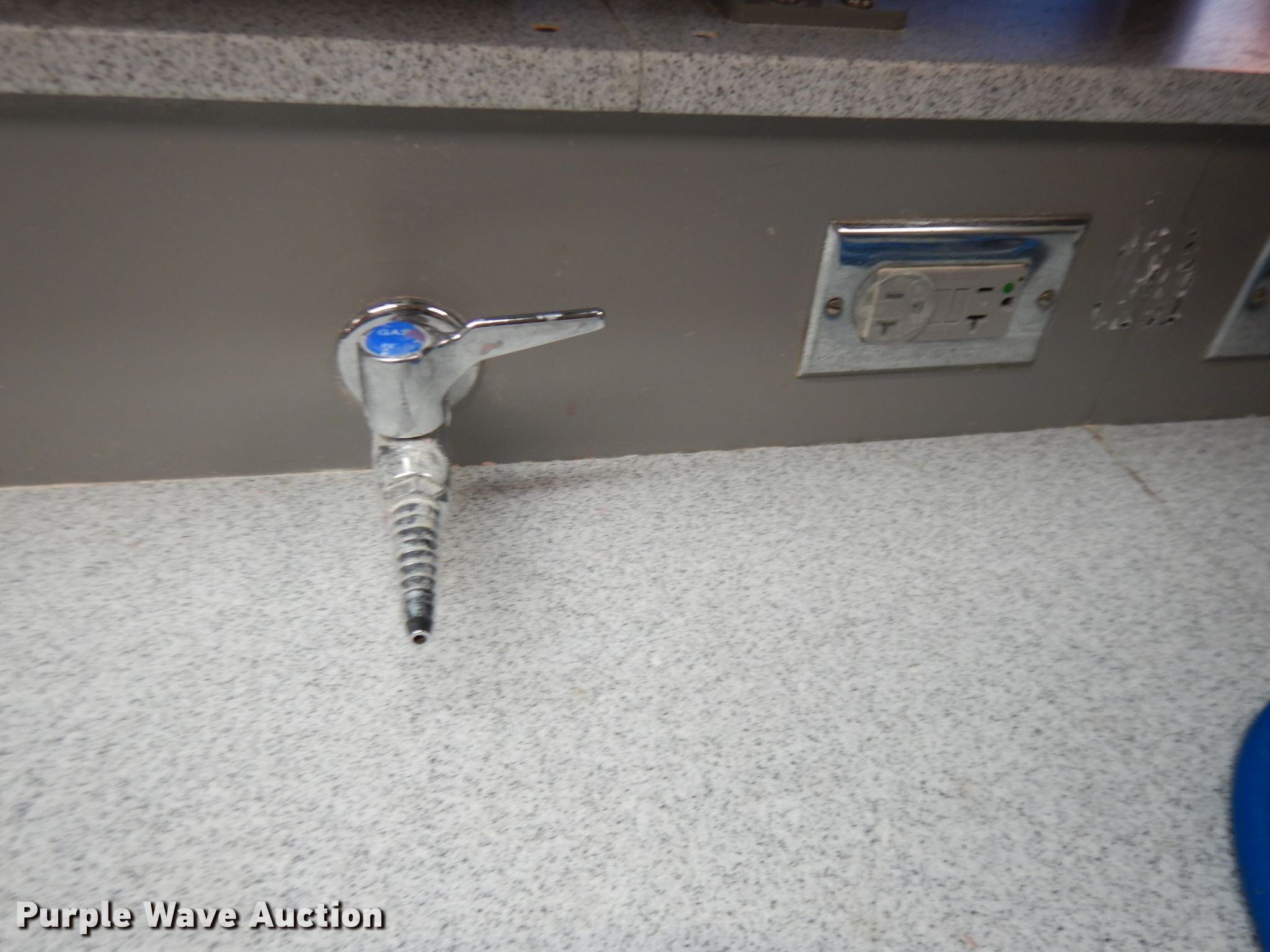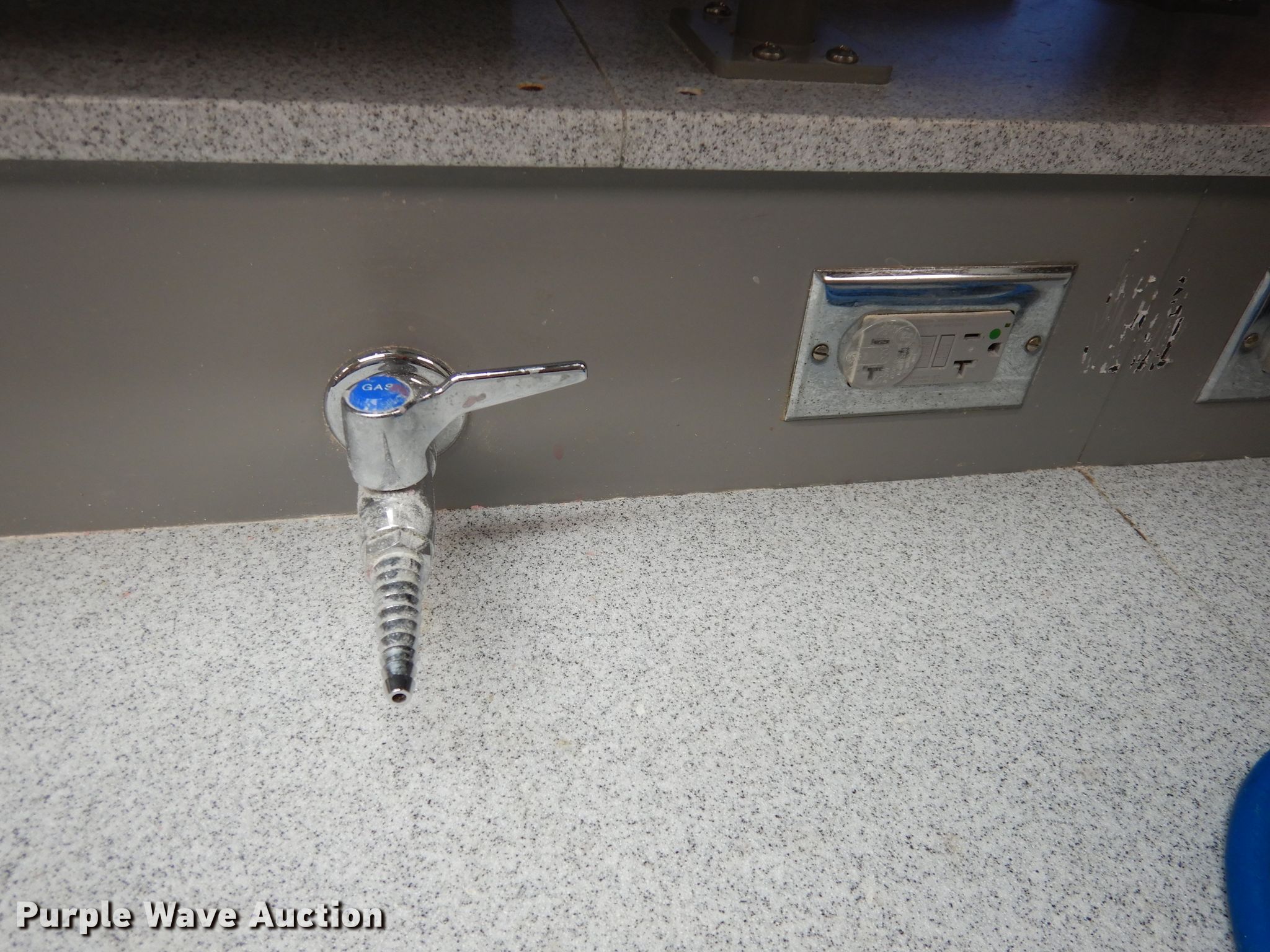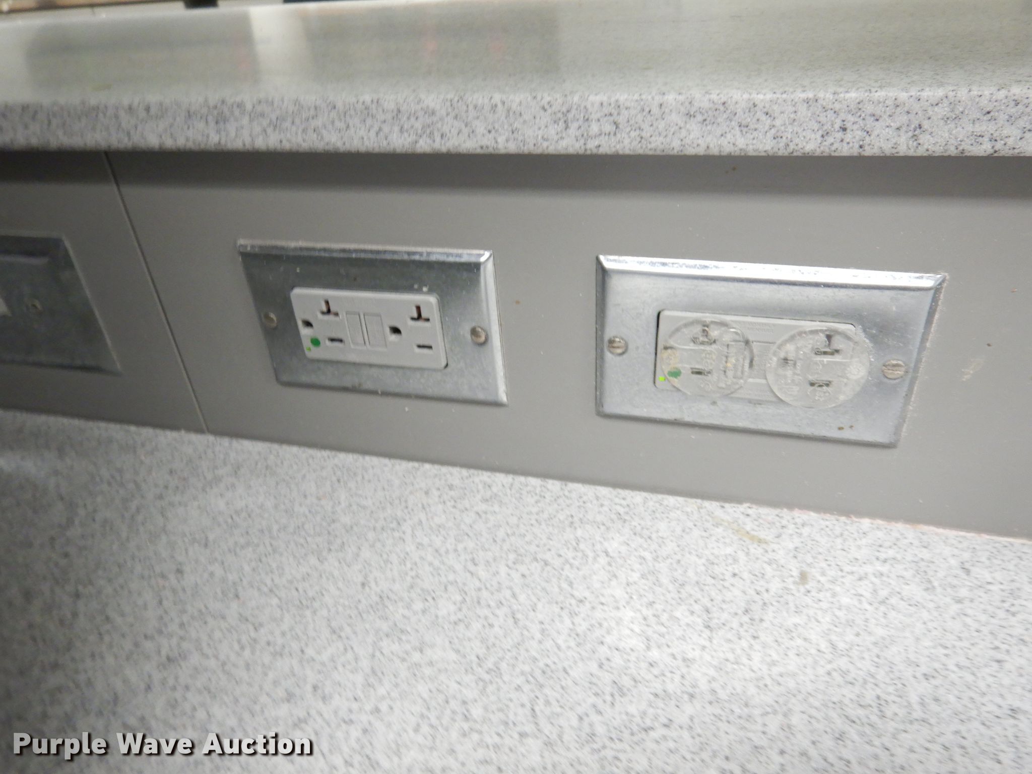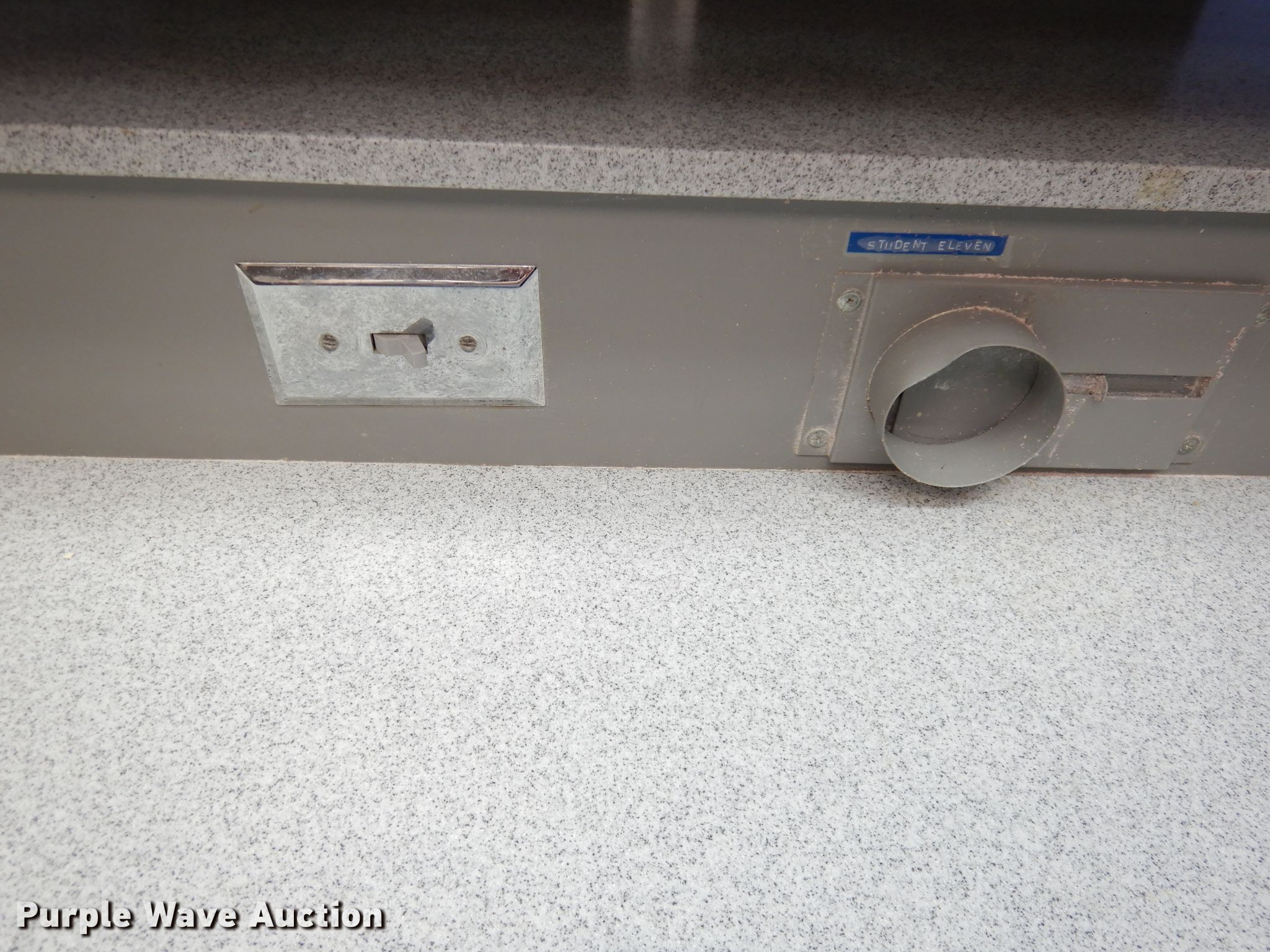 Dental work station. 14'7"L x 57"W x 6'H, Four work stations, Double sided, Air outlets, Vacuum outlets, Electrical outlets, Lights, (8) chairs, Blueprints, 8'H power pole. All aspects of disassembly and removal are the sole responsibility of the purchaser. Topeka, KS 66616