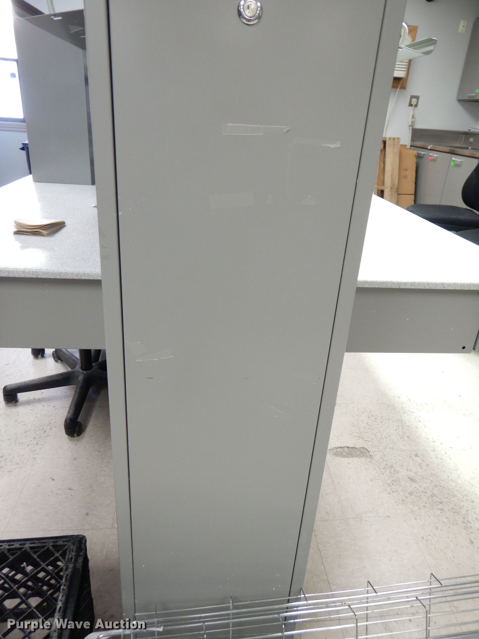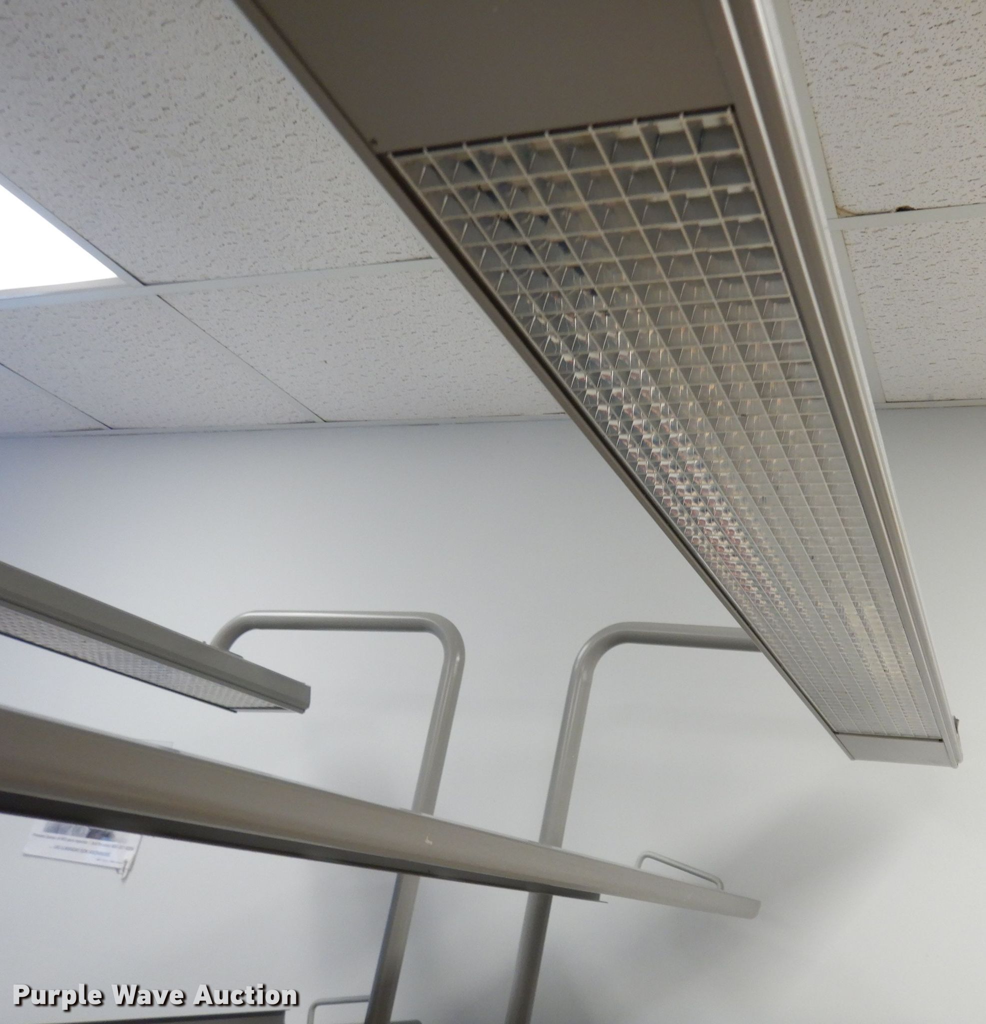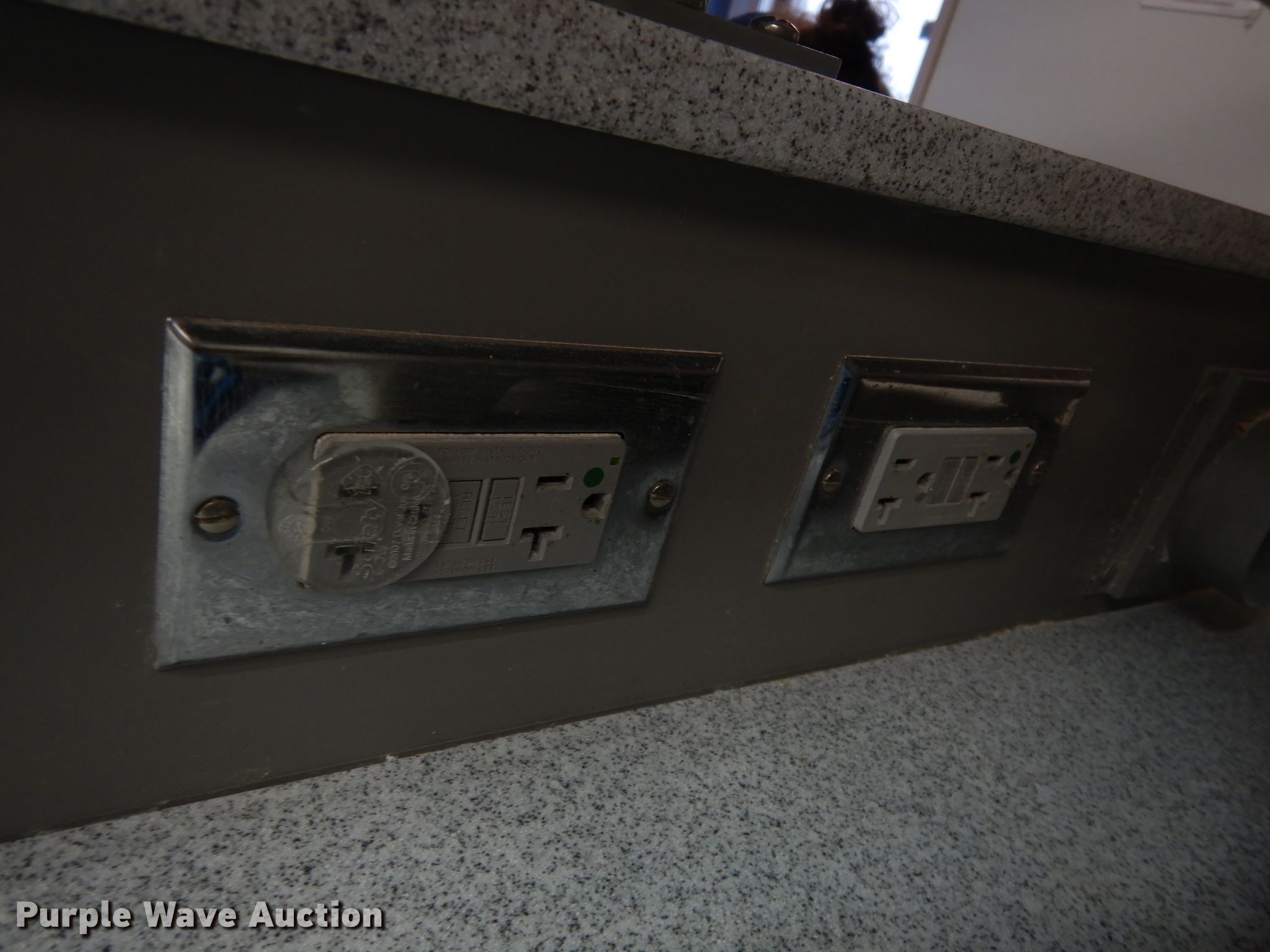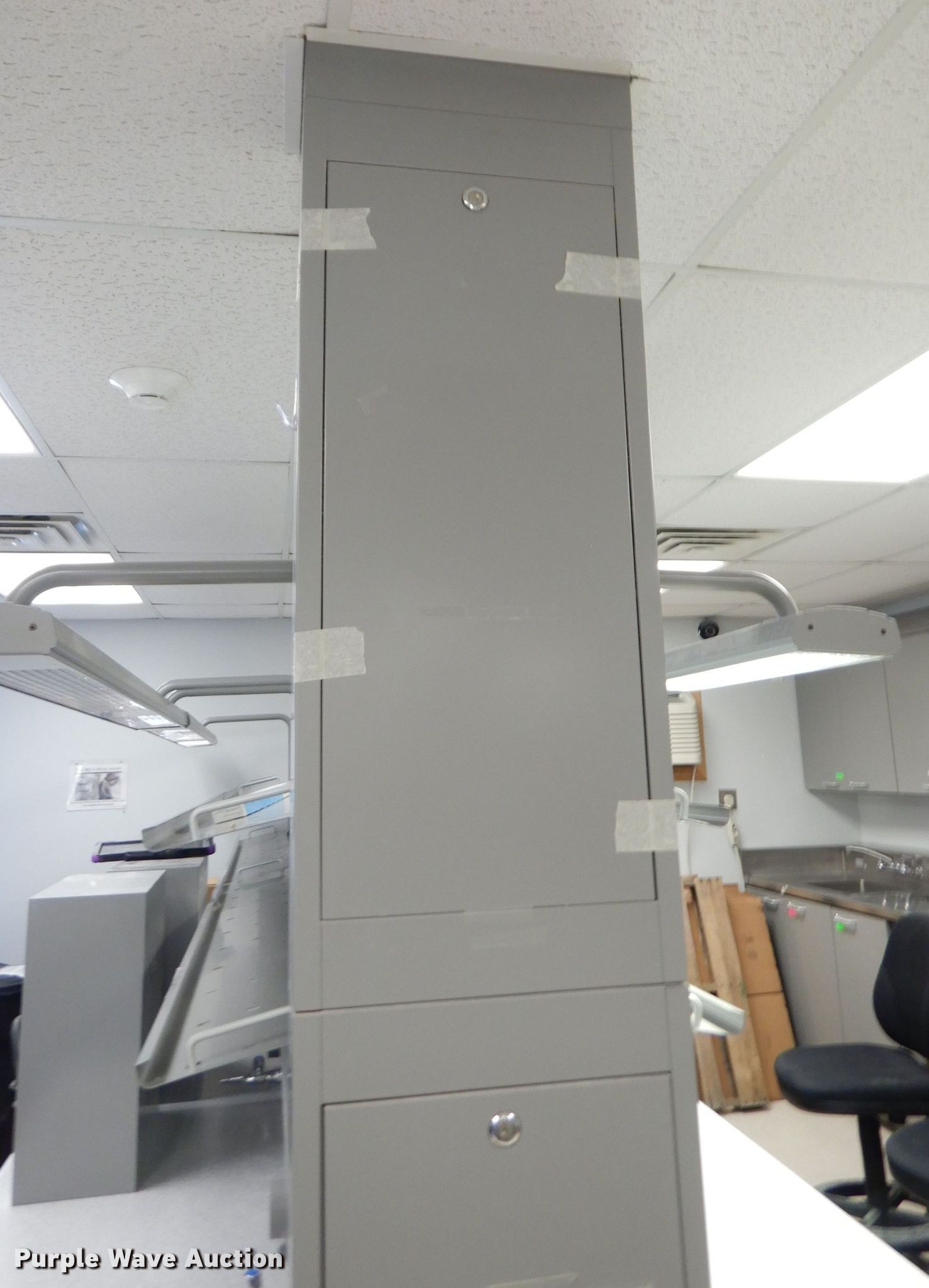 Purple Wave is selling a used Medical Equip. in Kansas. This item is a Dental work station with the following: 14'7"L x 57"W x 6'H, Four work stations, Double sided, Air outlets, Vacuum outlets, Electrical outlets, Lights, (8) chairs, Blueprints, 8'H power pole