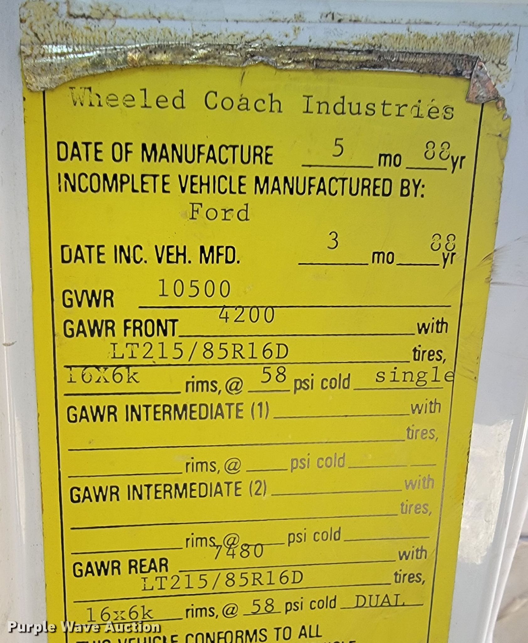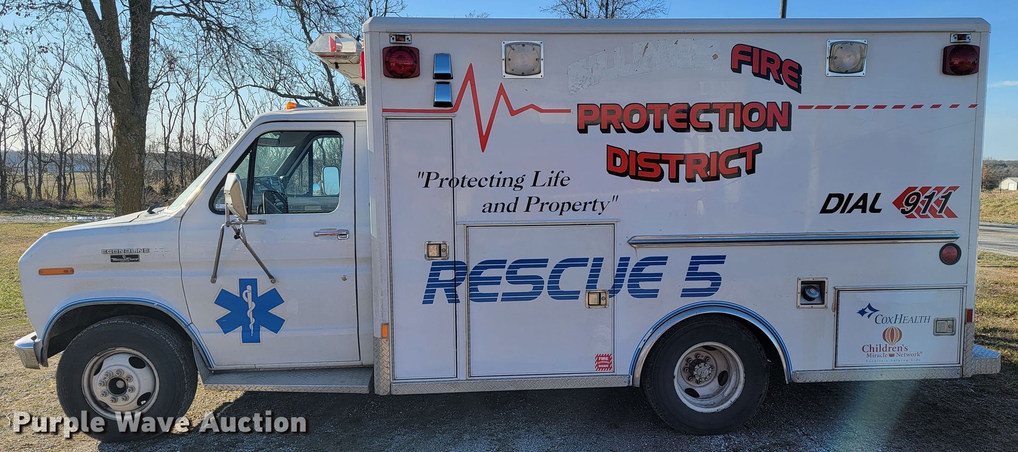 1988 Ford E350 ambulance. Miles: 22,327 on odometer, VIN: 1FDKE30M7JHB39085. Engine Displacement: 7.3L V8 OHV 16V, Cylinders: 8, Fuel type: Diesel. Transmission Automatic. Chassis Axles: Single, Suspension: Spring, Brakes: Hydraulic, GVWR: 10,500 lbs, Wheelbase: 140". Interior Heat, Cruise control. Operational Ambulance body PA/ siren controls, Oxygen hookups. Tires Size: 215/85R16. Missouri title. Seller is a government entity who will be assigning and distributing the title. Please contact the seller for distribution questions. Billings Fire Protection District. 104 NE Washington. Billings, MO 65610