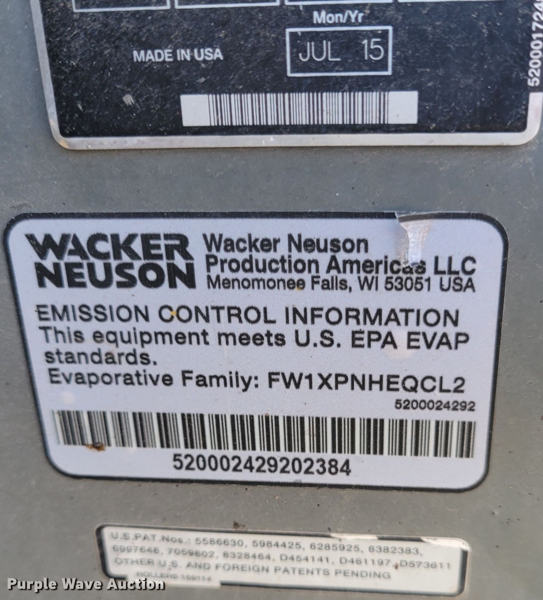 2015 Wacker Neuson RD12 double drum vibratory roller. Hours: 1,811 on meter, Serial: 24267345. Engine Wacker Neuson WN650, Cylinders: 2, Fuel type: Gas. Transmission Hydrostatic. Operational Drum: Smooth, Vibratory system: Single, Front drum Width: 36", Diameter: 22", Rear drum Width: 36", Diameter: 22", Drum scrapers: Front, Rear, Water spray applicator: Front, Rear. Topps Paving & Sealing, LLC. Maryland Heights, MO 63043