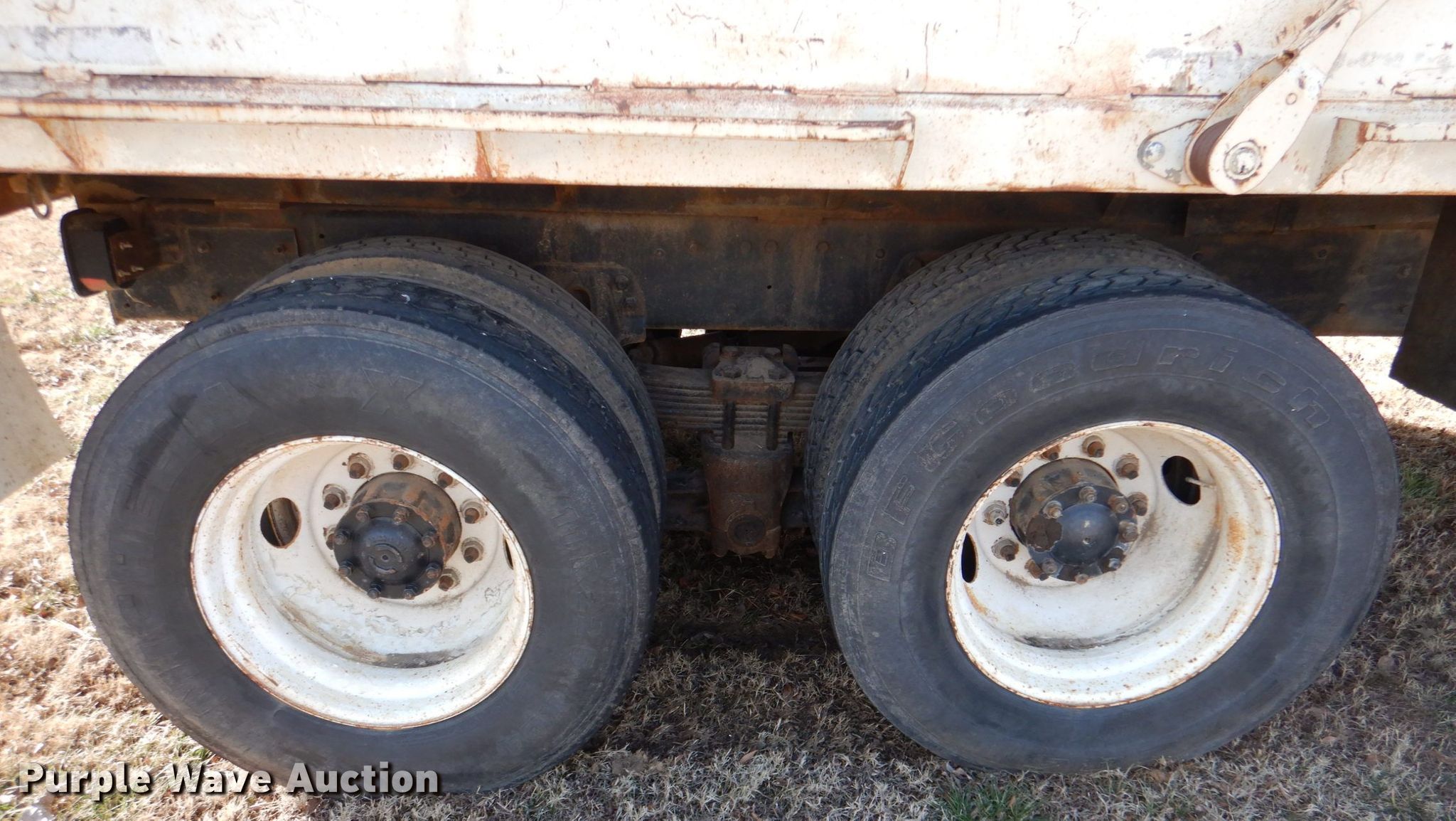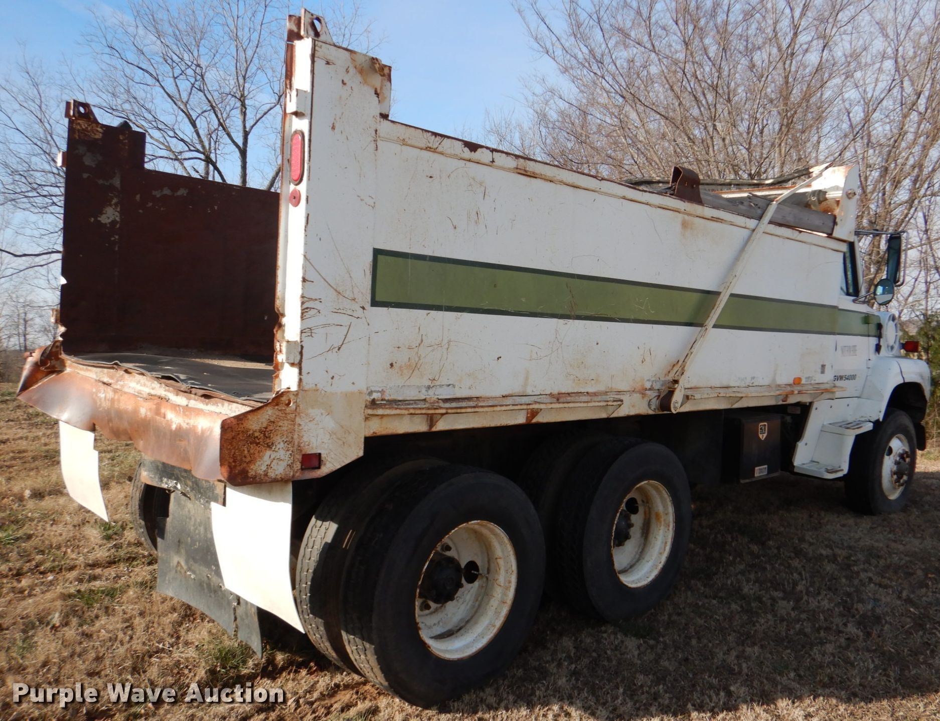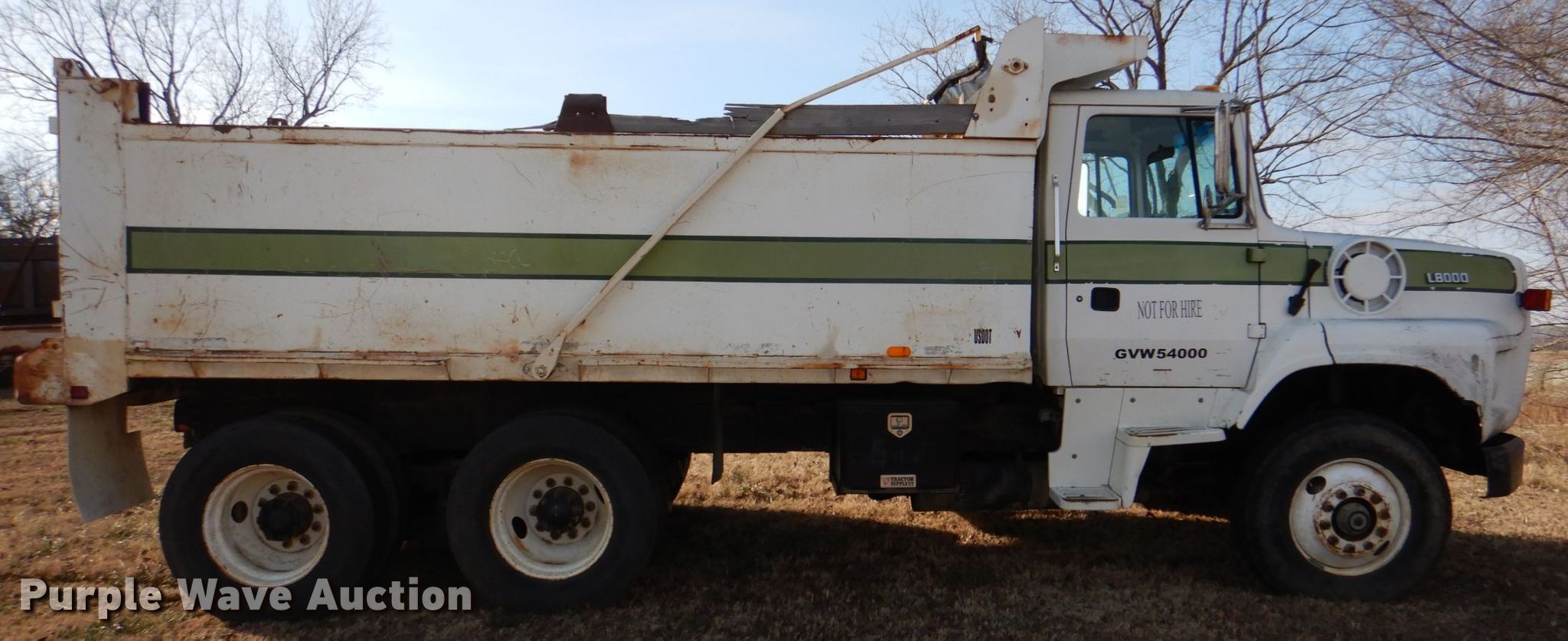 1995 Ford L8000 dump truck. Miles: 141,064 on odometer, VIN: 1FDYY82E4SVA47682. Engine Cummins C series, Displacement: 8.3L, Cylinders: 6, Fuel type: Diesel. Transmission Manual, Speed: 10. Chassis Axles: Tandem, Differential lock: Full, Suspension: Spring over walking beam, Brakes: Air, PTO, GVWR: 53,220 lbs, Wheelbase: 179". Interior AC, Heat. Operational Dump bed 15' L x 8' W, Side height: 41", Side board height: 6", Bed type: Steel, Roll tarp, End gate: Manual. Tires Size: 11R22.5. Notes No batteries, Non-operational unit. Oklahoma classic title. Title distribution may be delayed up to 14 days from verification of funds. 8973 E 53rd St S. Braggs, OK 74423