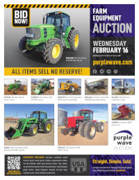 Payments must be made by 4 p.m. CST on the second business day following the auction. Failure to make payment or payment arrangements by the deadline will result in a $30 late payment fee. Purple Wave reserves the right to charge the credit card on file the total purchase price and a $30 late payment fee will be added for invoices not paid within our terms. Payment should be made to Purple Wave, Inc.
