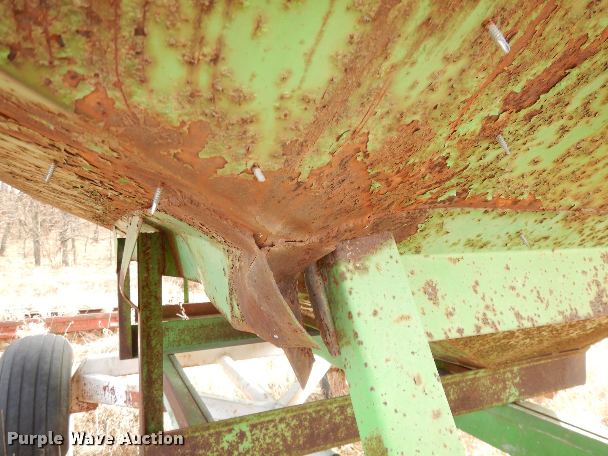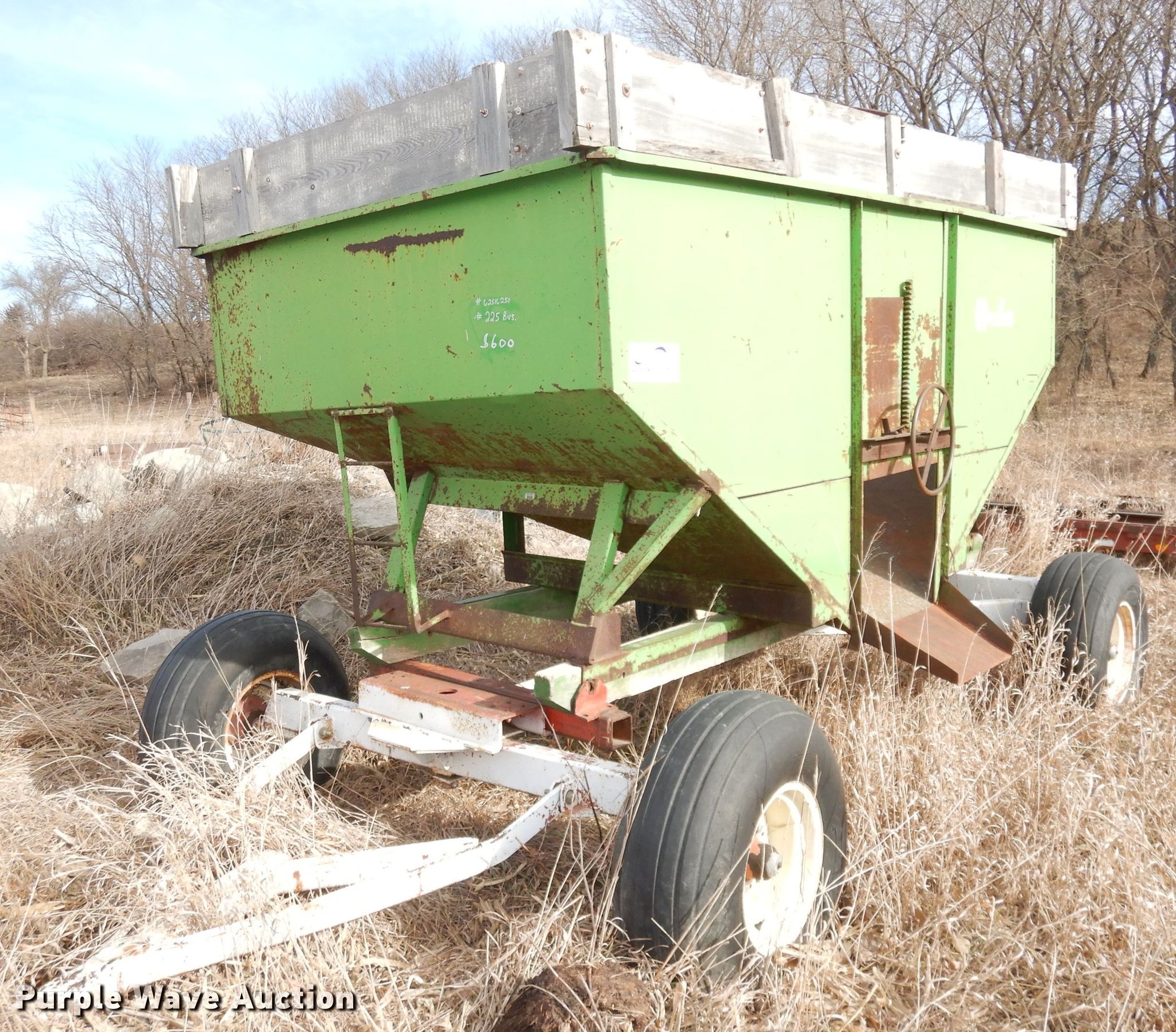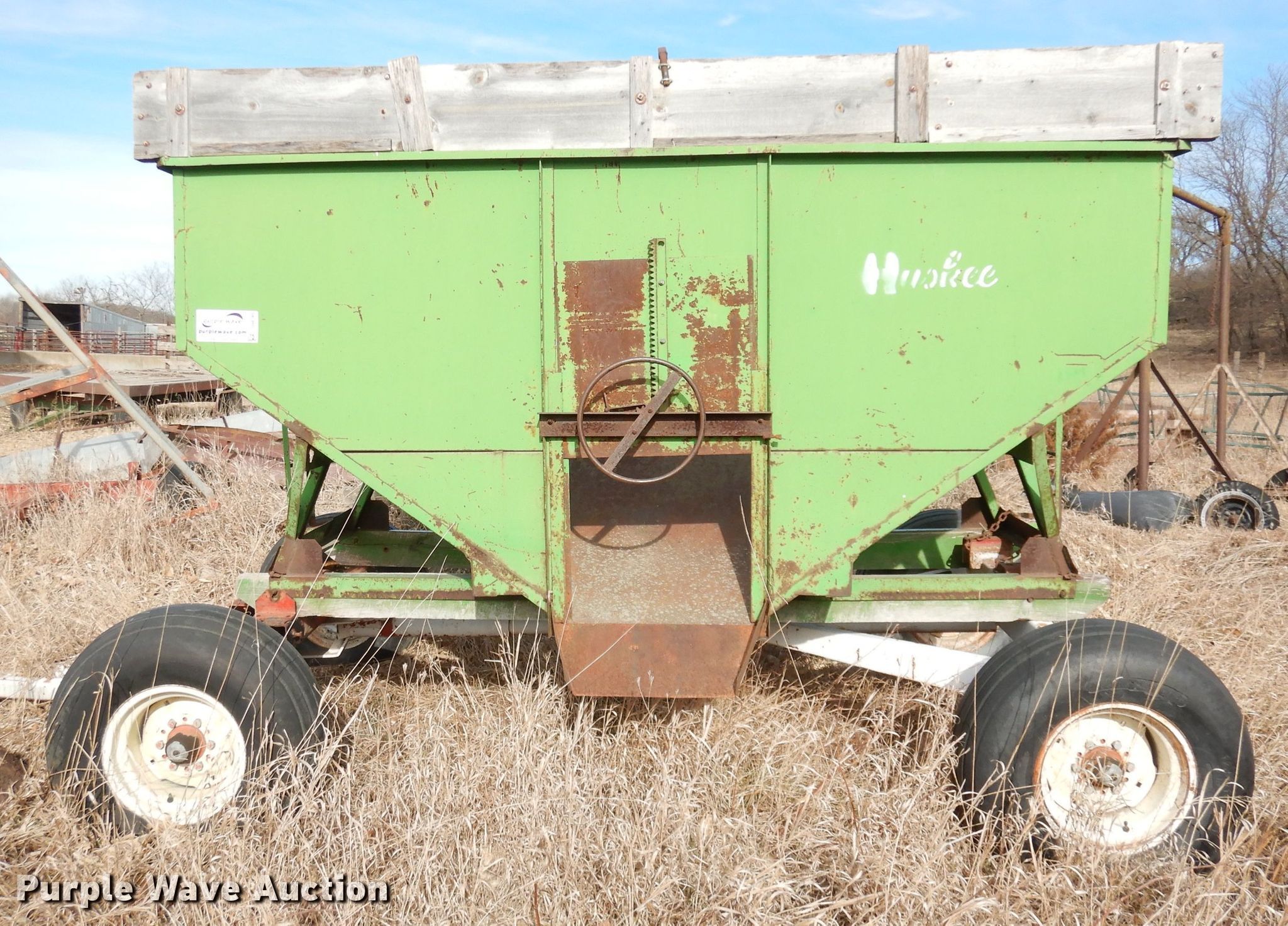Purple Wave is selling a used Grain Cart or Gravity Wagon in Kansas. This item is a Huskee gravity wagon with the following: Serial: 7067