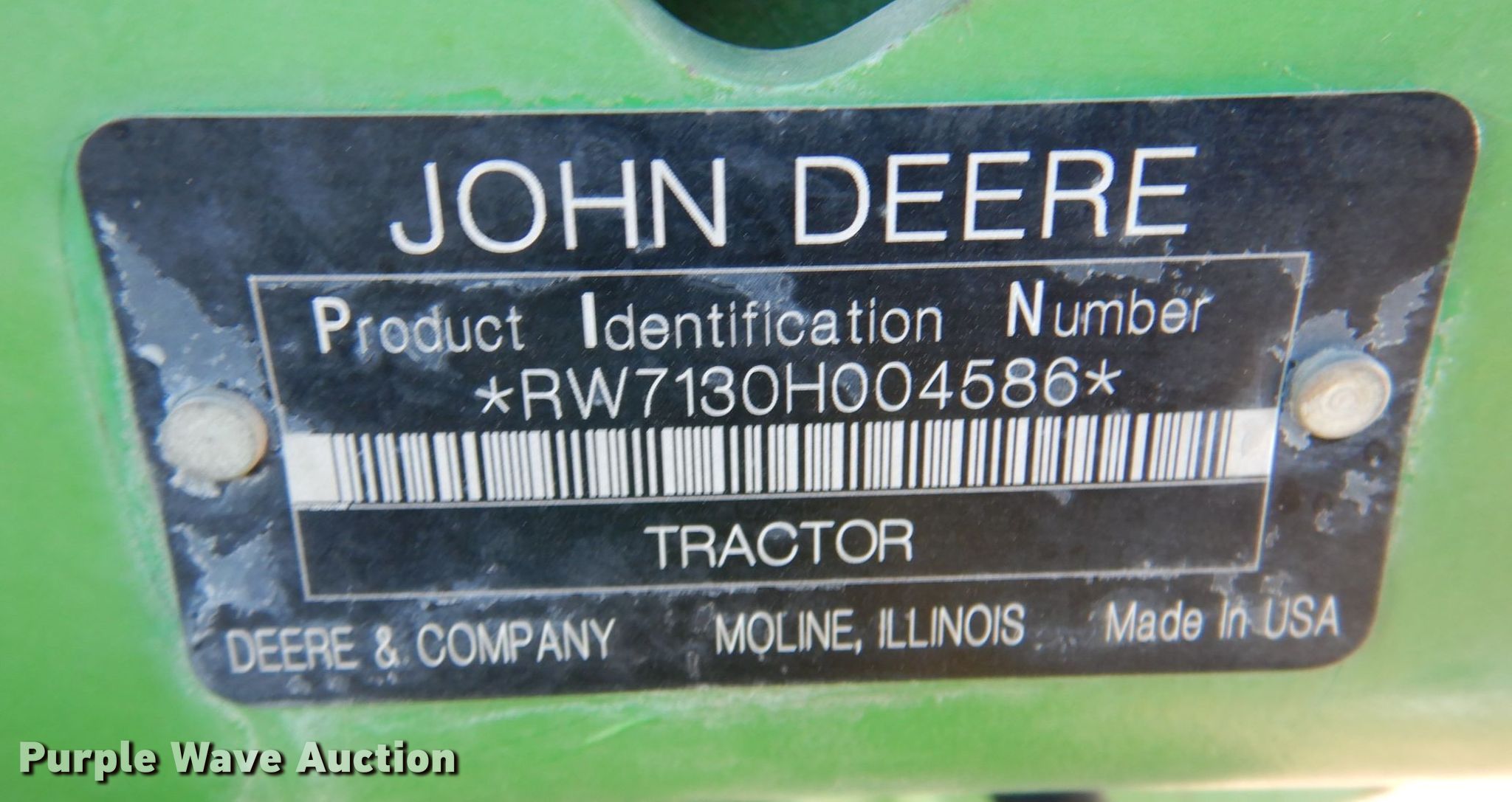 Purple Wave is selling a used Tractor in Kansas. This item is a 2008 John Deere 7130 MFWD tractor with the following: Hours: 6,535 on meter, Serial: RW7130H004586