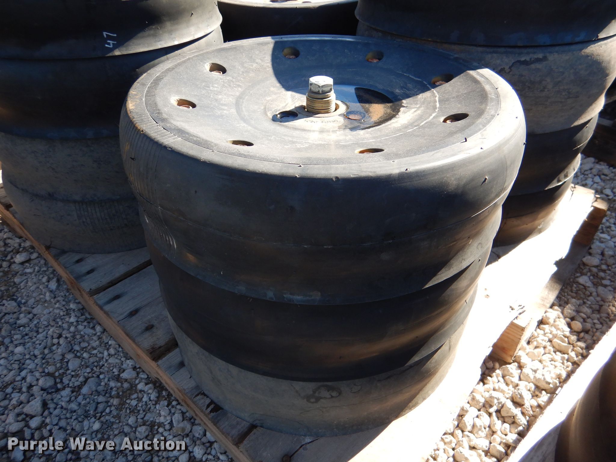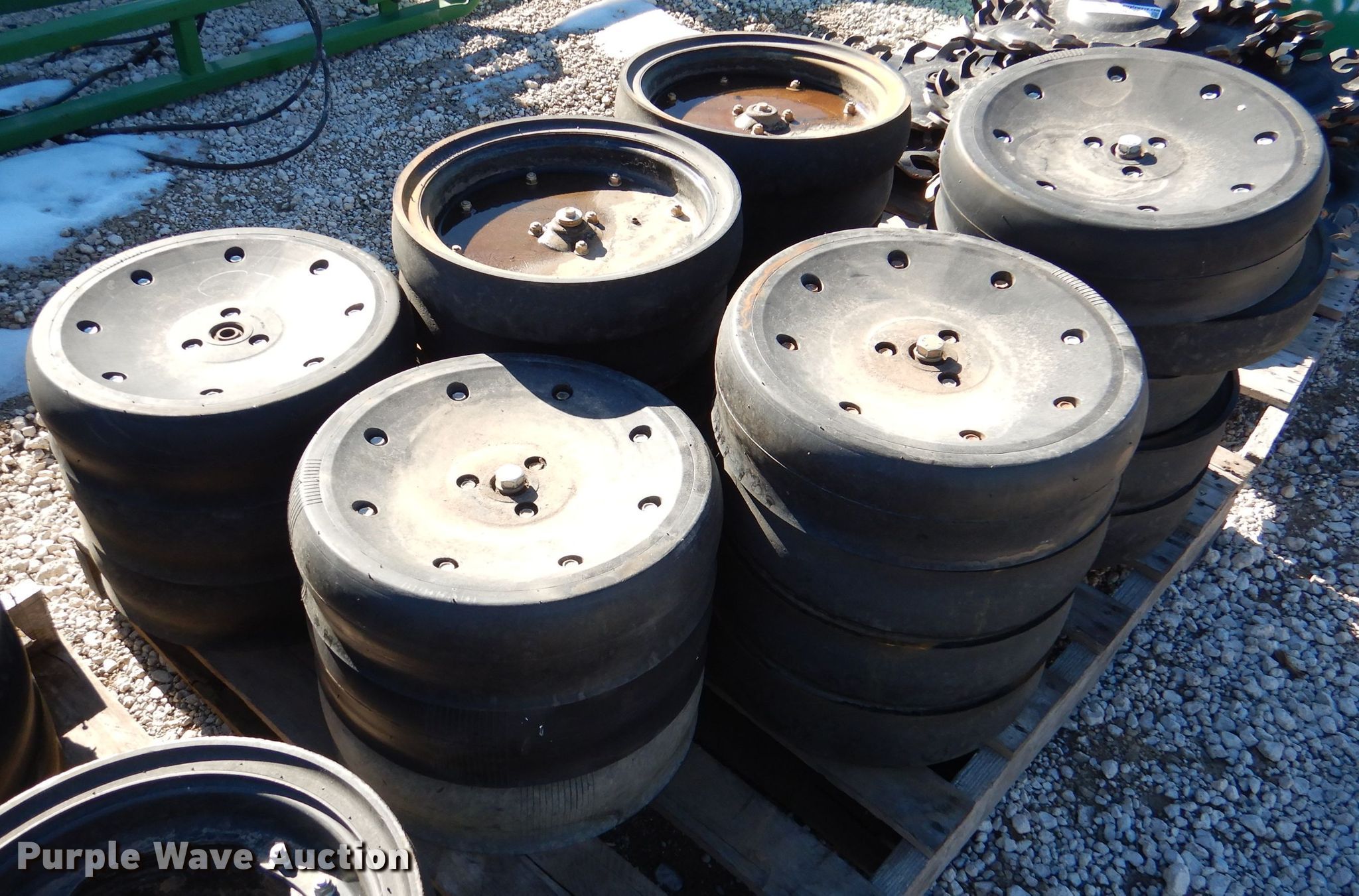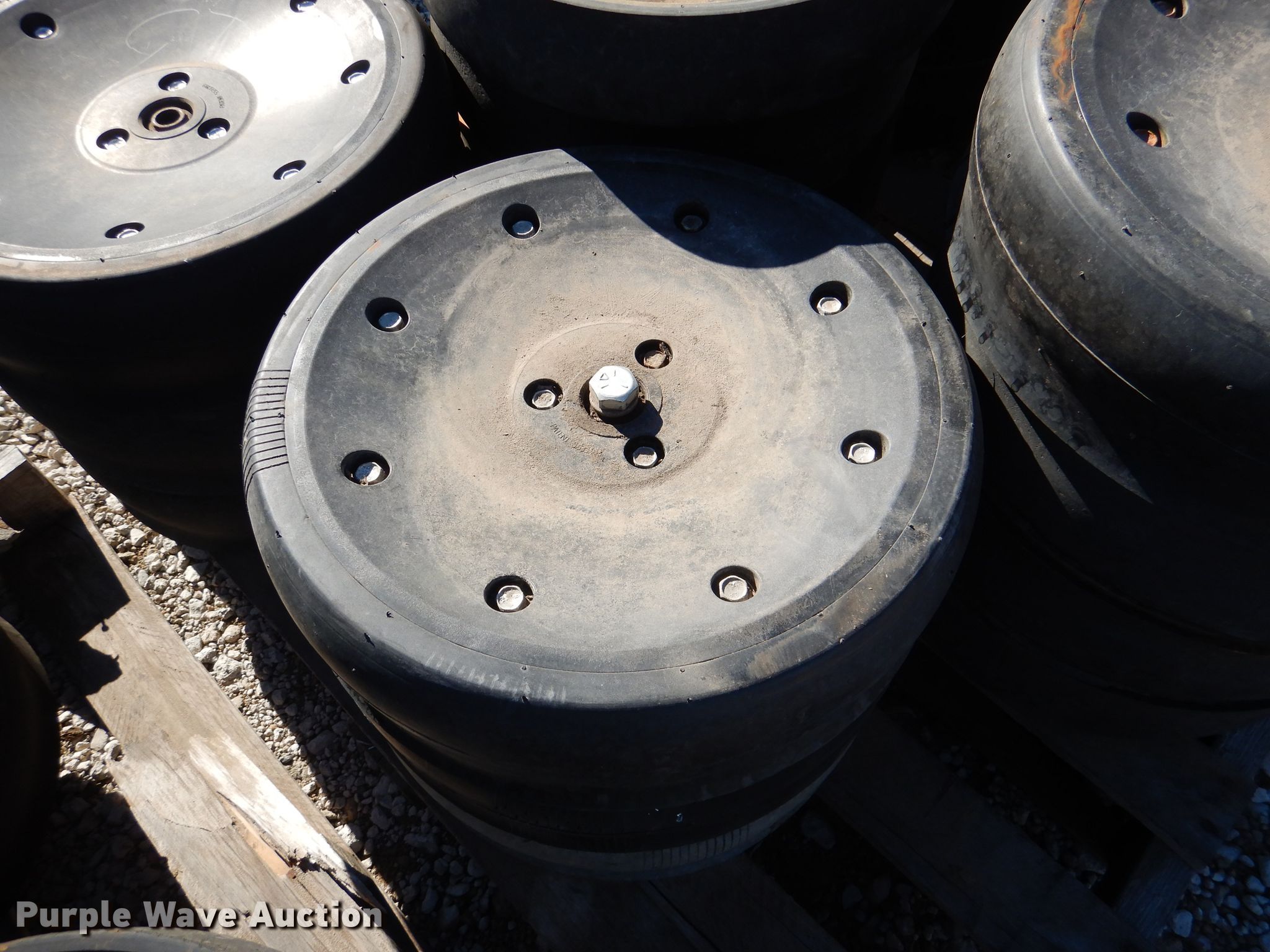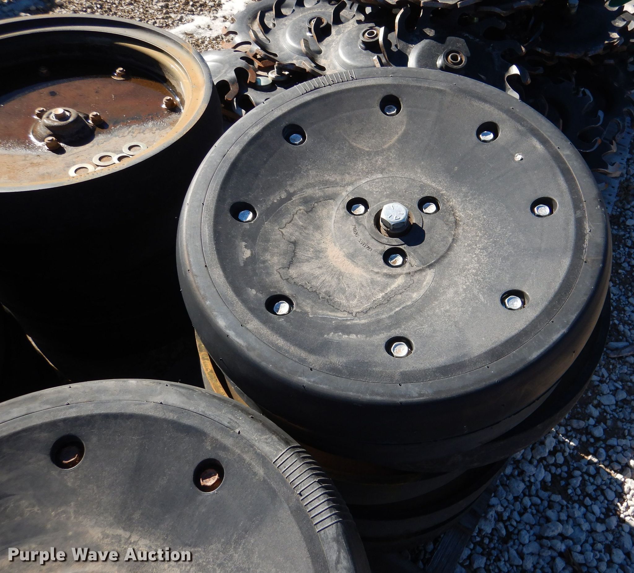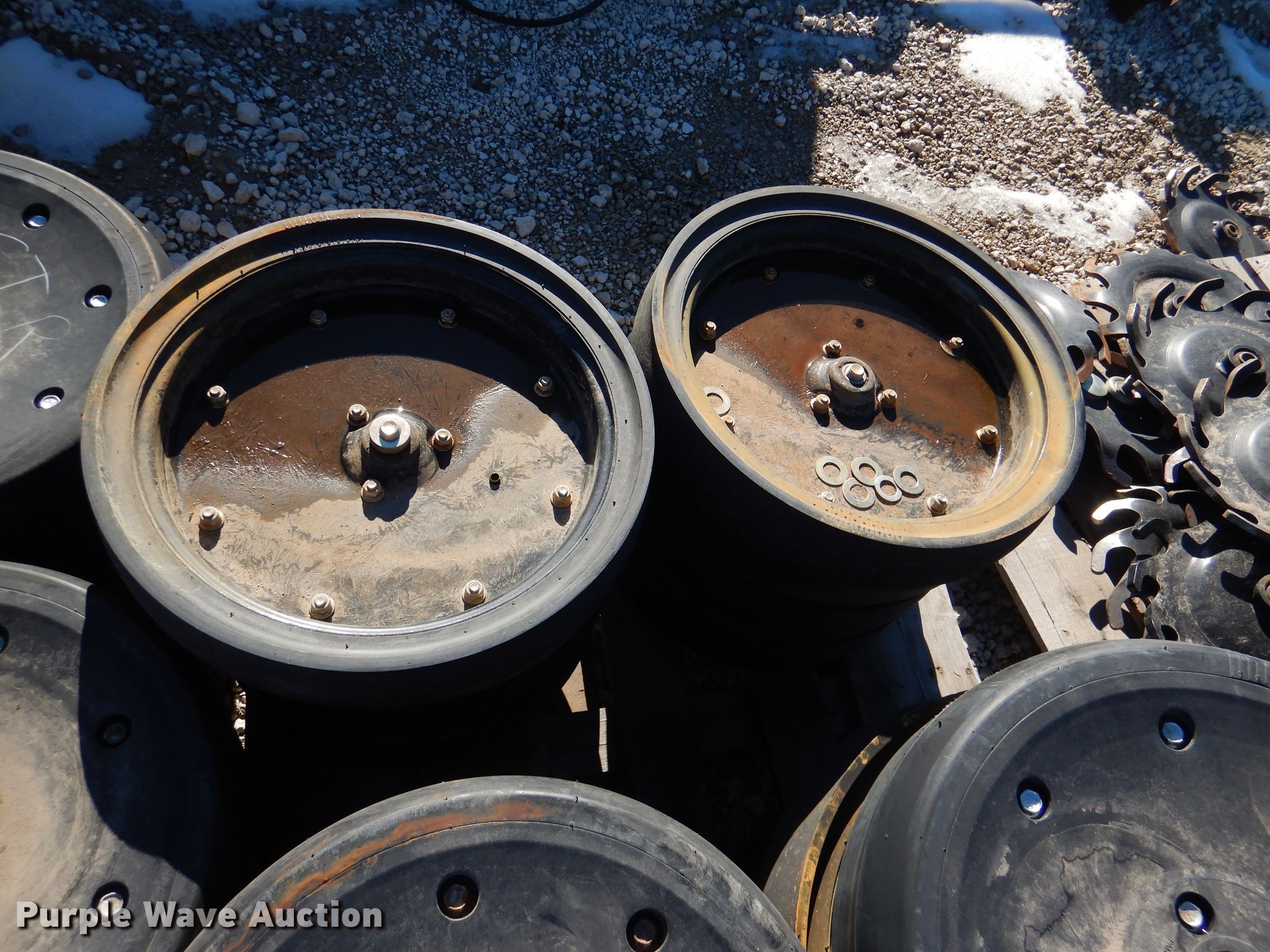 Purple Wave is selling a used Planter or Seeder Attach. in Kansas. This item is a Gauge wheels with the following: Approx. 37 Great Plain gauge wheels, Approx. 15 Carlisle gauge wheels