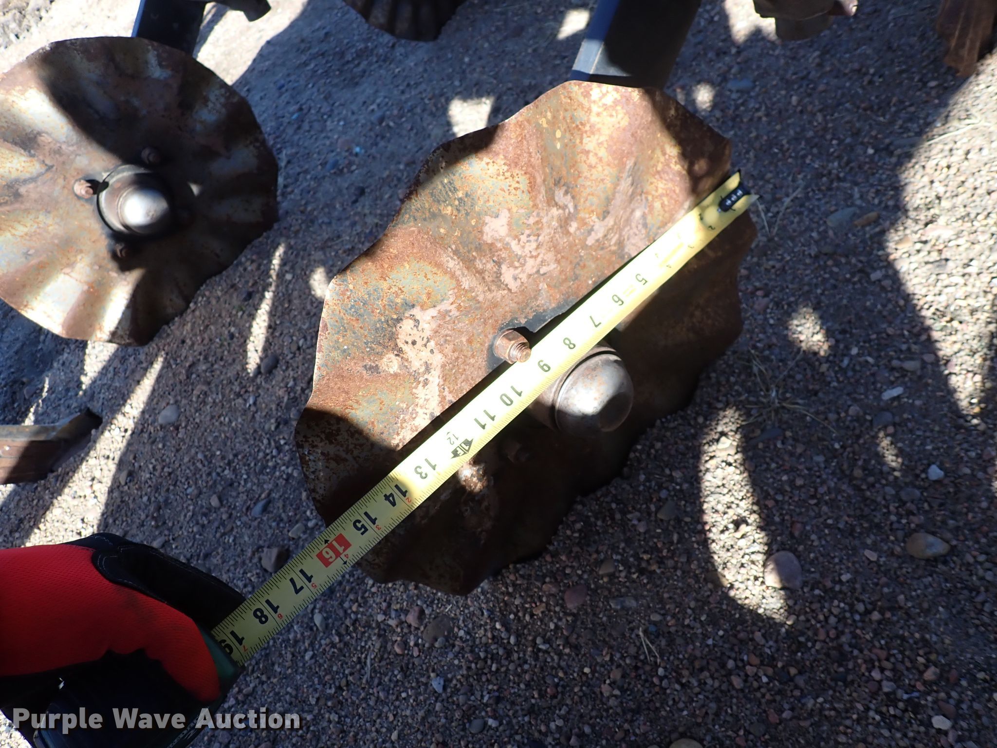 Torline TST 8-30 strip-till. Overall width: 20', Serial: 0502-0060. Operational Number of rows: 8, Row spacing: 30", Disk openers: Single, Shanks, Rolling baskets, NH3 hookups, Rear hitch, Hitch: Three point. Tires Tire size: 9.5L-15. 1137 90th Ave. Kinsley, KS 67547