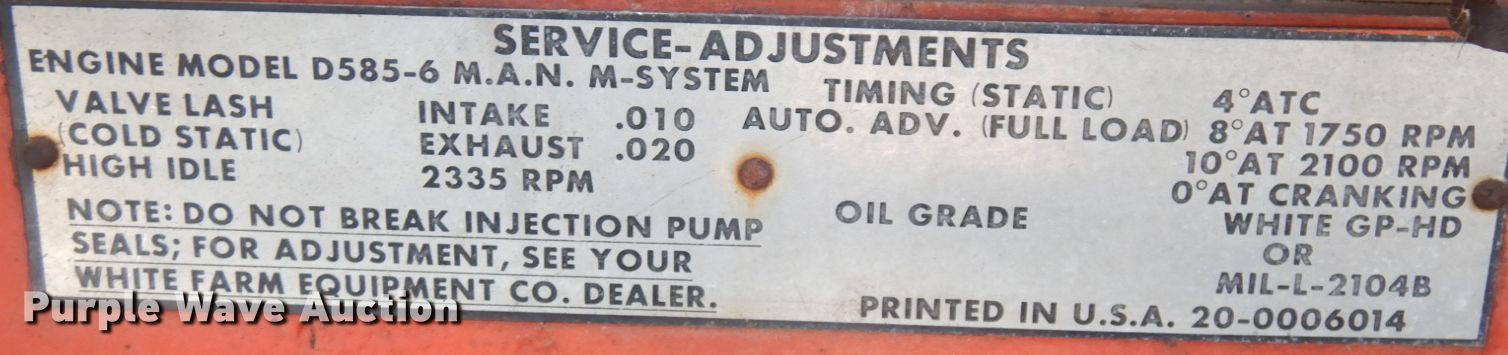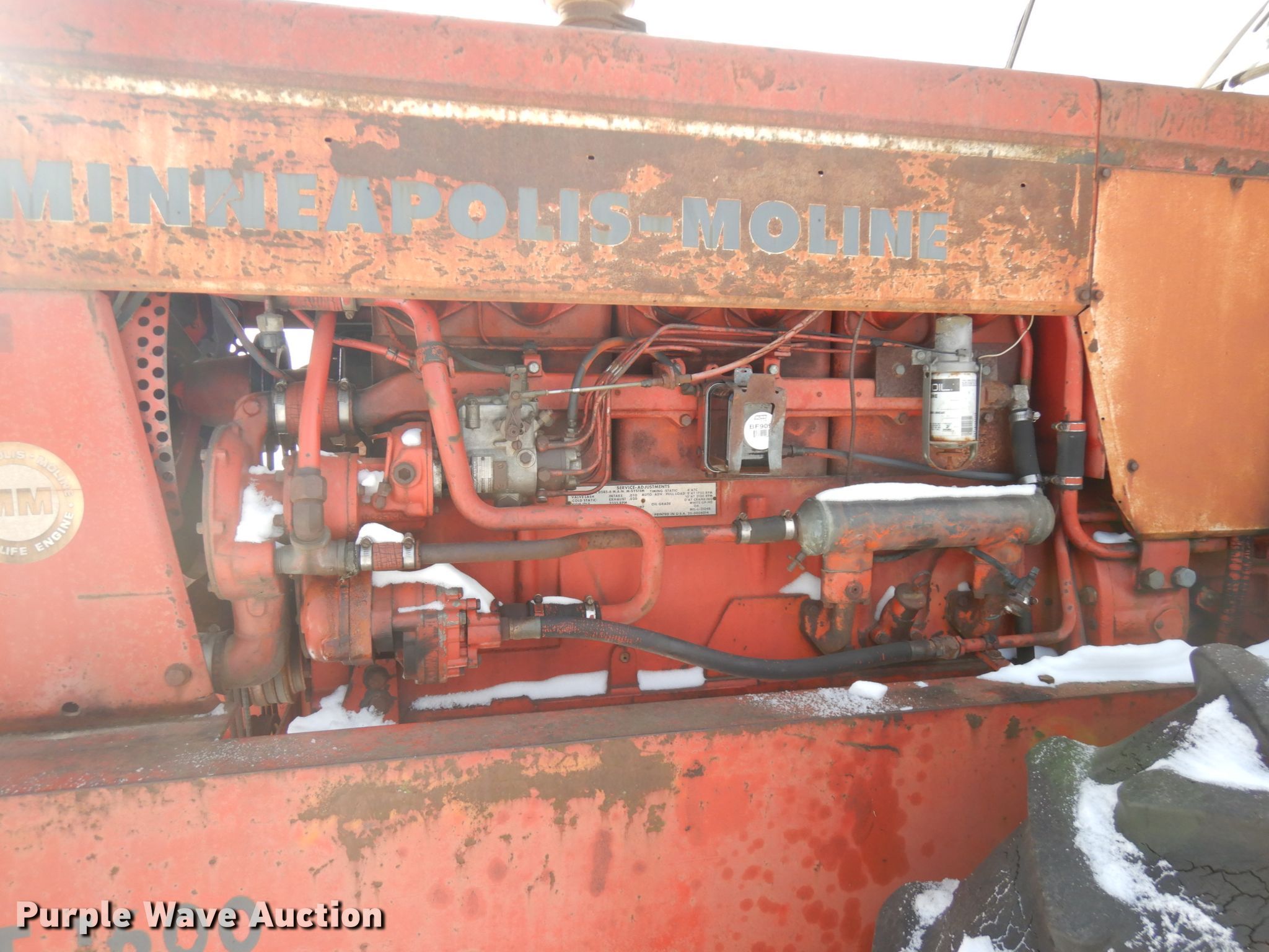 1972 Minneapolis Moline A4T-1600 4WD tractor. Hours: 6,020 on meter, Serial: 45600716. Engine Cylinders: 6, Fuel type: Diesel. Transmission Manual, 10F - 2R. Operational Hydraulic remote sets Rear: 3. Tires Size: 18.4-34. Notes No oil pressure, Non-operational unit. 23509 Goodwin Ave. Hampton, MN 55031