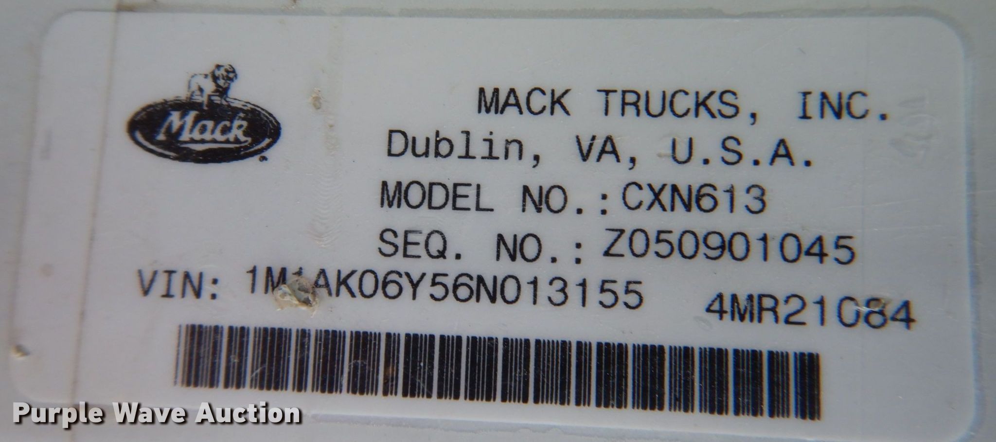 Take a look at this used 2006 Mack CXN613 semi truck being sold on February 17th, 2022 in the SOLD! February 17 Truck and Trailer Auction made by Mack. Take a look at all of the item information below or take a look at similar auctions for Trucks.