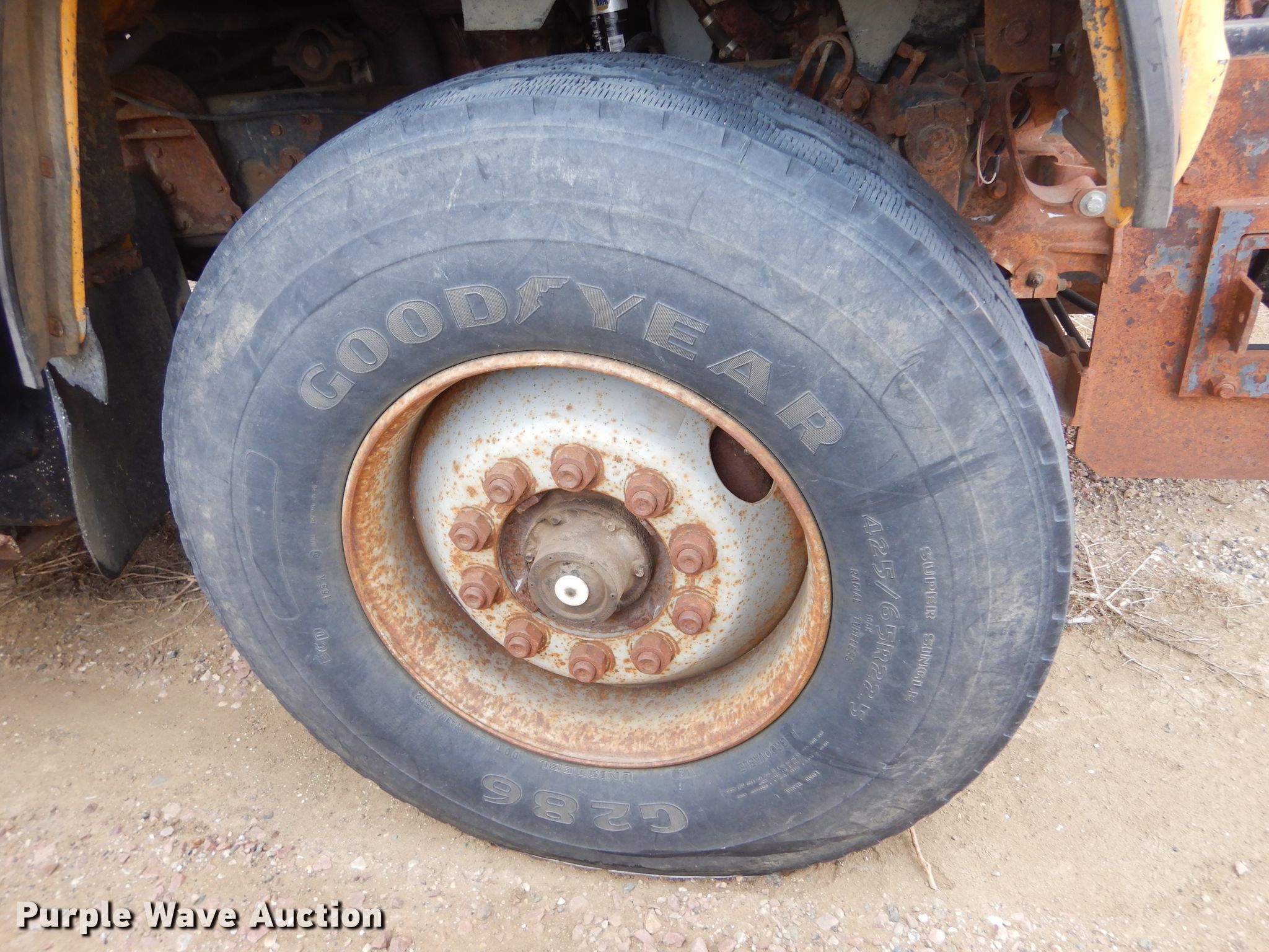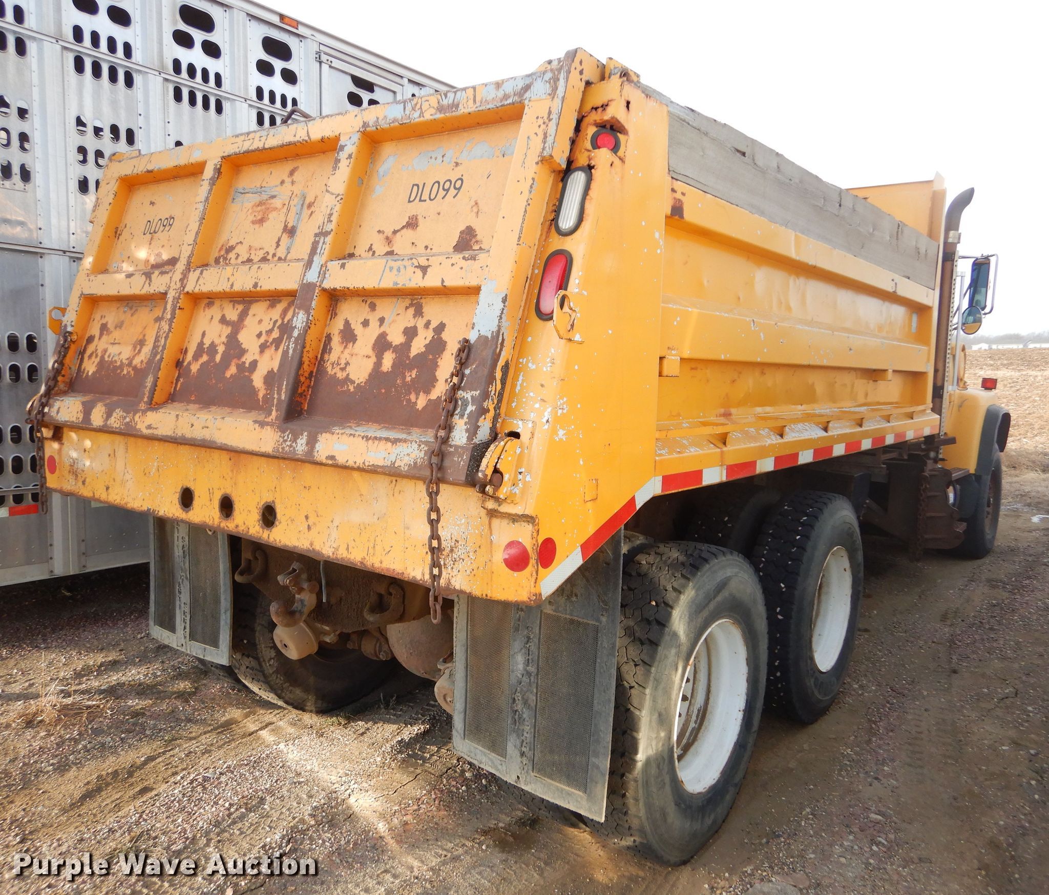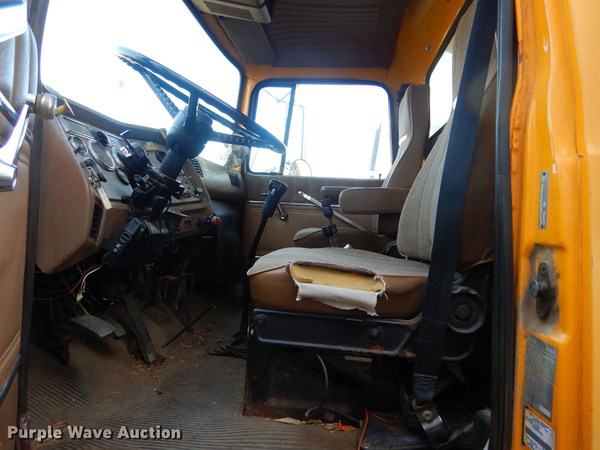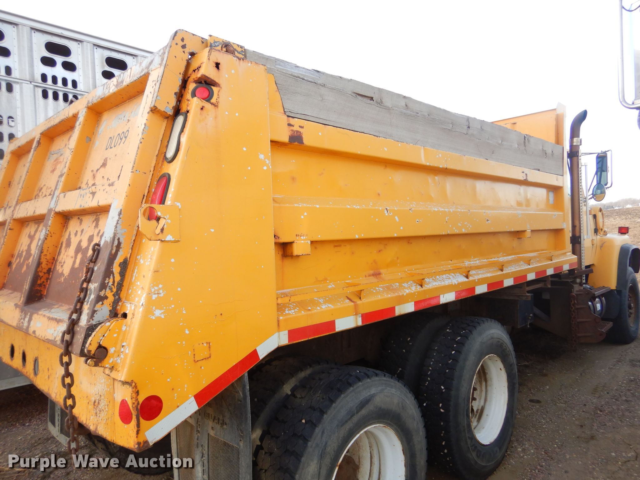 1995 Ford LT8000 dump truck. Miles: 157,834 on odometer, Hours: 6,674 on meter, VIN: 1FDYU82E3SVA44896, Unit #: DL099. Engine Cylinders: 6, Fuel type: Diesel. Transmission Manual. Chassis Double frame, Axles: Tandem, Suspension: Spring over walking beam, Brakes: Air, Front mount PTO, GVWR: 54,000 lbs FAWR: 14,400 lbs, IAWR: 20,000 lbs, RAWR: 20,000 lbs. Interior Heat, Brake controller. Operational Dump bed 15' L x 8' W, Side height: 36", Side board height: 12", Bed type: Steel, Bed vibrator, Ram: Single , End gate: Air operated. Tires Front: 425/65R22.5, Rear: 12R22.5. Notes Windshield chipped or cracked, Engine issues, Possible cylinder head issues, Unit must be towed or hauled. South Dakota title. State of South Dakota Property Management. Wagner, SD 57380