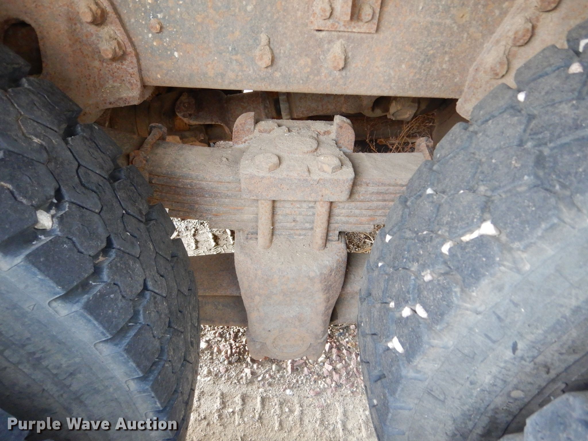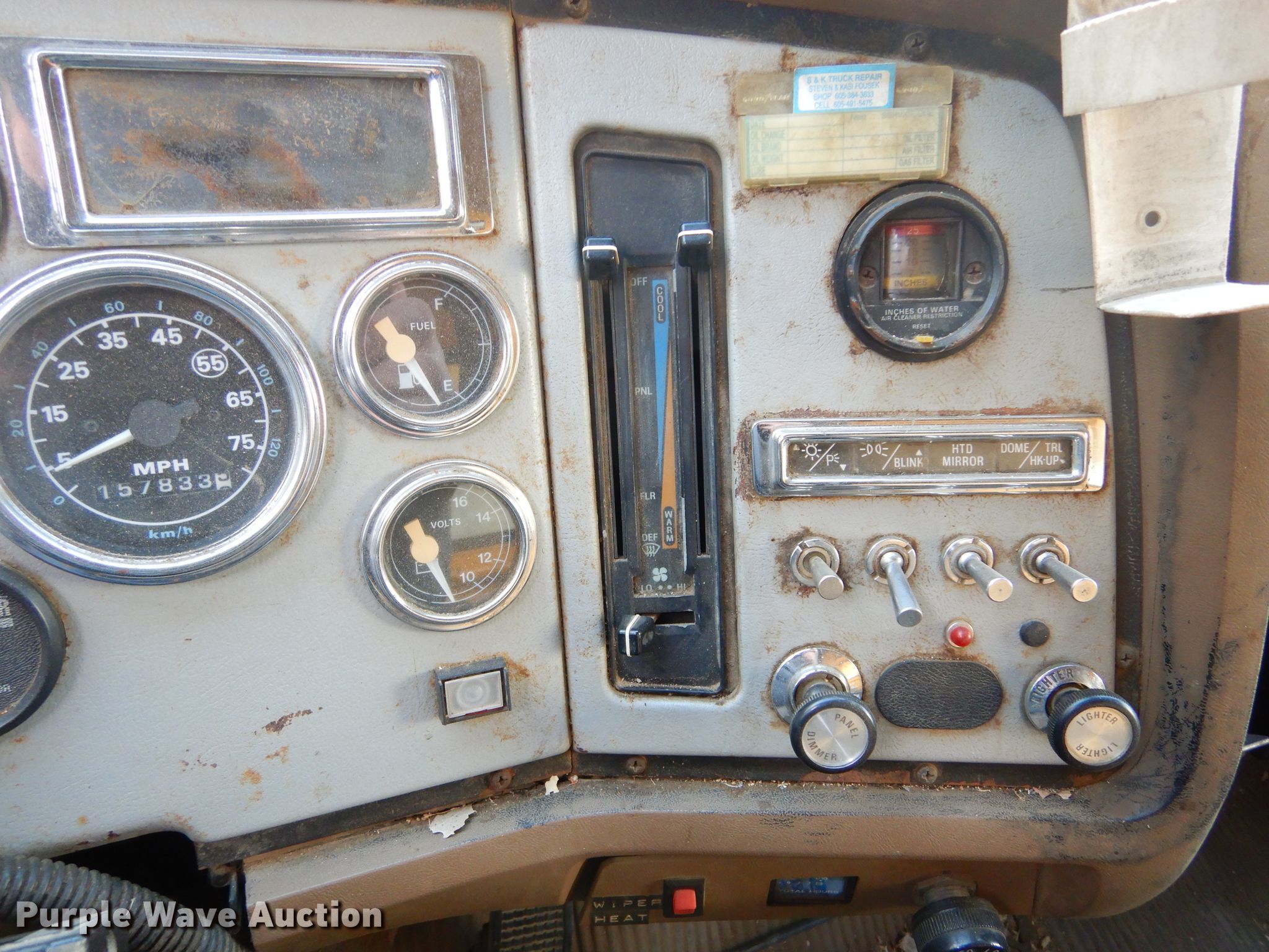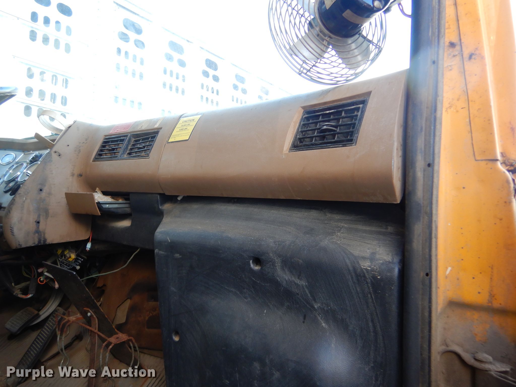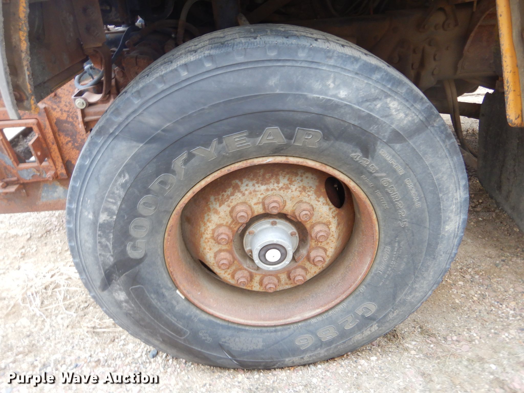 1995 Ford LT8000 dump truck. Miles: 157,834 on odometer, Hours: 6,674 on meter, VIN: 1FDYU82E3SVA44896, Unit #: DL099. Engine Cylinders: 6, Fuel type: Diesel. Transmission Manual. Chassis Double frame, Axles: Tandem, Suspension: Spring over walking beam, Brakes: Air, Front mount PTO, GVWR: 54,000 lbs FAWR: 14,400 lbs, IAWR: 20,000 lbs, RAWR: 20,000 lbs. Interior Heat, Brake controller. Operational Dump bed 15' L x 8' W, Side height: 36", Side board height: 12", Bed type: Steel, Bed vibrator, Ram: Single , End gate: Air operated. Tires Front: 425/65R22.5, Rear: 12R22.5. Notes Windshield chipped or cracked, Engine issues, Possible cylinder head issues, Unit must be towed or hauled. South Dakota title. State of South Dakota Property Management. Wagner, SD 57380