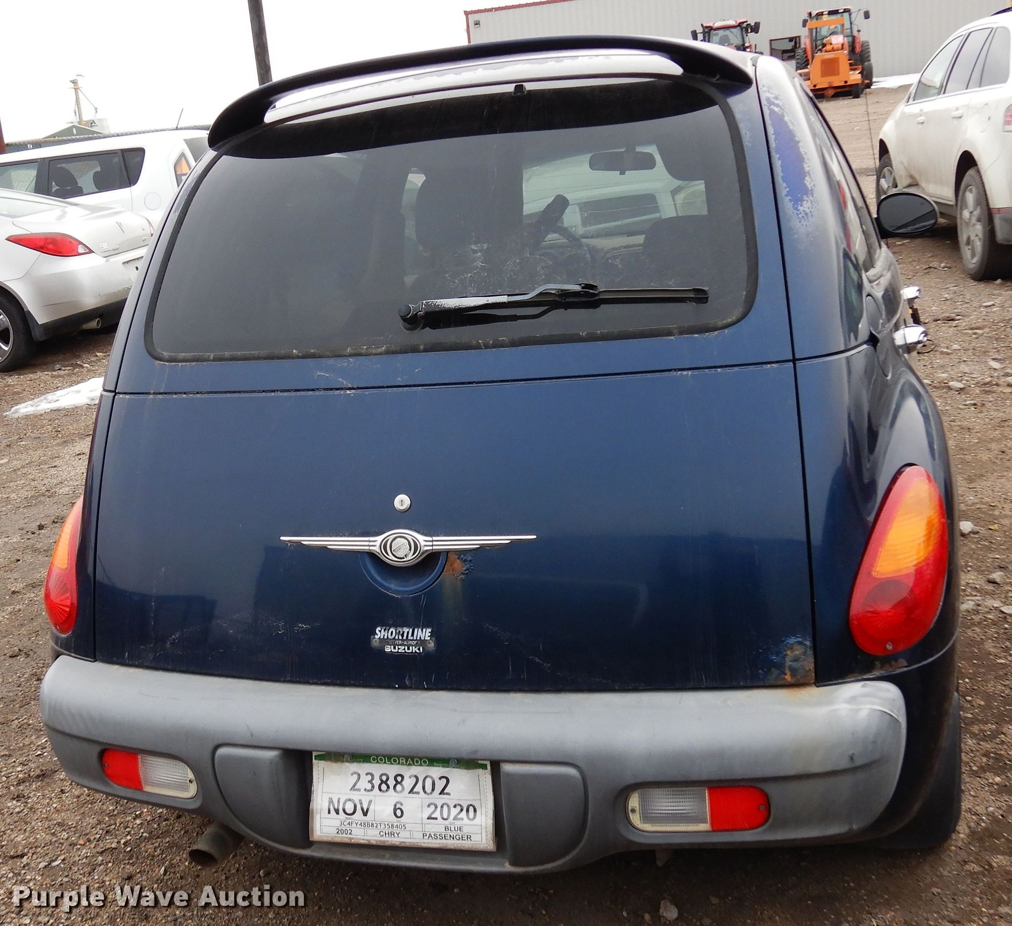 2002 Chrysler PT Cruiser. Miles: 198,092 on odometer, VIN: 3C4FY48B82T358405. Engine Displacement: 2.4L L4 DOHC 16V, Cylinders: 4, Fuel type: Gas. Transmission Automatic. Interior AC, Heat, Power windows, Power locks. Tires Size: 165/65R15. Notes Windshield chipped or cracked, Hail damage, Dead battery, Tires flat, Unknown operating condition. Kansas title. Thomas County Sheriffs Office. 225 N Court Ave. Colby, KS 67701