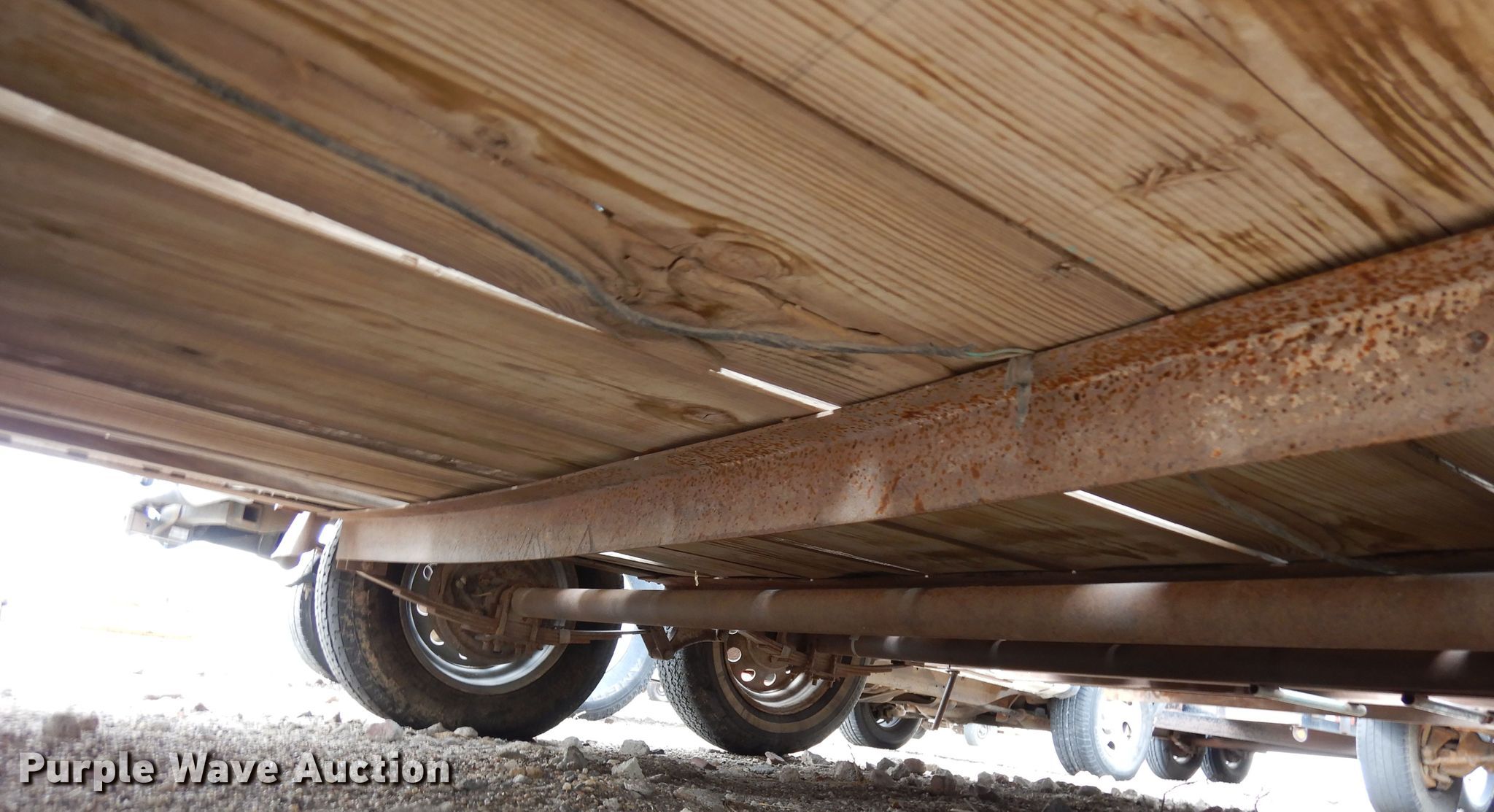1998 Az-Tex utility trailer. VIN: 4ZBUE0169WL008197. Dimensions Overall: 19' L x 96" W, Deck: 199" L x 83" W, Side height: 36", Ramps: Manual Length: 4'. Operational Deck type: Wood. Chassis Ball hitch: 2", Landing gear: Single, Suspension: Spring, Axles: Tandem. Tires Steel wheels, Size: 215/75R15. Kansas title. Thomas County Sheriffs Office. 225 N Court Ave. Colby, KS 67701