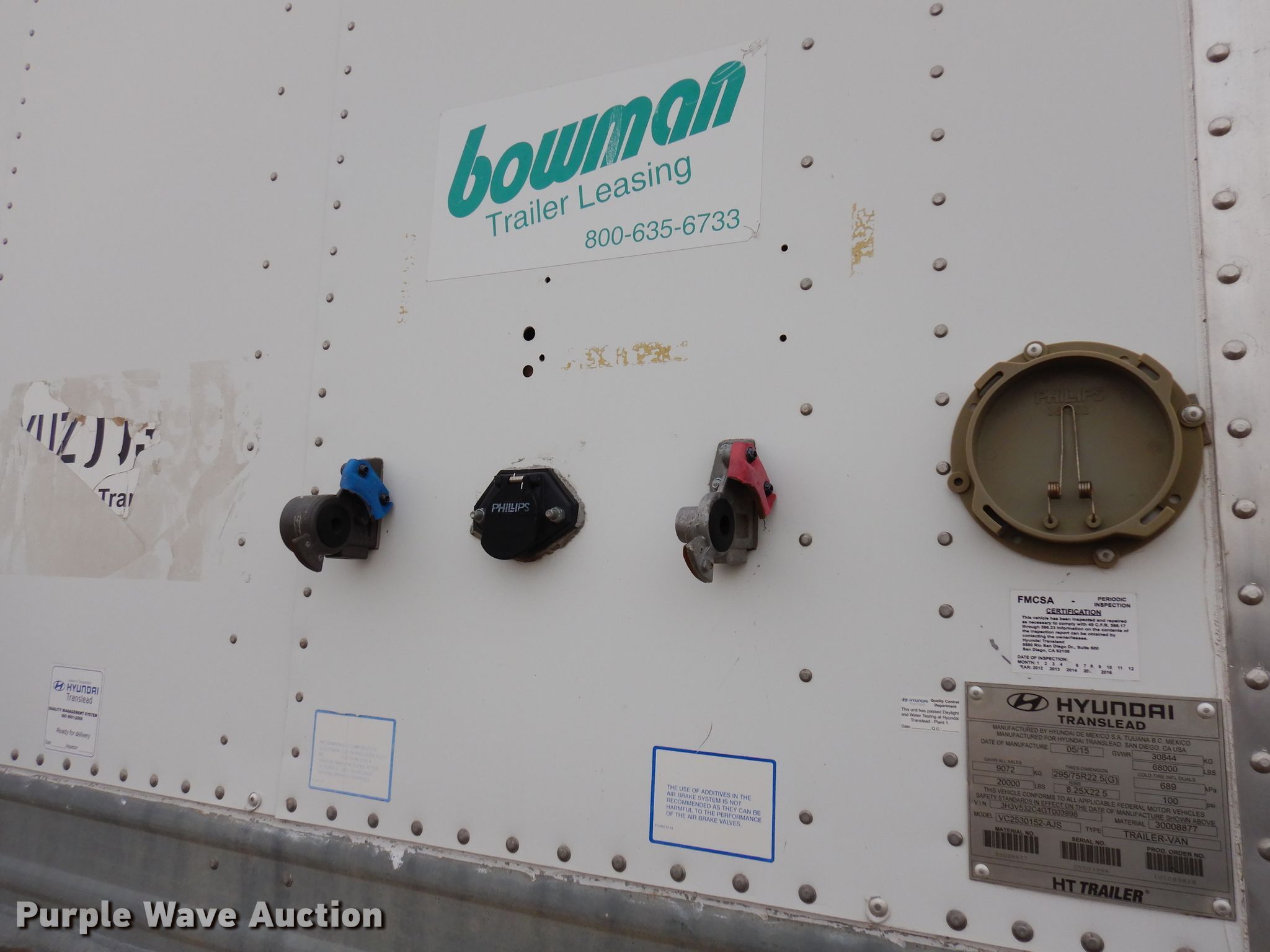 Purple Wave is selling a used Dry Van Trailer in Kansas. This item is a 2016 Hyundai Translead dry van trailer with the following: VIN: 3H3V532C4GT003998