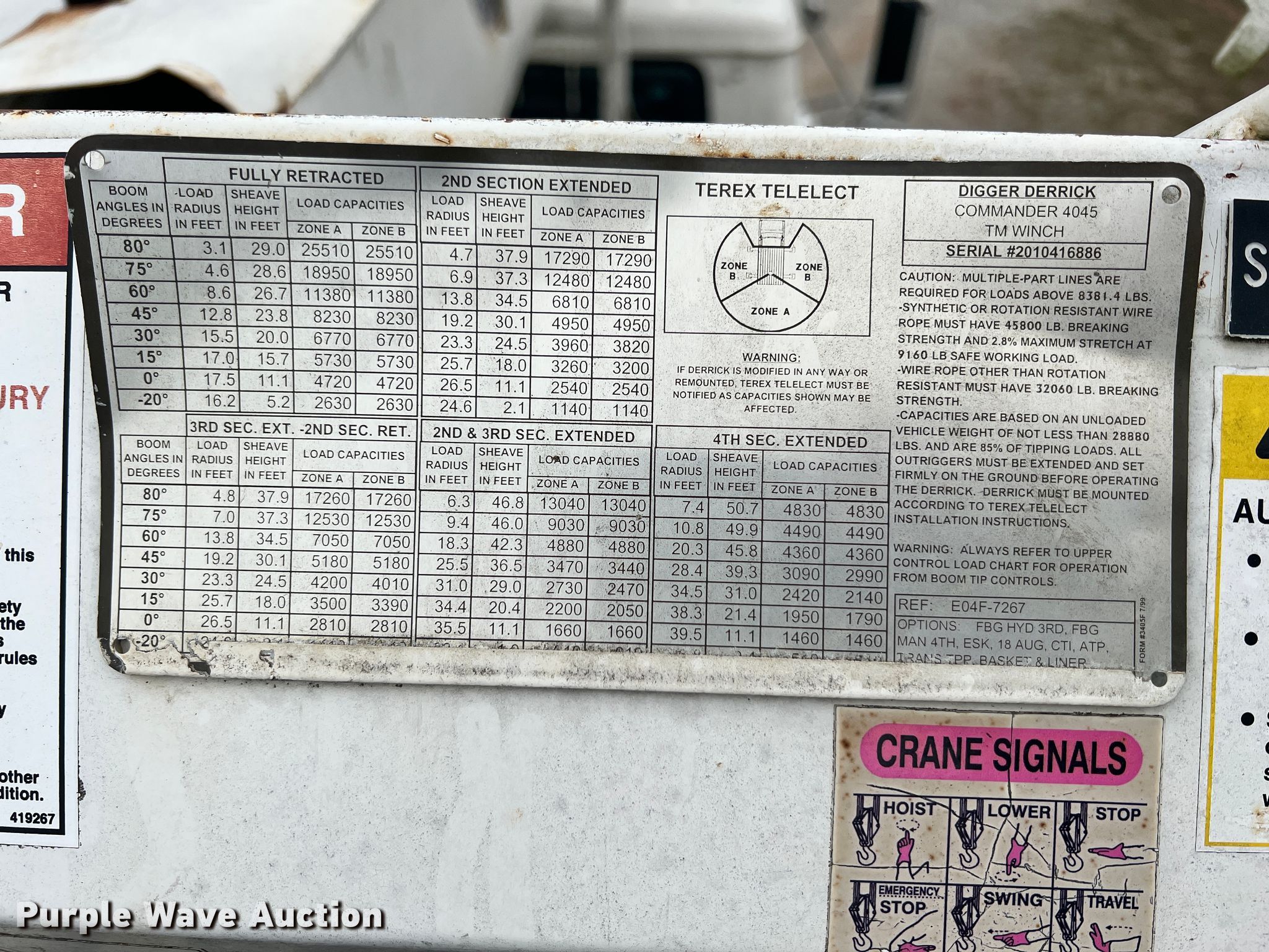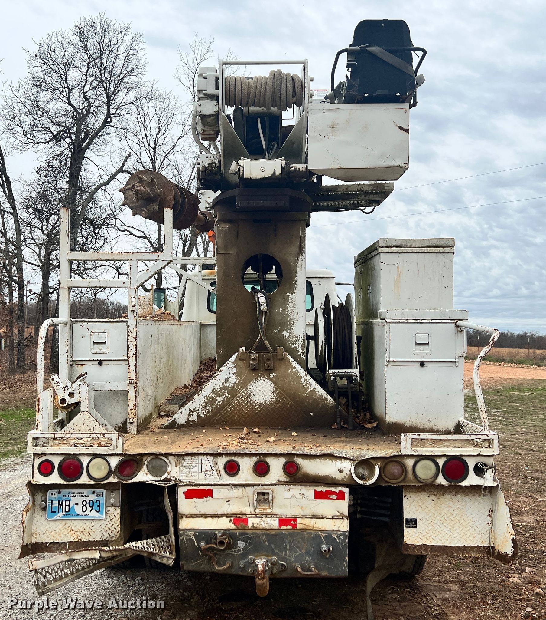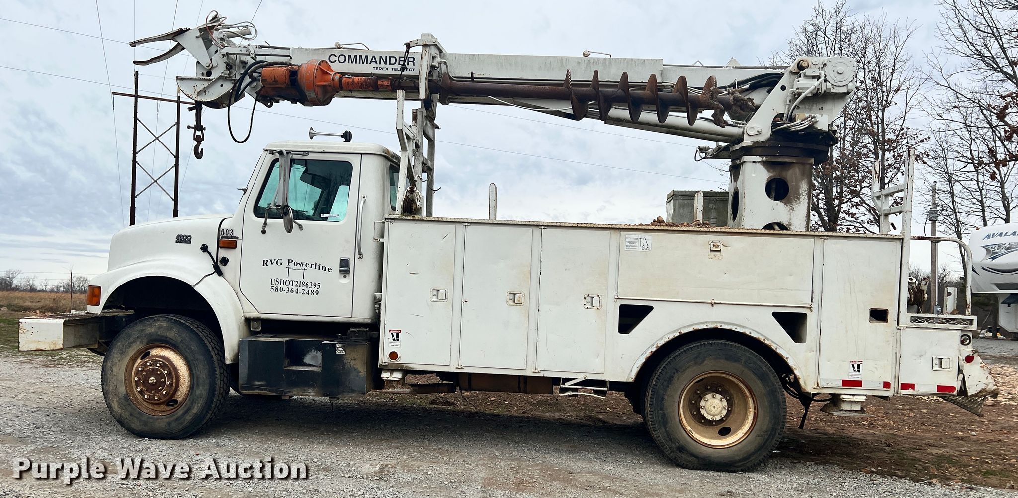 Purple Wave is selling a used Digger Derrick Truck in Oklahoma. This item is a 2002 International 4800 digger derrick truck with the following: Miles: 126,662 on odometer, Hours: 13,639 on meter, VIN: 1HTSEAAR72H408726