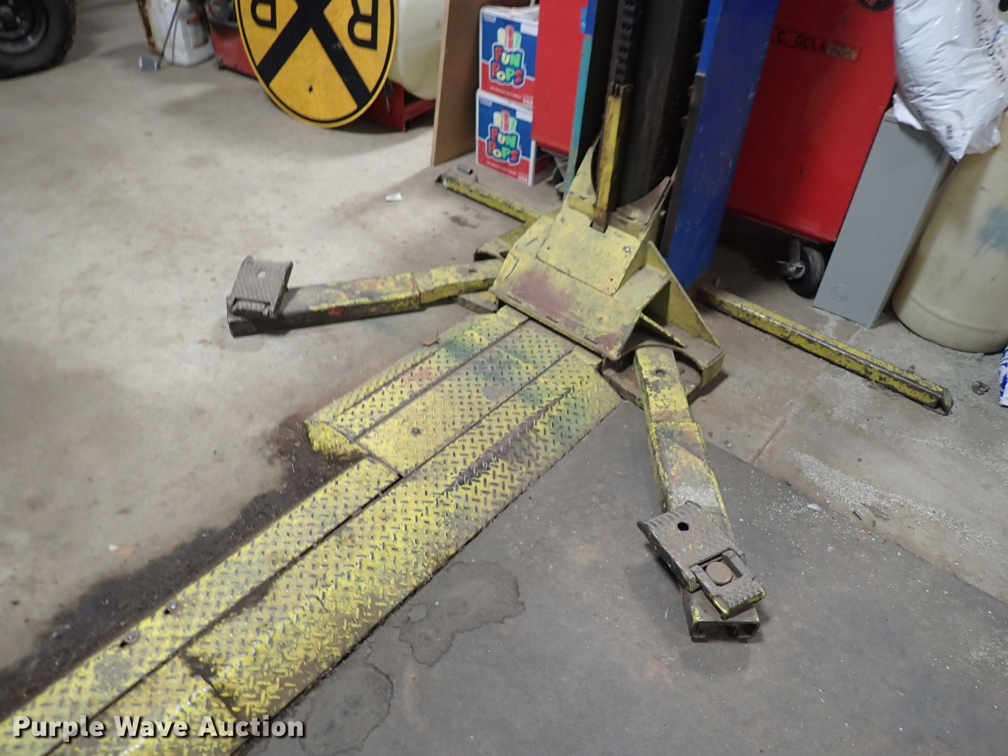 Purple Wave is selling a used Tools in Kansas. This item is a Gilbarco automotive lift with the following: Approx. 142" W x 120" H, Lift height: 6', Capacity: 8,000 lbs, Single phase