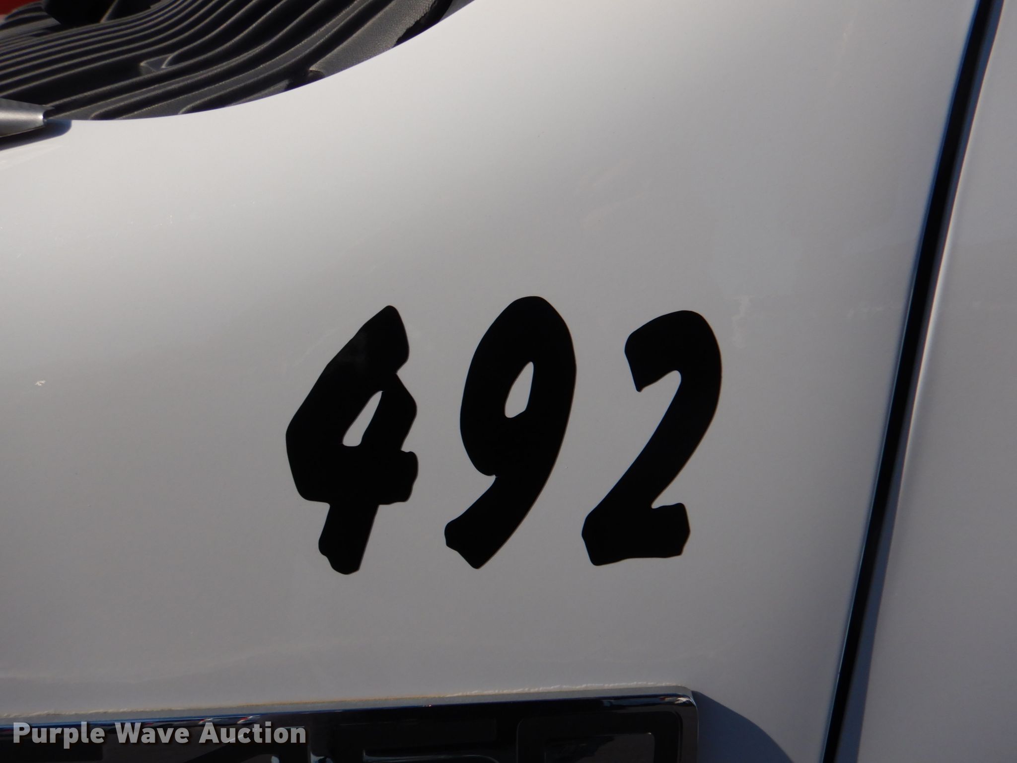 2014 Ford E450 shuttle bus. Miles: 214,891 on odometer, Hours: 8,864 on meter, VIN: 1FDXE4FS2EDB10253, Unit #: 492. Engine Displacement: 6.8L V10 SOHC 20V, Cylinders: 10, Fuel type: Gas. Transmission Automatic. Chassis Axles: Single, Suspension: Spring, Brakes: Hydraulic. Interior AC, Heat, Heated mirrors, Cruise control, Auxiliary controls, Electric passenger sliding door, Passengers: 11, Seats, Wheelchair lift. Tires Size: 225/75R16. Oklahoma title. Kibois Area Transit. 1107 Industrial Rd. Stigler, OK 74462