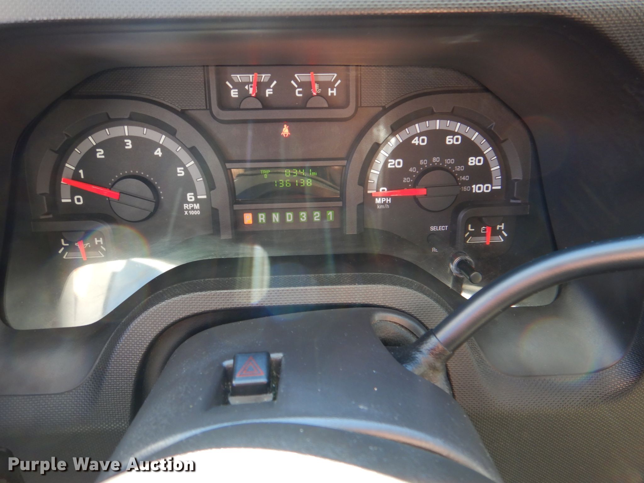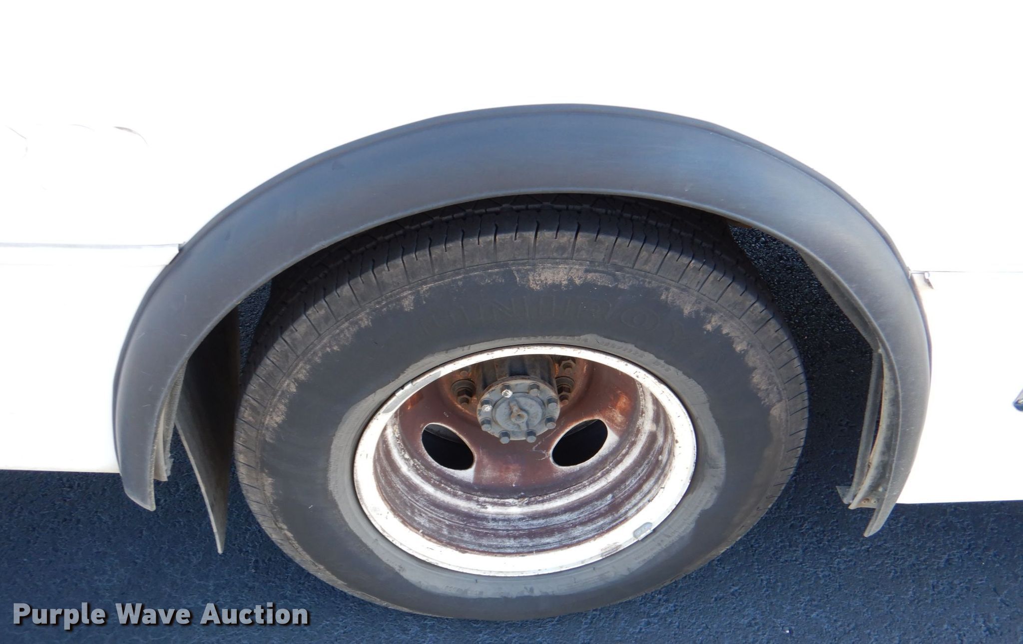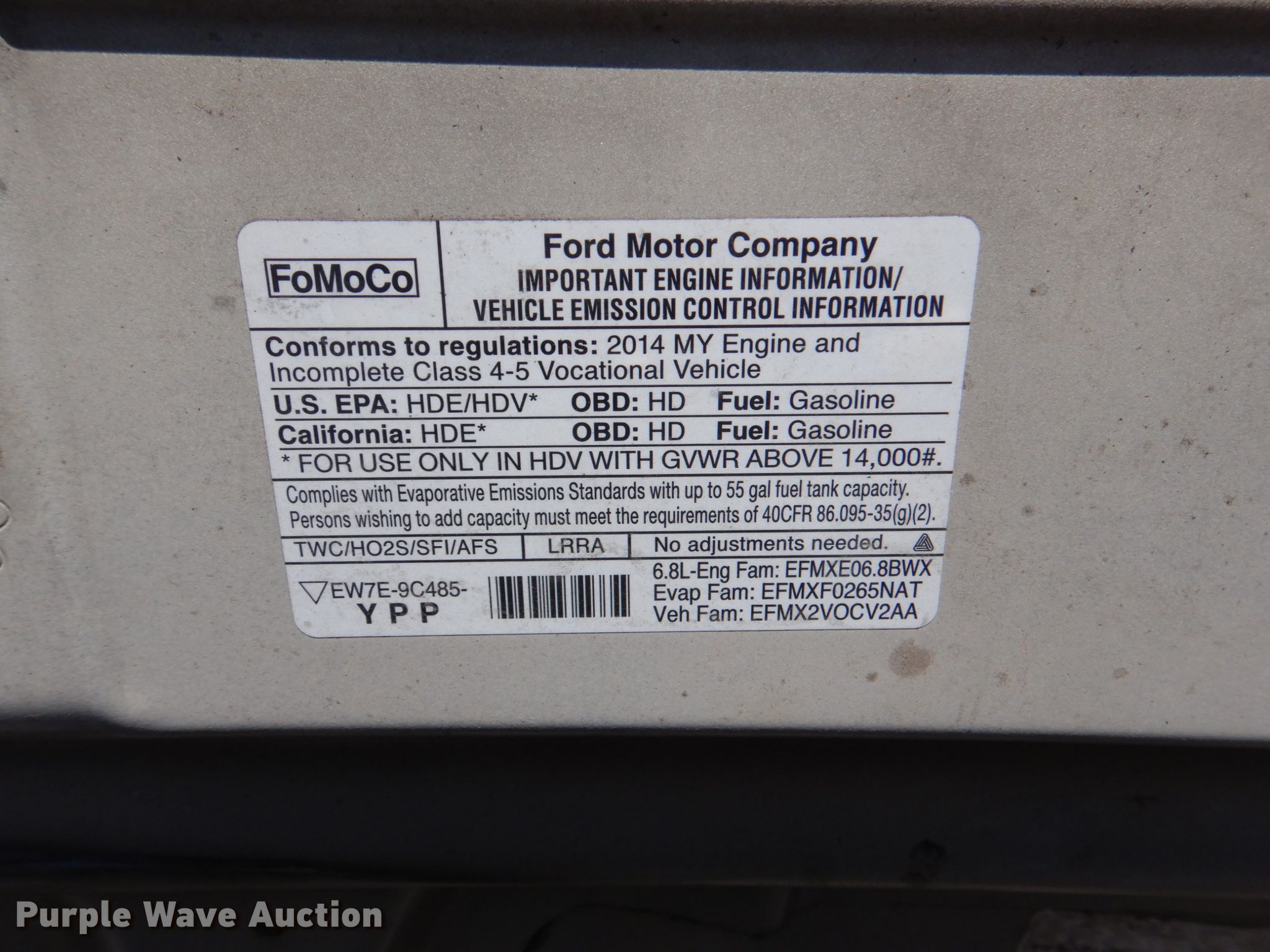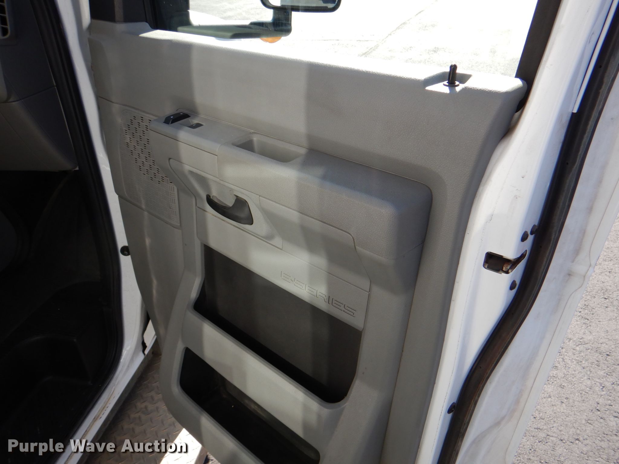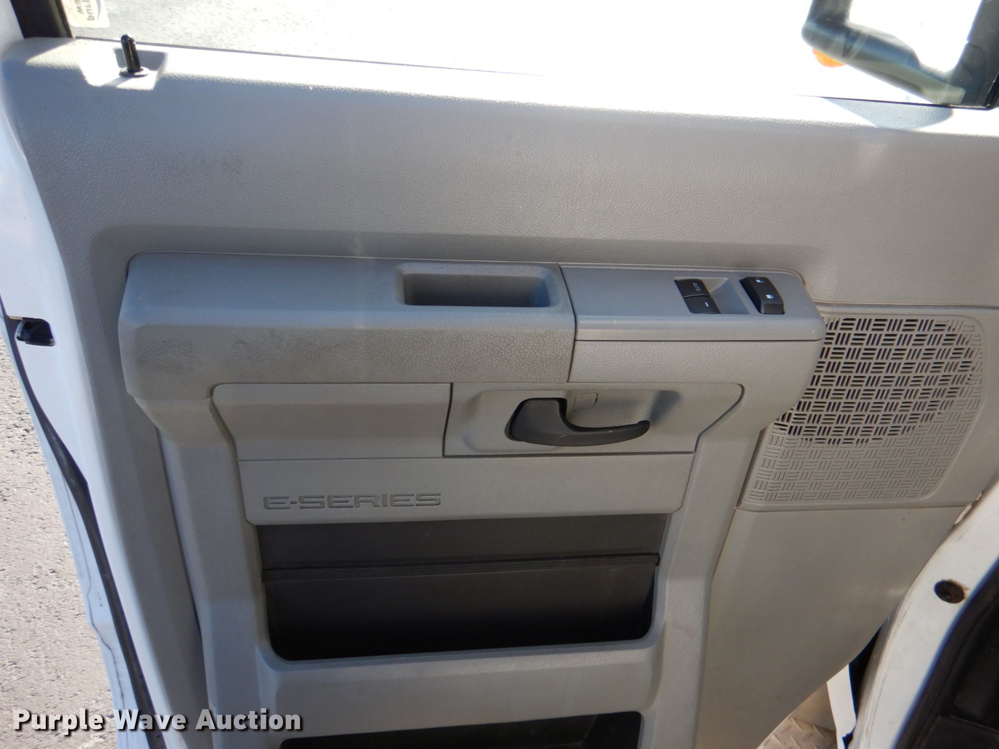 2014 Ford E450 shuttle bus. Miles: 136,138 on odometer, Hours: 9,117 on meter, VIN: 1FDXE4FS1EDB10258, Unit #: 500. Engine Displacement: 6.8L V10 SOHC 20V, Cylinders: 10, Fuel type: Gas. Transmission Automatic. Chassis Axles: Single, Suspension: Spring, Brakes: Hydraulic. Interior AC, Heat, Heated mirrors, Cruise control, Auxiliary controls, Electric passenger sliding door, Passengers: 14, Seats, Wheelchair lift. Tires Size: 225/75R16. Notes Possible engine issues, uses coolant. Oklahoma title. Kibois Area Transit. 1107 Industrial Rd. Stigler, OK 74462