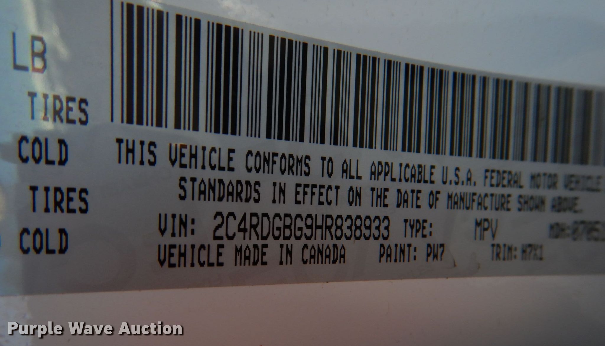 Purple Wave is selling a used Passenger Vehicle in Oklahoma. This item is a 2017 Dodge Grand Caravan handicap accessible van with the following: Miles: 120,285 on odometer, VIN: 2C4RDGBG9HR838933, Unit #: 584