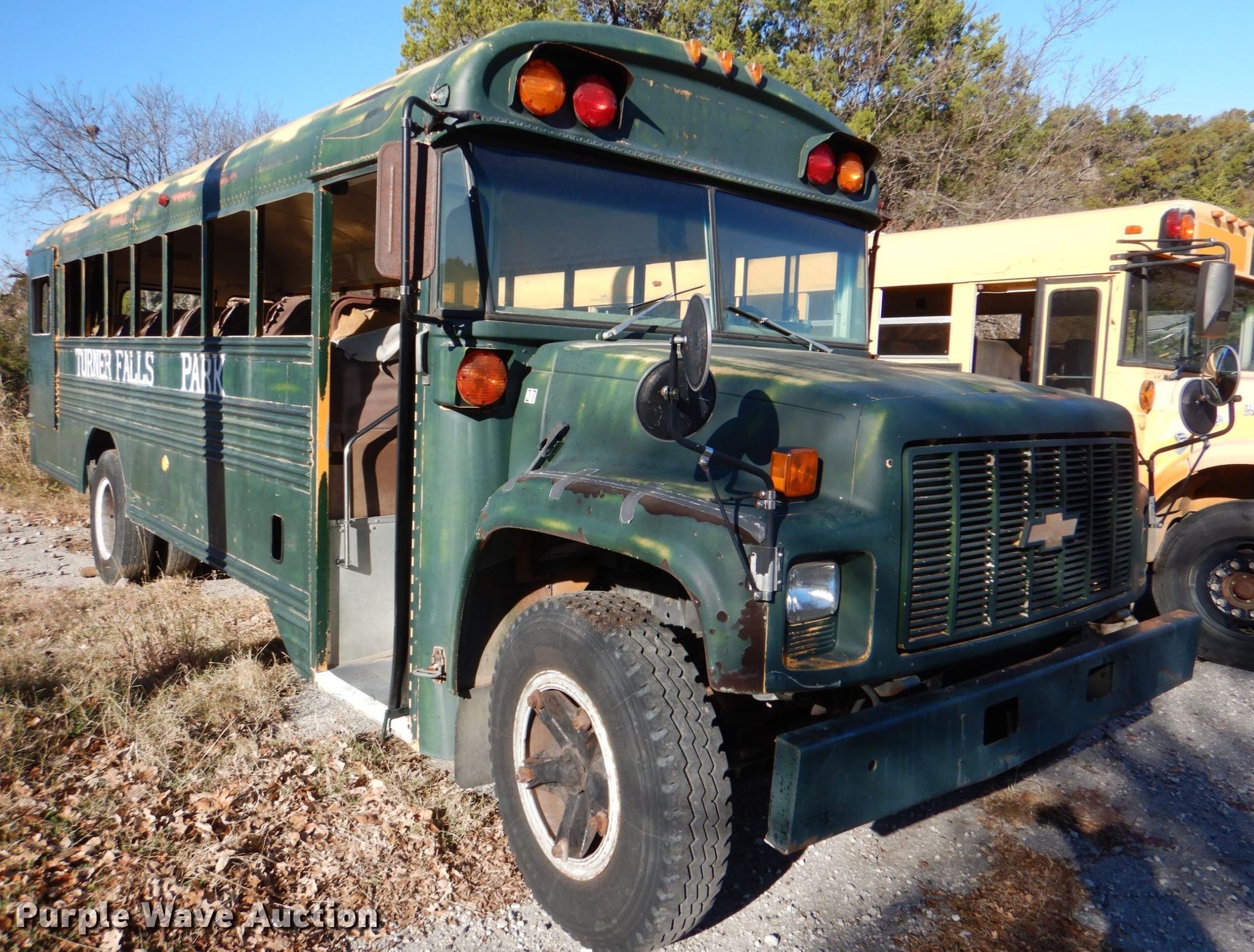 1993 Chevrolet B7 school bus. Miles: 96,150 on odometer, VIN: 1GBG7T1PXPJ102499. Engine Displacement: 6.0L, Cylinders: 8, Fuel type: Diesel. Transmission Automatic. Chassis Axles: Single, Suspension: Spring, Brakes: Hydraulic. Interior Heat, Passengers: 24, Wheelchair lift. Tires Size: 9.00R20. Notes Unknown operating condition. Oklahoma title. Turner Falls Park. I35 US & Hwy 77. Davis, OK 73030