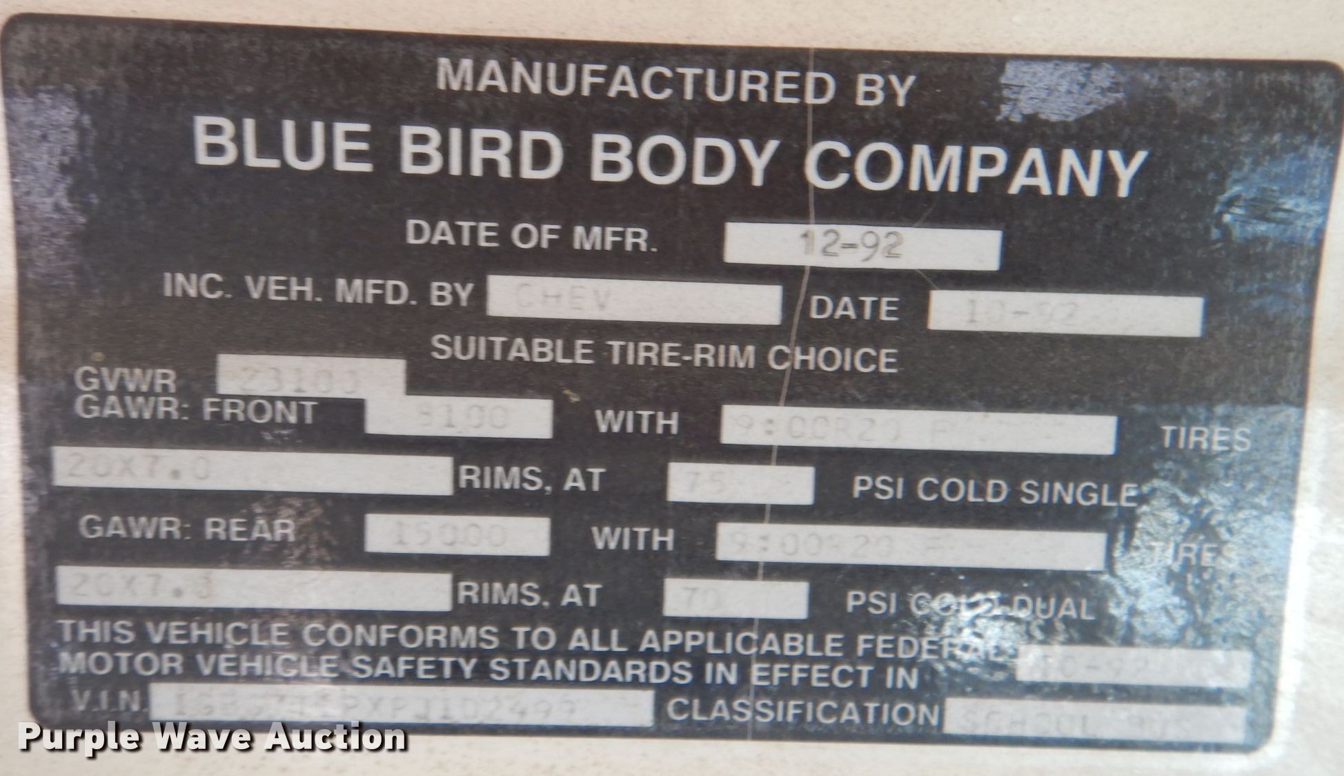 Purple Wave is selling a used Bus in Oklahoma. This item is a 1993 Chevrolet B7 school bus with the following: Miles: 96,150 on odometer, VIN: 1GBG7T1PXPJ102499