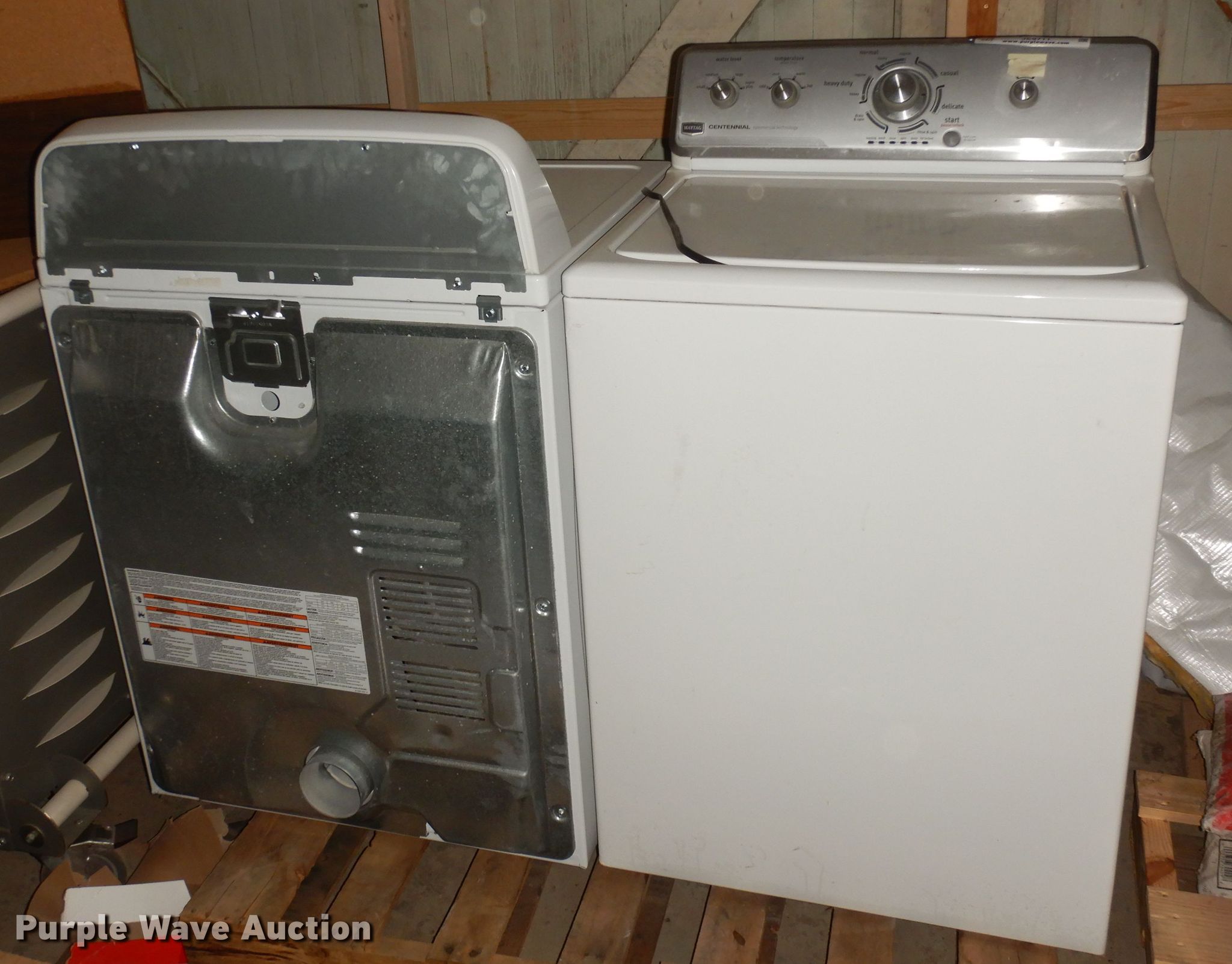 Purple Wave is selling a used Appliances in Kansas. This item is a Appliances with the following: Amana dryer, Maytag washing machine, No hoses