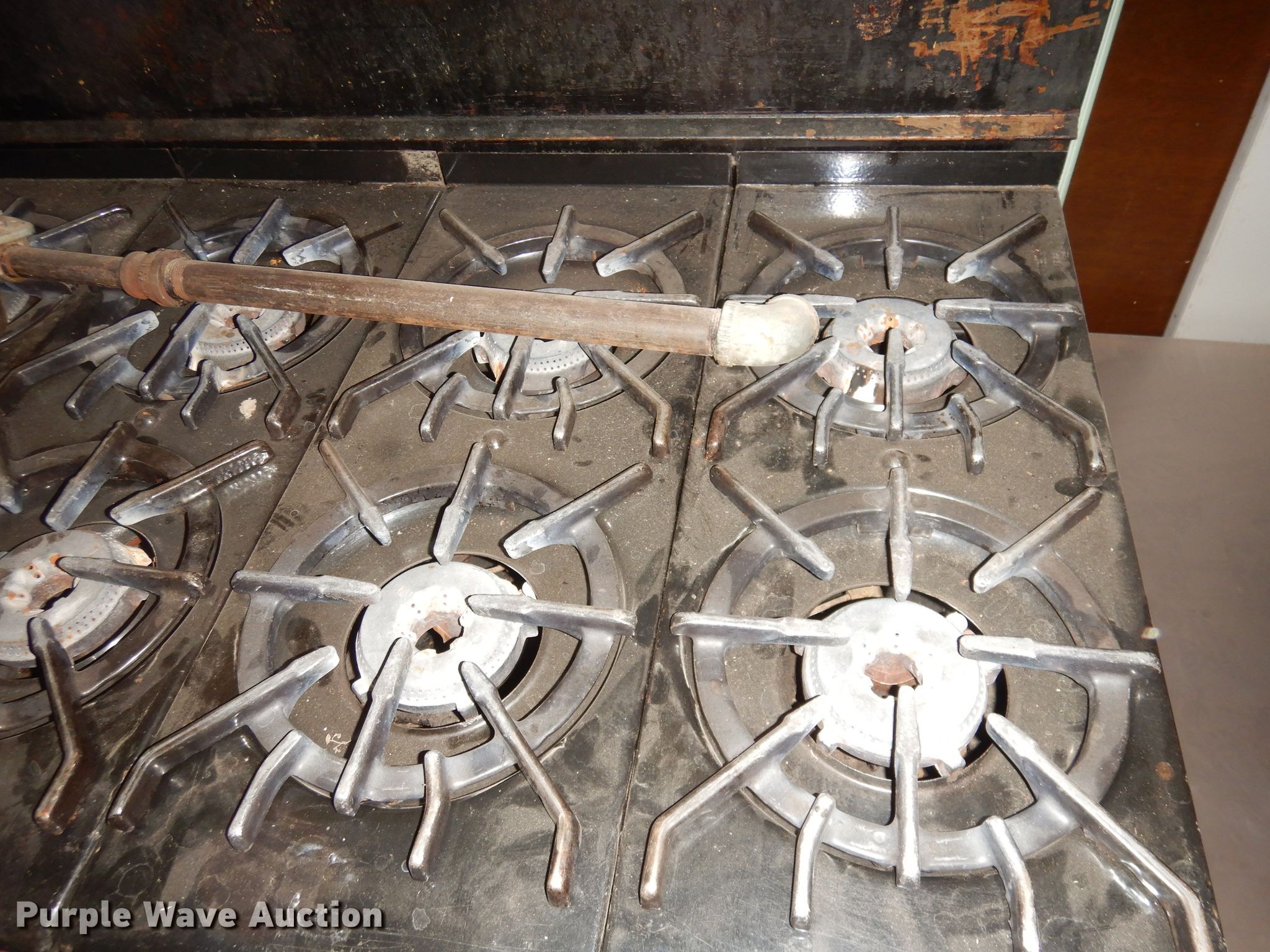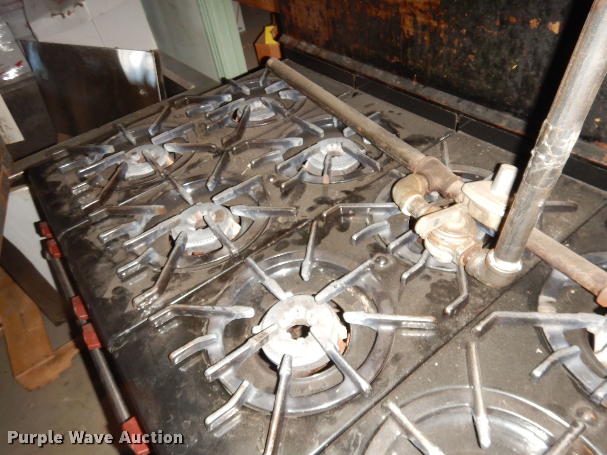 Purple Wave is selling a used Restaurant Equip. in Kansas. This item is a Wolf gas stove with the following: 67" L x 33" W x 57" H, (12) burners