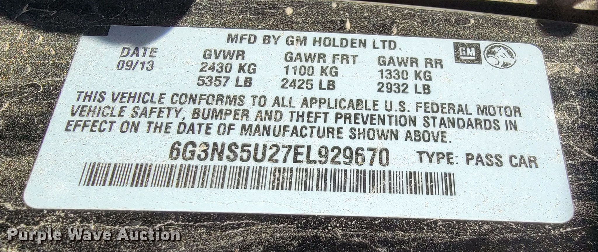 - VIN: 6G3NS5U27EL929670