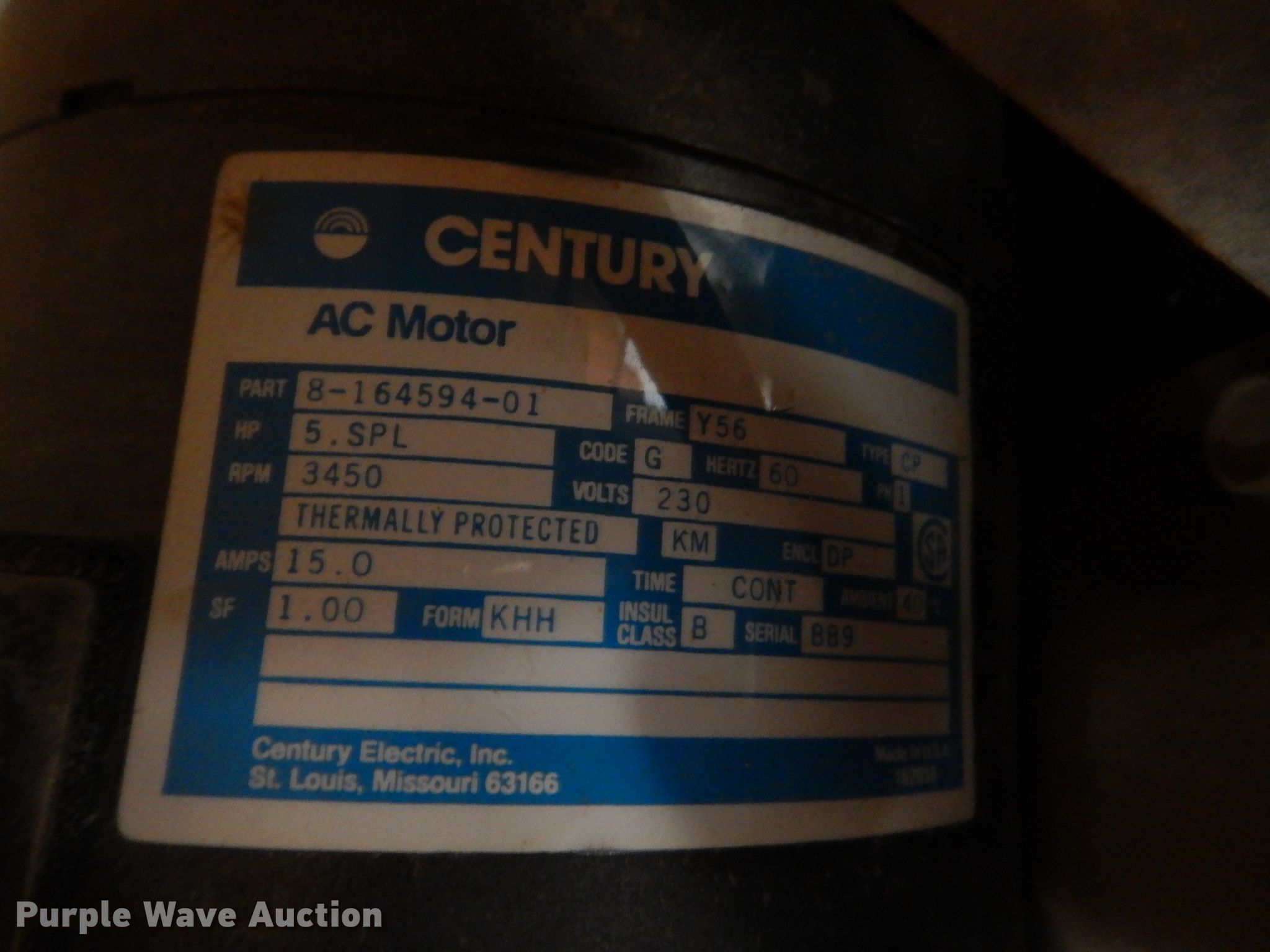 Purple Wave is selling a used Air Compressor in Iowa. This item is a 1984 Sanborn 500A60 air compressor with the following: Century 8-164594-01, Serial: 889, HP: 5, Volts: 230, Phase: Single
