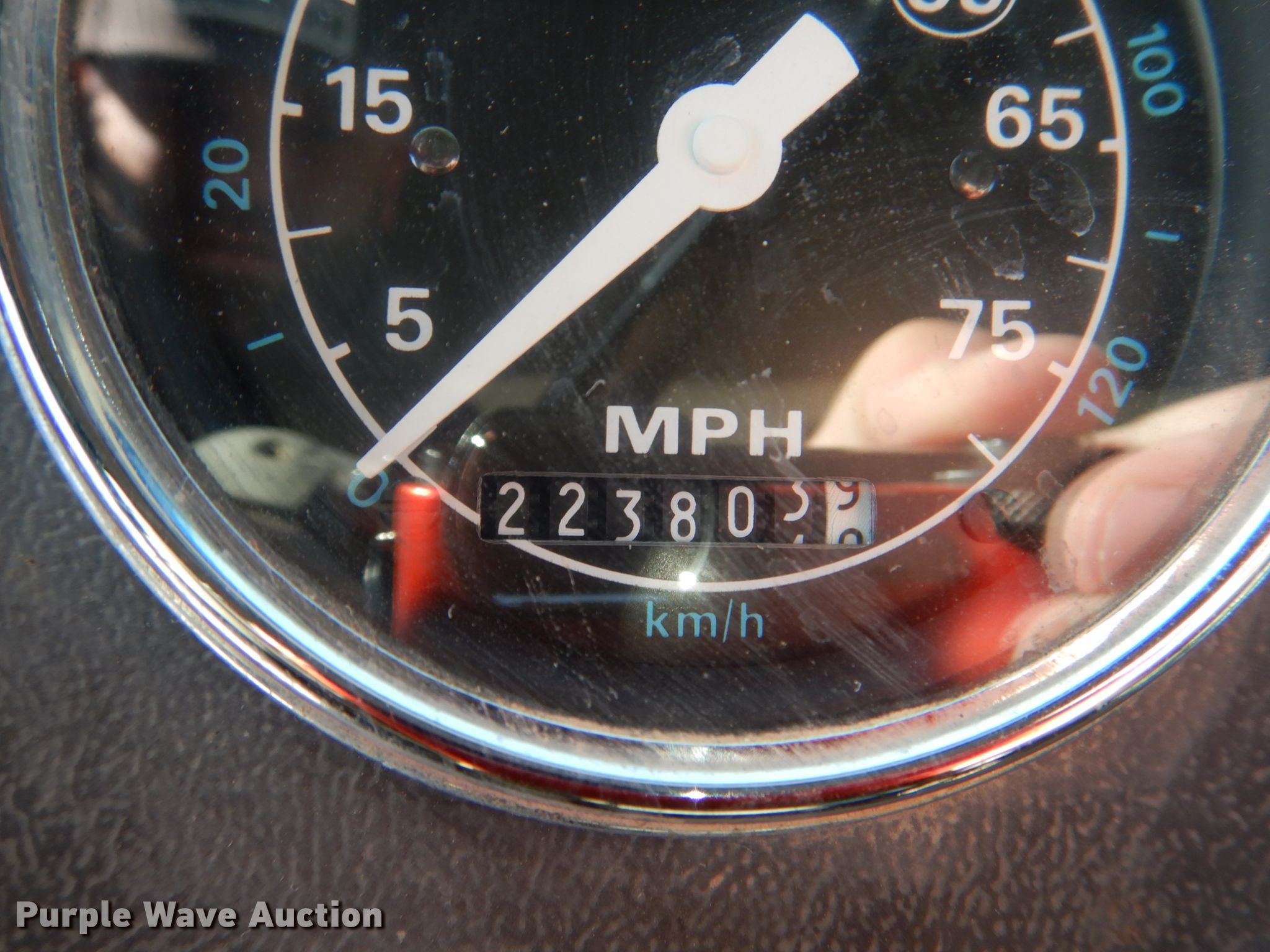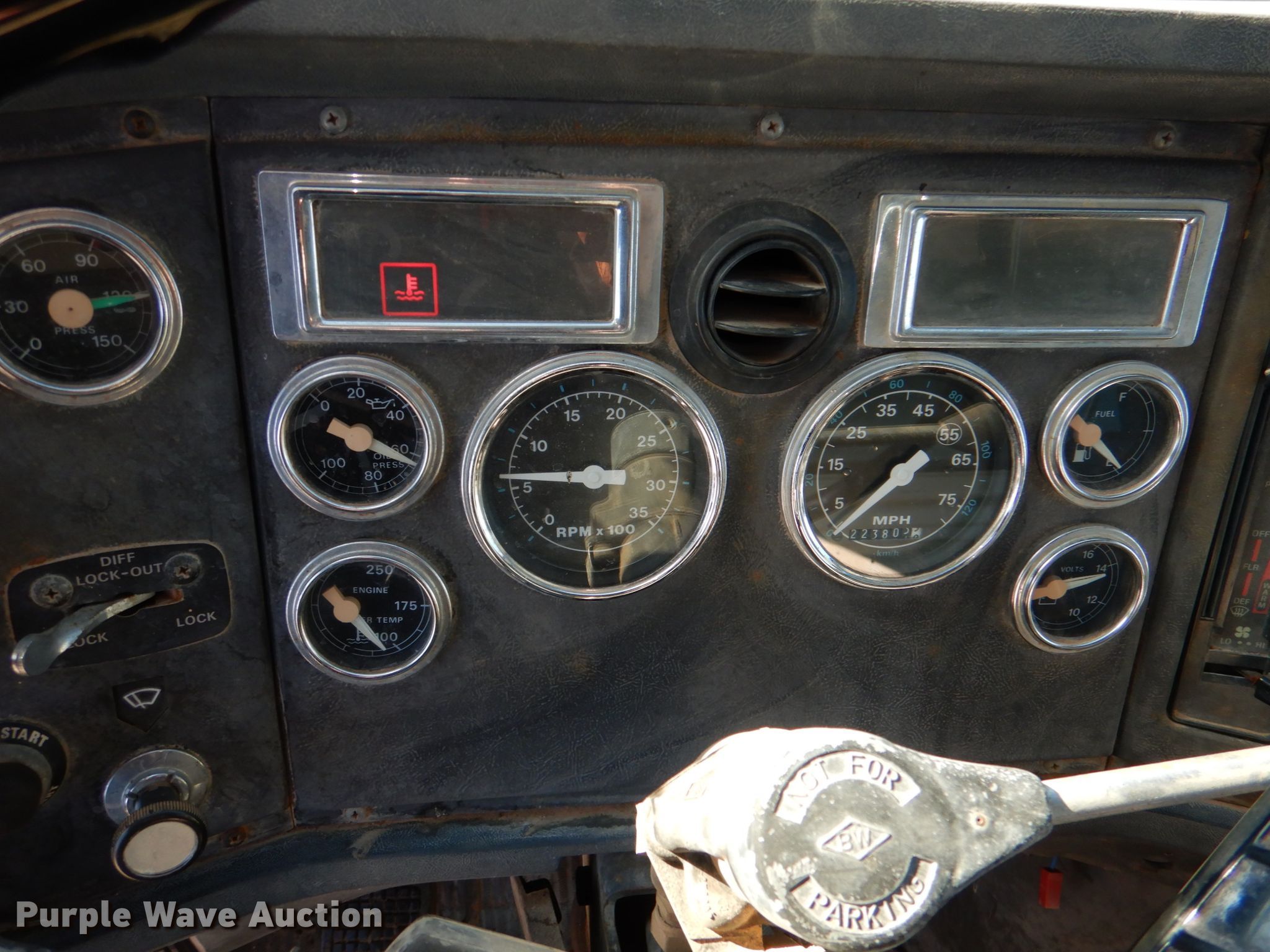 1991 Ford L9000 dump truck. Miles: 223,804 on odometer, VIN: 1FDYU90X9MVA27744. Engine Caterpillar 3406, Serial: 3ZJ04517, Displacement: 14.6L, Cylinders: 6, Fuel type: Diesel. Transmission Eaton Fuller Roadranger, Manual, Speed: 13. Chassis Axles: Tandem, Differential lock: Inter-axle, Suspension: Spring over walking beam, Brakes: Air, PTO, GVWR: 52,000 lbs, Wheelbase: 162". Interior Heat. Operational Dump bed 16' L x 8' W, Side height: 39", Bed type: Steel, Ram: Single , End gate: Air operated. Tires Size: 11R24.5. Notes Dash warning indicator: Coolant level, Windshield chipped or cracked. Oklahoma title. McClain County, OK. 301 N Shannon St. Wayne, OK 73095
