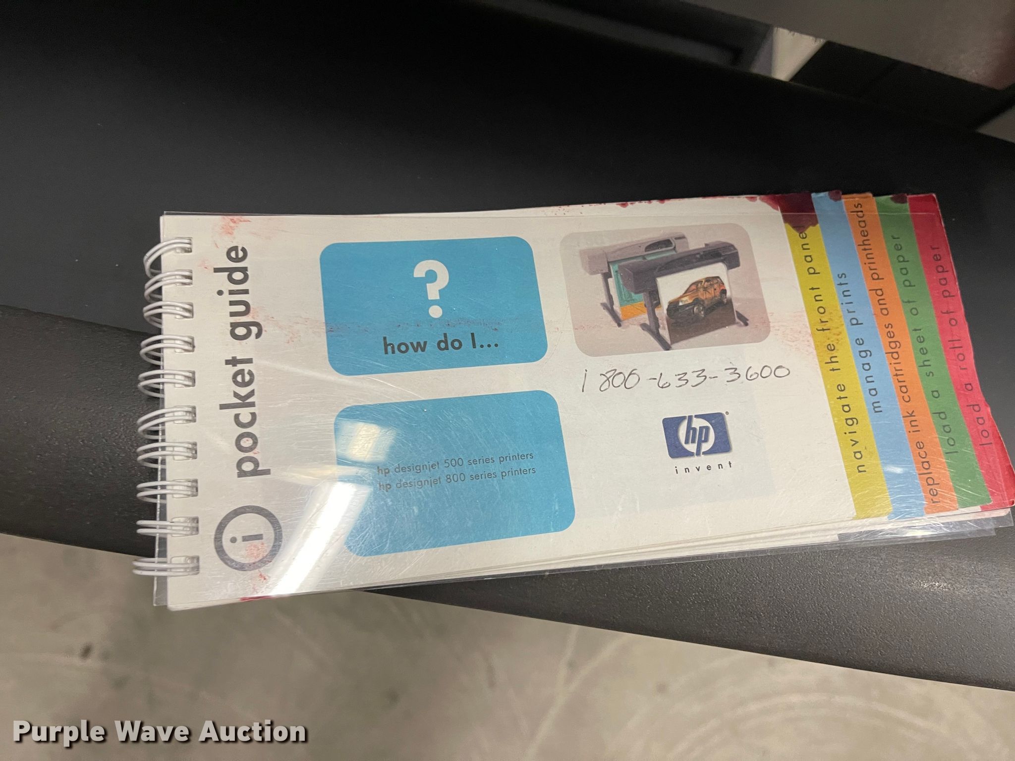 Purple Wave is selling a used Copy or Printing Machine in South Dakota. This item is a HP Designjet 800PS plotter printer with the following: 120V, Unit #: 342761, Serial SG4998108J