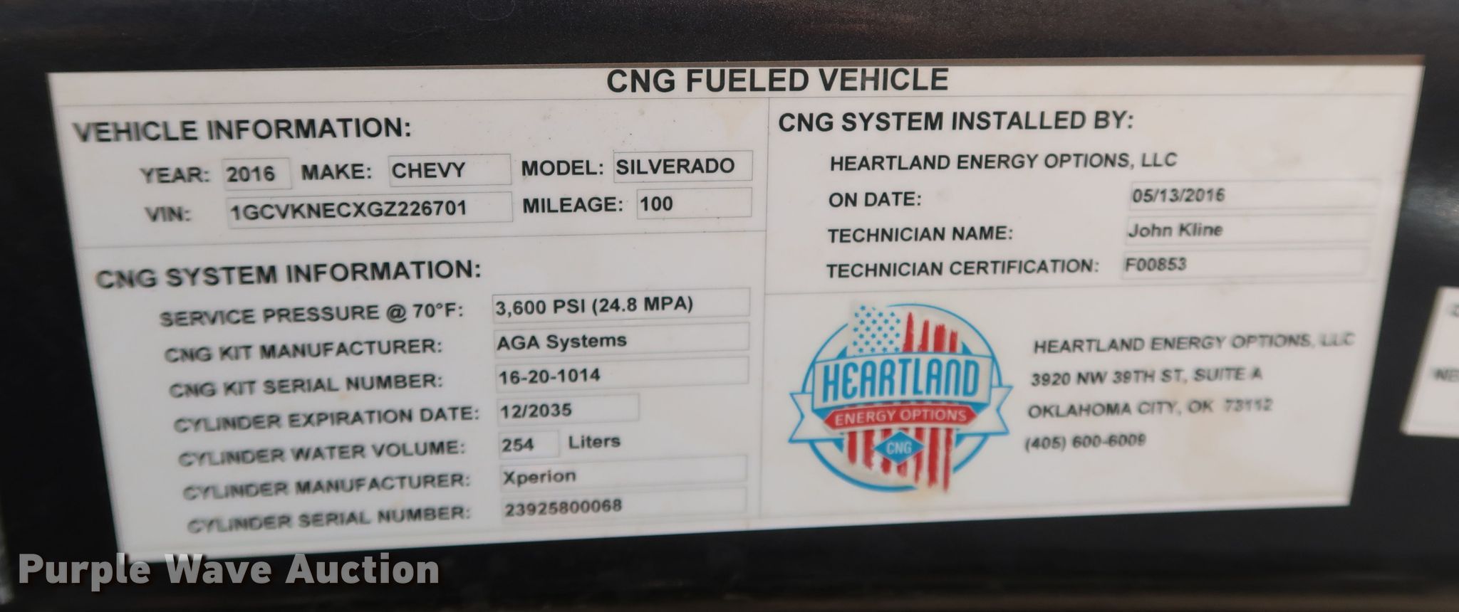 Purple Wave is selling a used 1/2 Ton Pickup or Van in Oklahoma. This item is a 2016 Chevrolet Silverado 1500 Double Cab pickup truck with the following: Miles: 105,535 on odometer, VIN: 1GCVKNECXGZ226701, Unit #: 226701