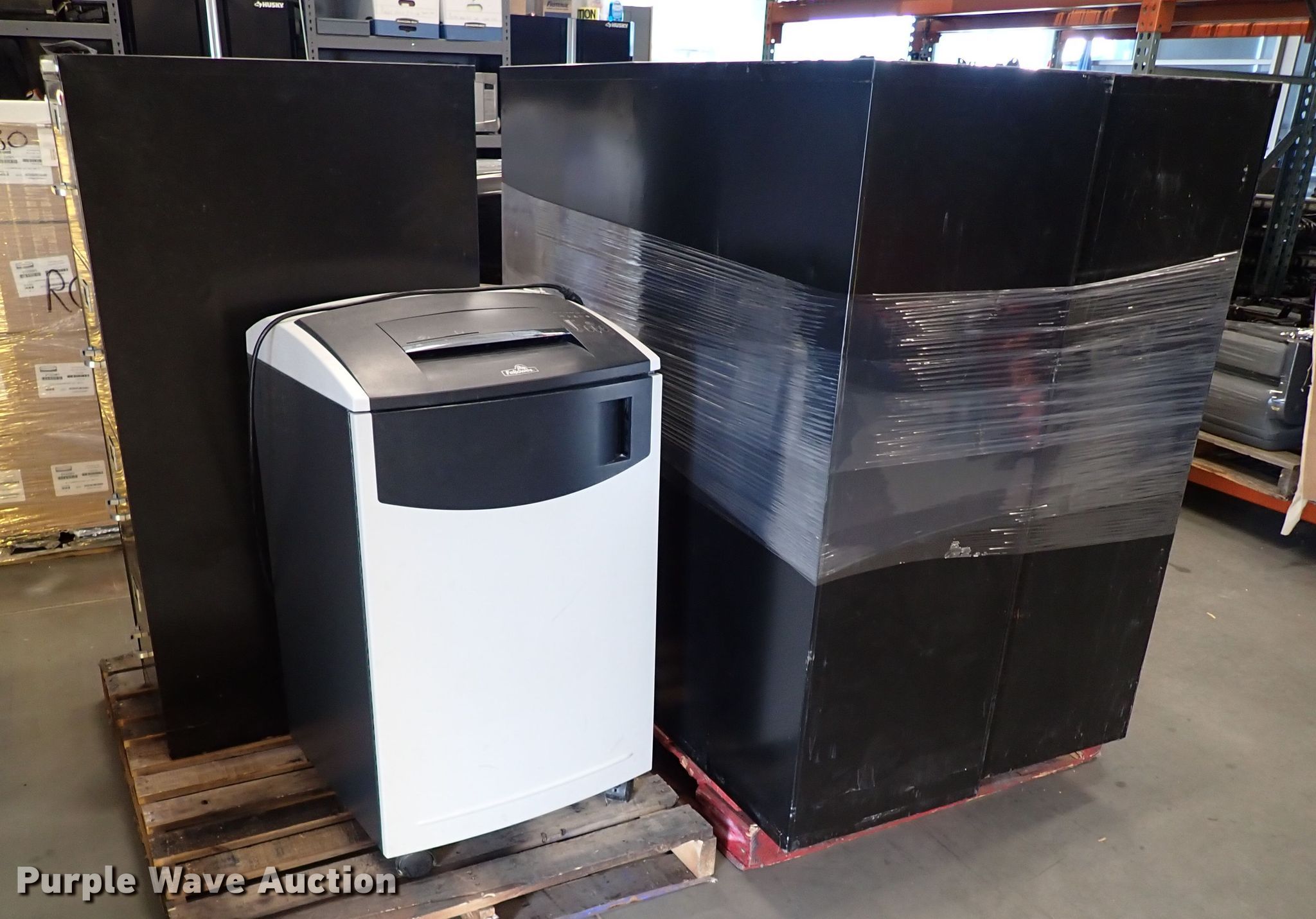 Purple Wave is selling a used Office Supplies and Equip. in Oklahoma. This item is a Office supplies with the following: (5) file cabinets, Fellows paper shredder