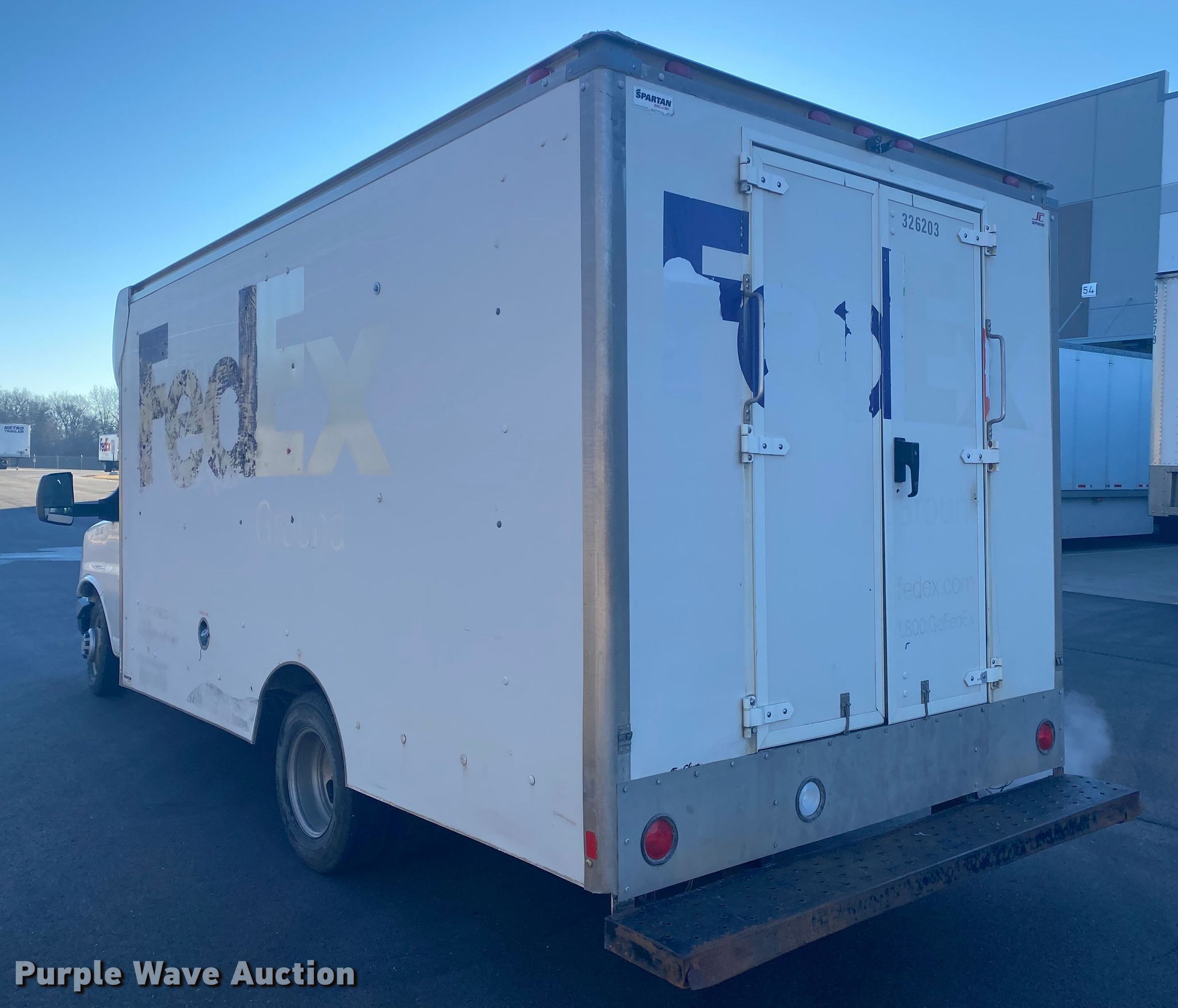 2015 Chevrolet Express G3500 delivery van. Miles: 197,018 on odometer, VIN: 1GB3G3CG3F1117789. Engine Displacement: 6.0L V8 OHV 16V, Cylinders: 8, Fuel type: Gas. Transmission Automatic. Chassis Axles: Single, Suspension: Spring, Brakes: Hydraulic, GVWR: 12,300 lbs. Interior AC, Heat. Operational Box bed 15' L x 84" W x 92" H, Floor: Wood. Tires Size: LT225/75R16. Notes Dash warning indicator: Check engine, ABS, Air bag. Oklahoma title. Aday Express, Inc.. 1214 E Houston St S. Broken Arrow, OK 74012
