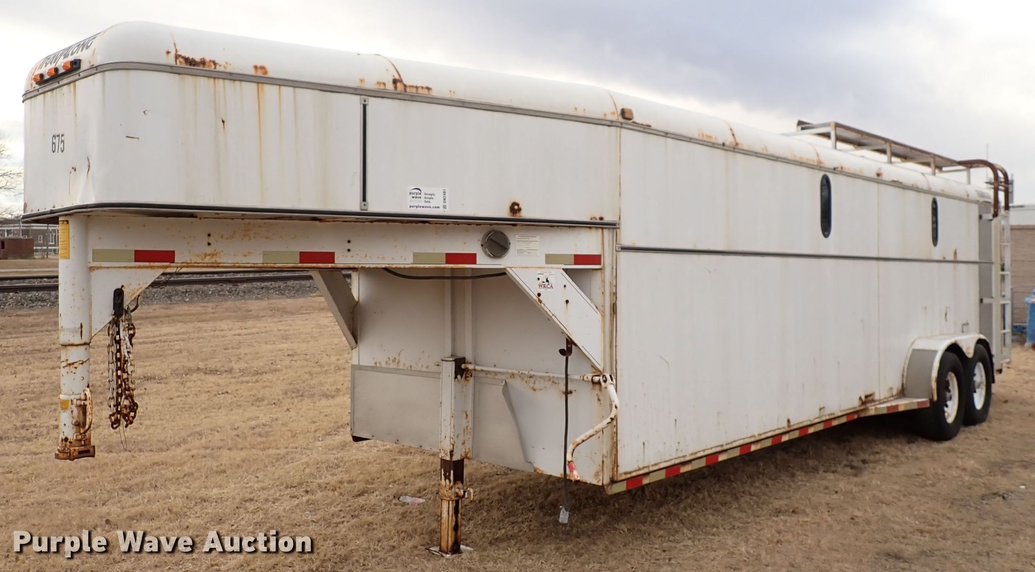 1998 Liberty Travalong enclosed cargo trailer. VIN: 4DYGS2427W1017705. Dimensions Overall: 31' L x 98" W, Body: 24' L x 82" W. Operational Deck type: Steel. Chassis Hitch: Gooseneck, Landing gear: Single, Suspension: Spring, Brakes: Electric, Axles: Tandem, GVWR: 12,165 lbs. Tires Steel wheels, Size: 235/85R16. Kansas title. Southwest and Associates. 100 Reno Ave. Burrton, KS 67020