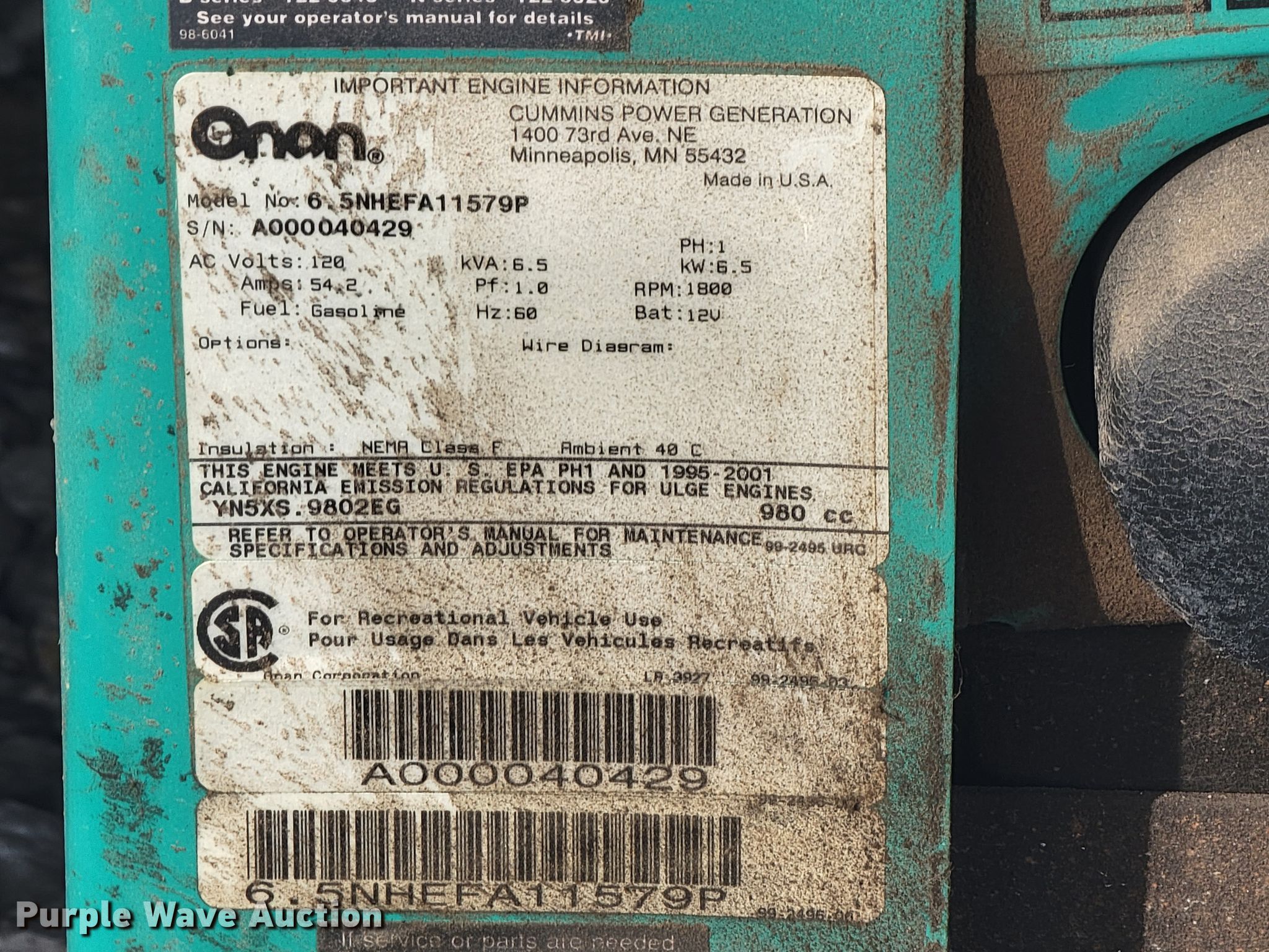 2000 Condor R Vision RV. Miles: 38,120 on odometer, Camper length: 32' 6", VIN: 5B4LP37J2Y3319134. Engine Displacement: 7.4L V8 OHV 16V, Cylinders: 8, Fuel type: Gas. Transmission Automatic. Chassis Axles: Single, Suspension: Spring, Brakes: Electric. Interior Kitchen: Sink, Refrigerator, Freezer, Microwave, Oven, Stove: Gas, Propane, Bathroom, Bed type: Queen, AC units: 2. Operational Slide outs: 1, Awning type: Manual, Generator Onan 6.5NHEFA11579P, Hours: 122 on meter, Fuel type: Diesel, kW: 6.5, Watts: 6,500. Tires Size: 225/70R19.5. Oklahoma title. Seller is an Oklahoma licensed motor vehicle dealer. Title will be assigned and distributed by the dealer. Please contact the seller for distribution questions. 13780 E 146th St N. Collinsville, OK 74021
