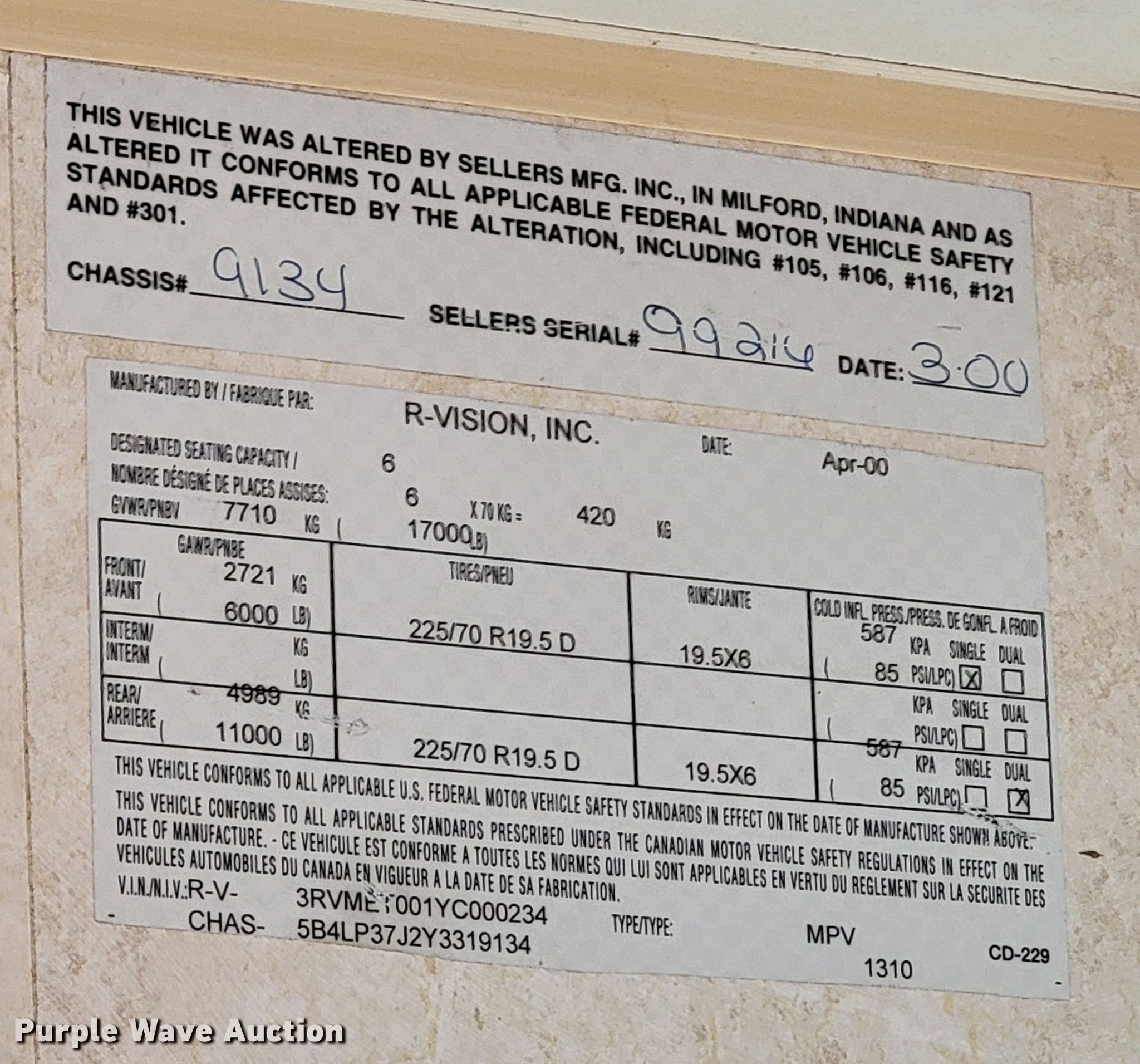 Purple Wave is selling a used RV in Oklahoma. This item is a 2000 Condor R Vision RV with the following: Miles: 38,120 on odometer, Camper length: 32' 6", VIN: 5B4LP37J2Y3319134