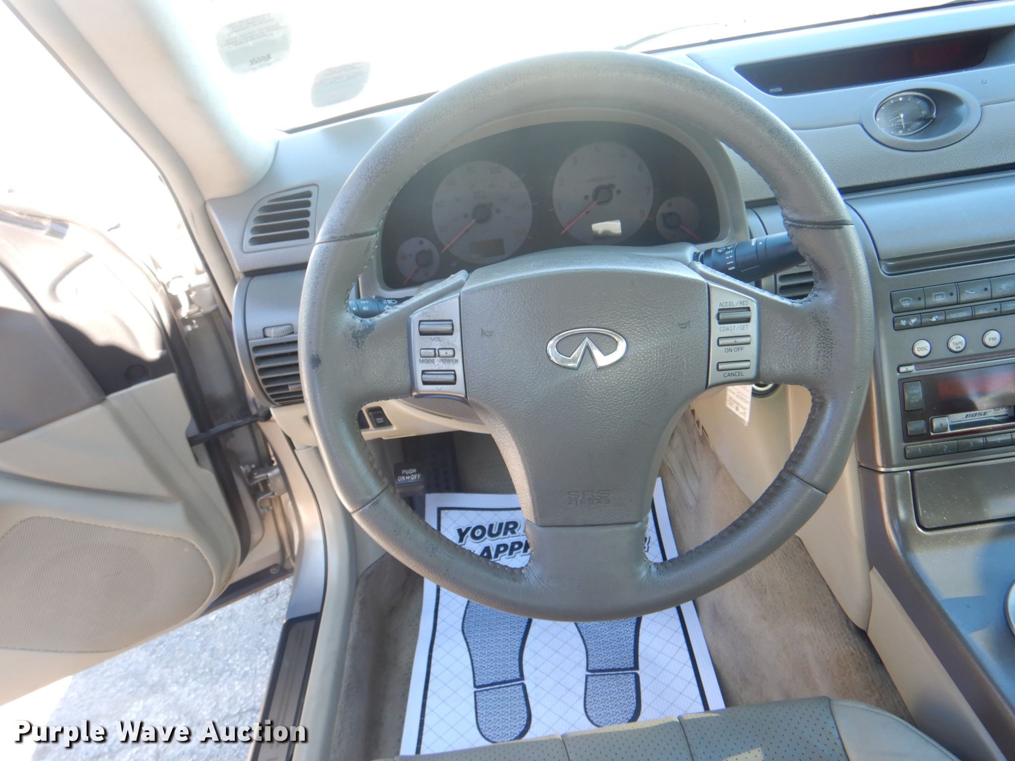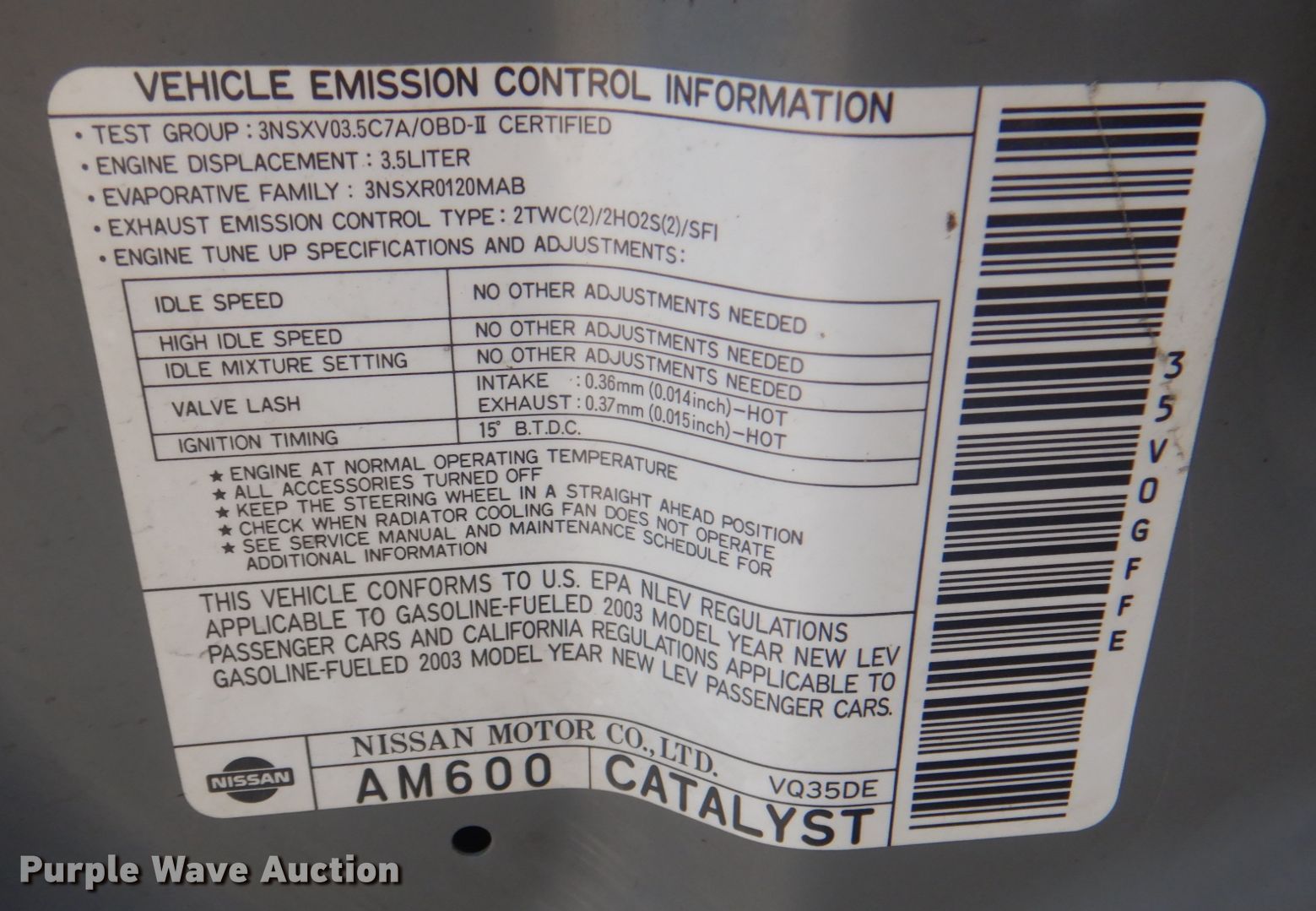 2003 Infiniti G35. Miles: 206,202 on odometer, VIN: JNKCV51E83M020482. Engine Displacement: 3.5L V6 DOHC 24V, Cylinders: 6, Fuel type: Gas. Transmission Automatic. Interior AC, Heat, Power windows, Power locks, Cruise control, Sunroof. Tires Size: 225/50R17. Notes Dash warning indicator: Brake. Oklahoma title. 5523 E Archer St. N. Tulsa, OK 74115