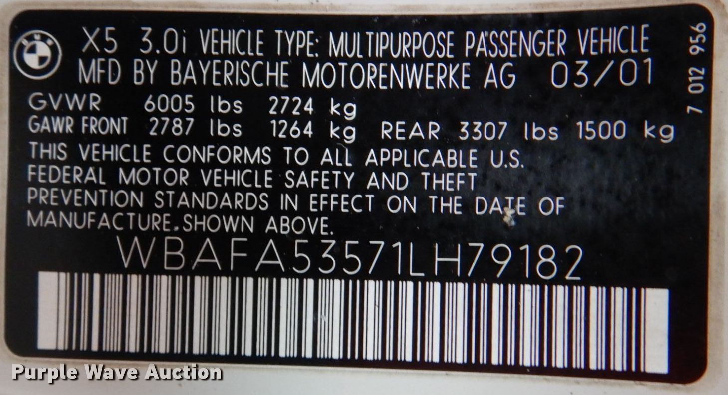 Purple Wave is selling a used Passenger Vehicle in Oklahoma. This item is a 2001 BMW X5 SUV with the following: Miles: 216,427 on odometer, VIN: WBAFA53571LH79182