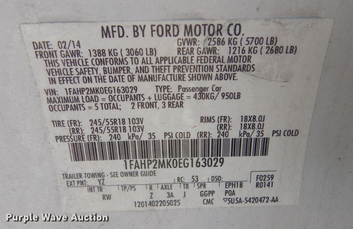 - VIN: 1FAHP2MK0EG163029