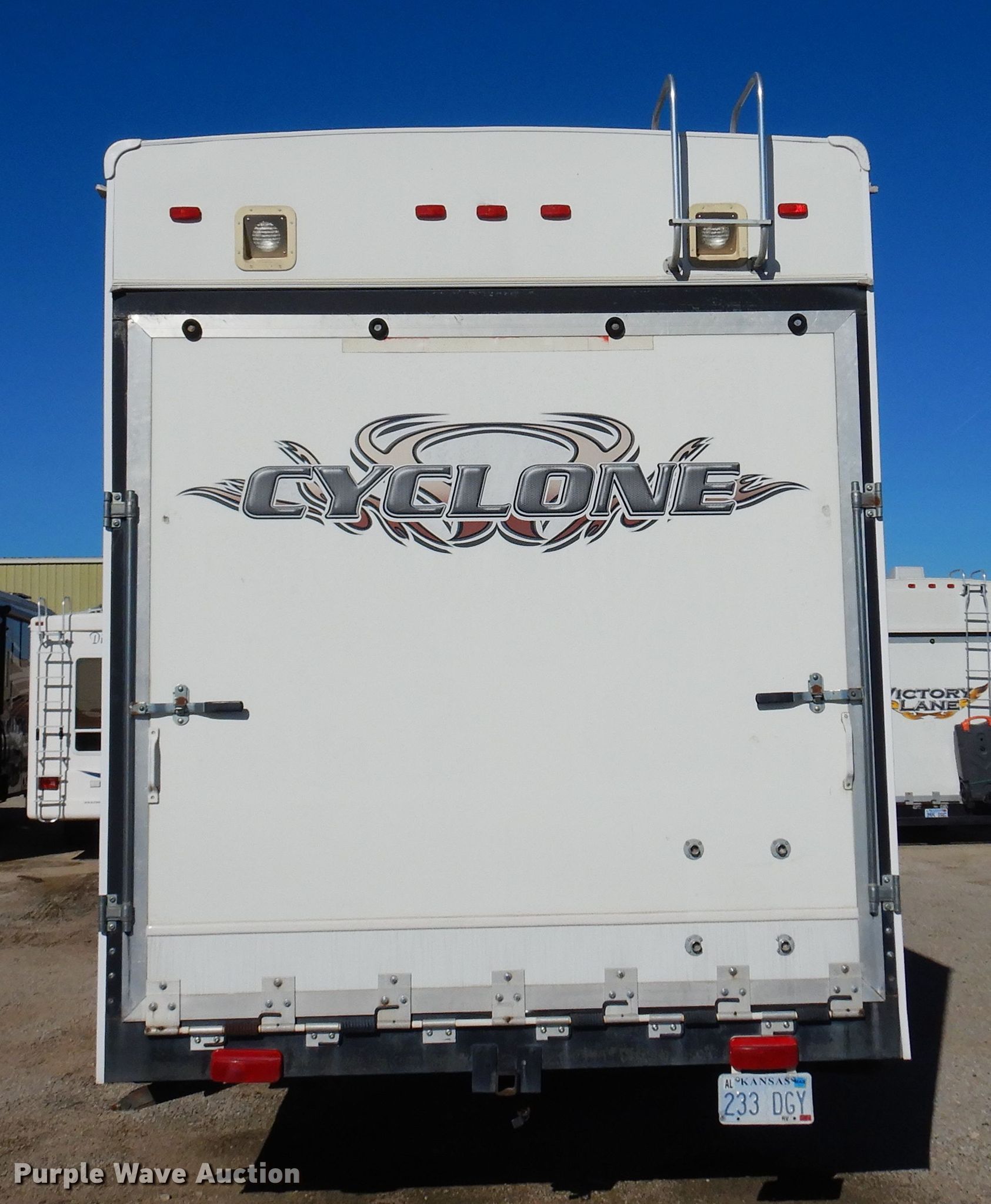 Take a look at this used 2007 Heartland Cyclone toy hauler camper being sold on February 23rd, 2022 in the SOLD! February 23 Vehicles and Equipment Auction made by Heartland. Take a look at all of the item information below or take a look at similar auctions for RVs.