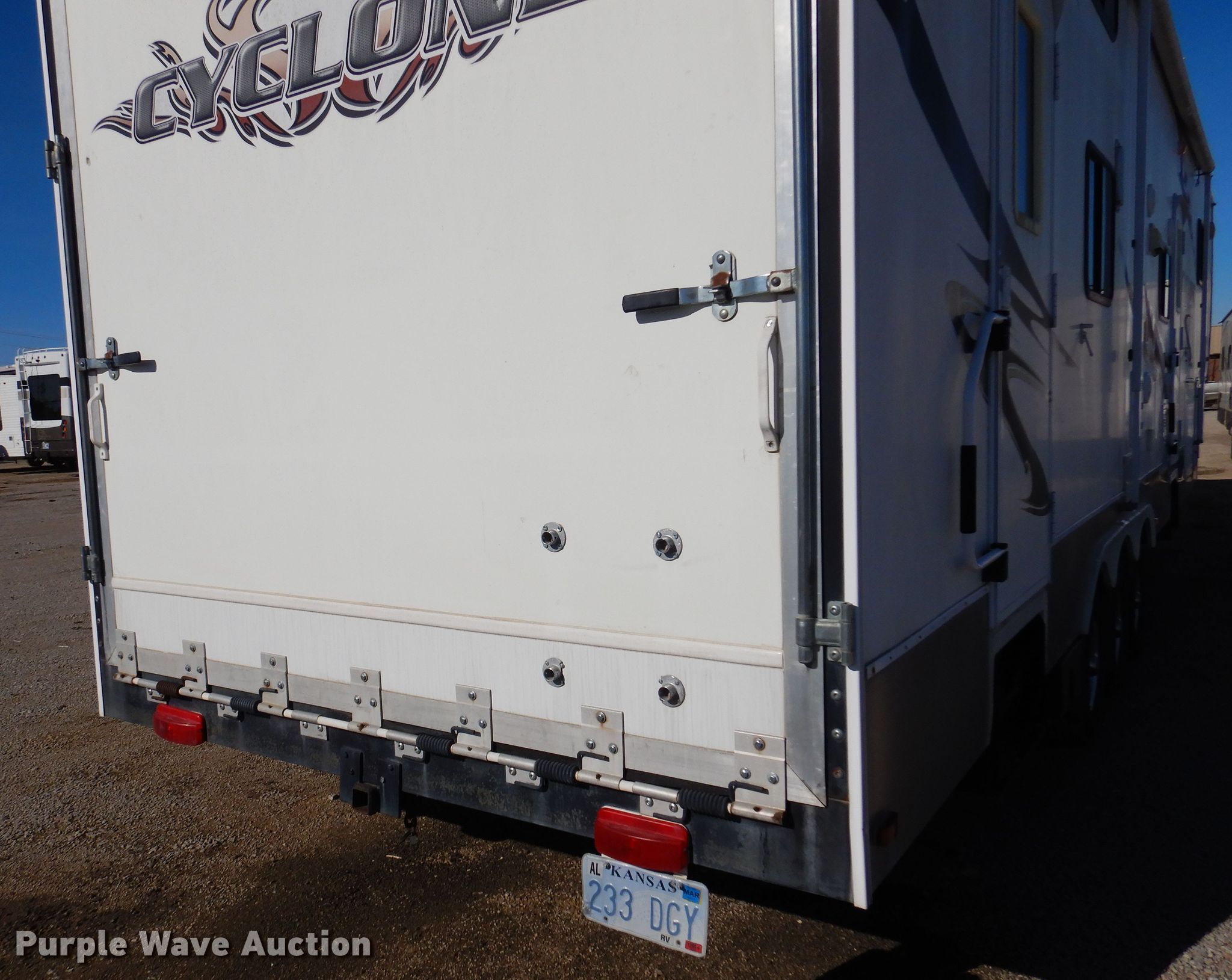 Purple Wave is selling a used RV in Kansas. This item is a 2007 Heartland Cyclone toy hauler camper with the following: Camper length: 39', VIN: 5SFGF35307E002066