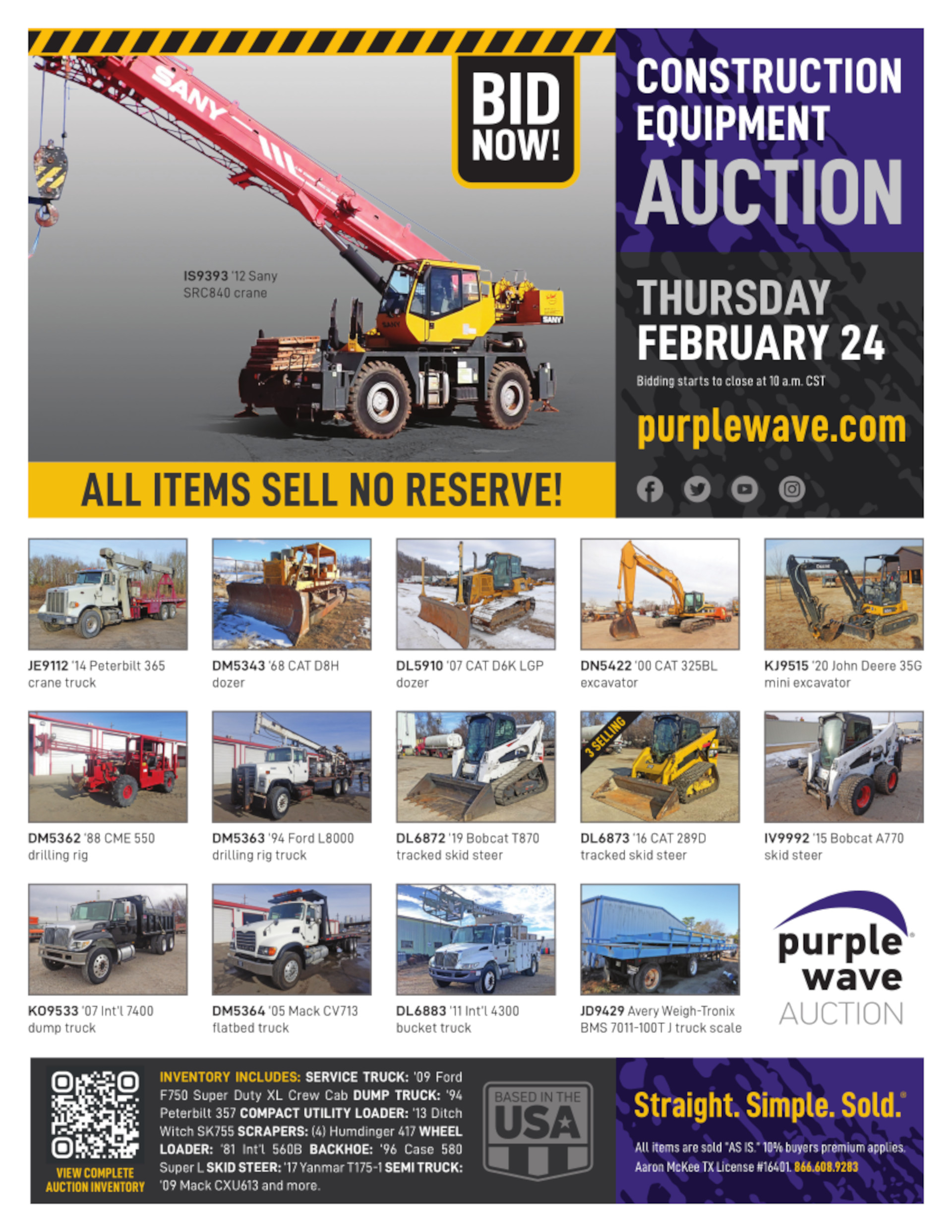 This auction is conducted by Purple Wave, Inc., whose home office is 825 Levee Drive, Manhattan, Kansas. Aaron McKee, Texas auctioneer license # 16401, operates Purple Wave, Inc. Complaints against us may be directed to the Texas Department of Licensing and Regulation, P.O. Box 12157, Austin, Texas 78711, (512) 463-6599. For additional required information, see the attached document.